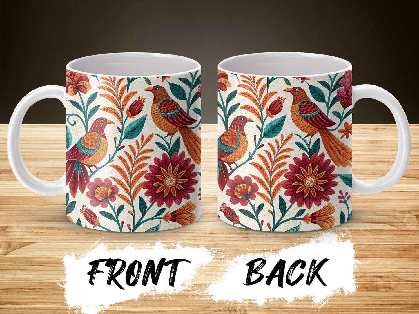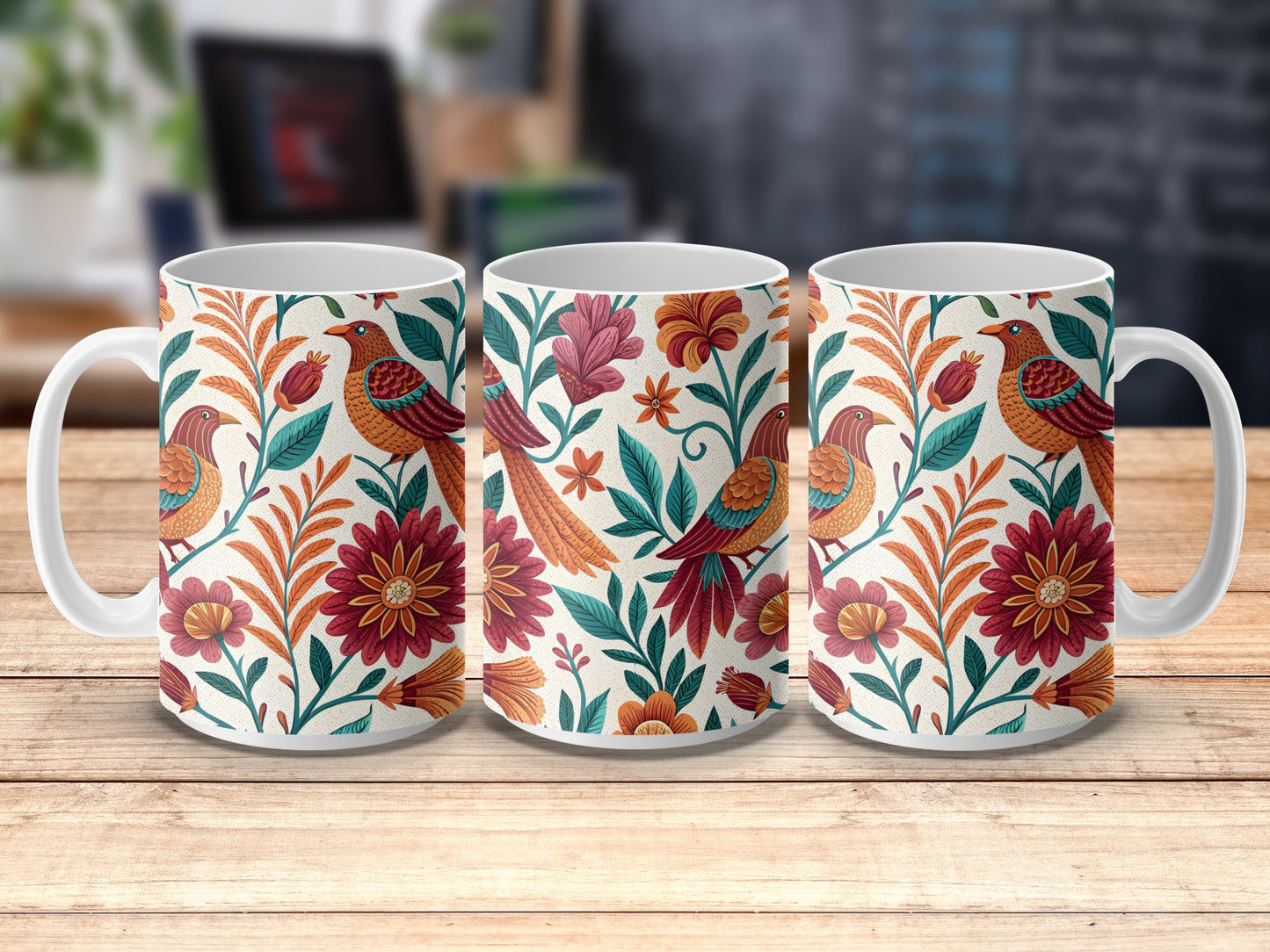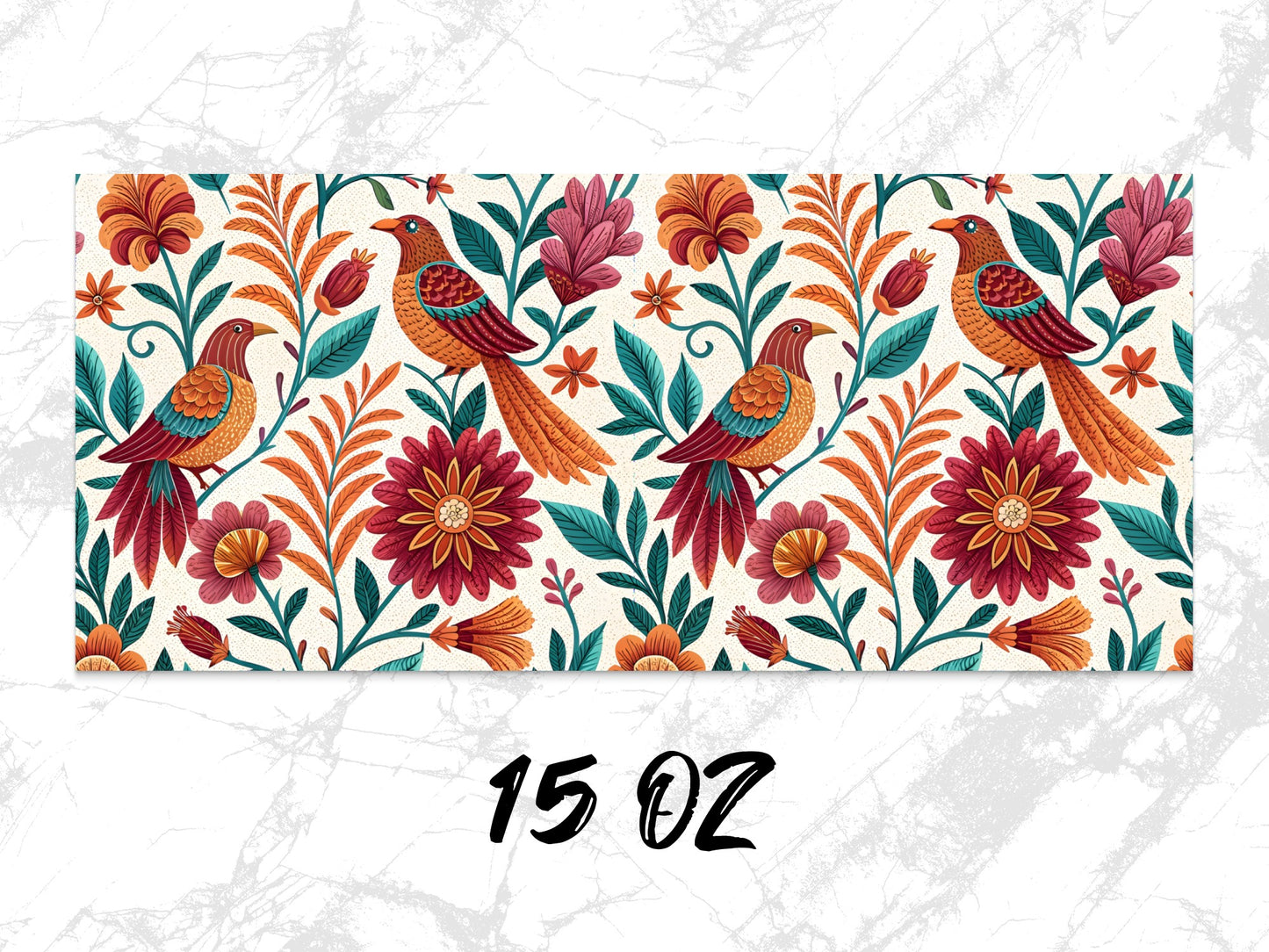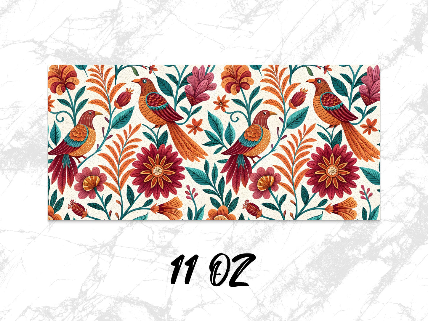 Ornate Birds on Floral Branches Otomi Embroidery Digital