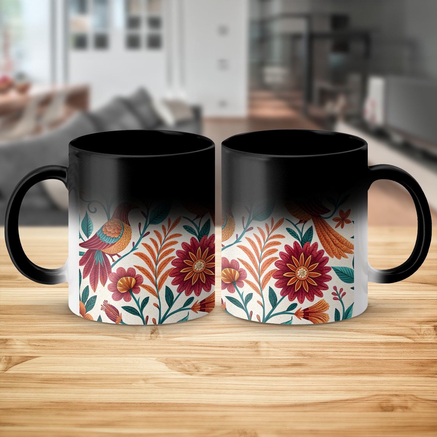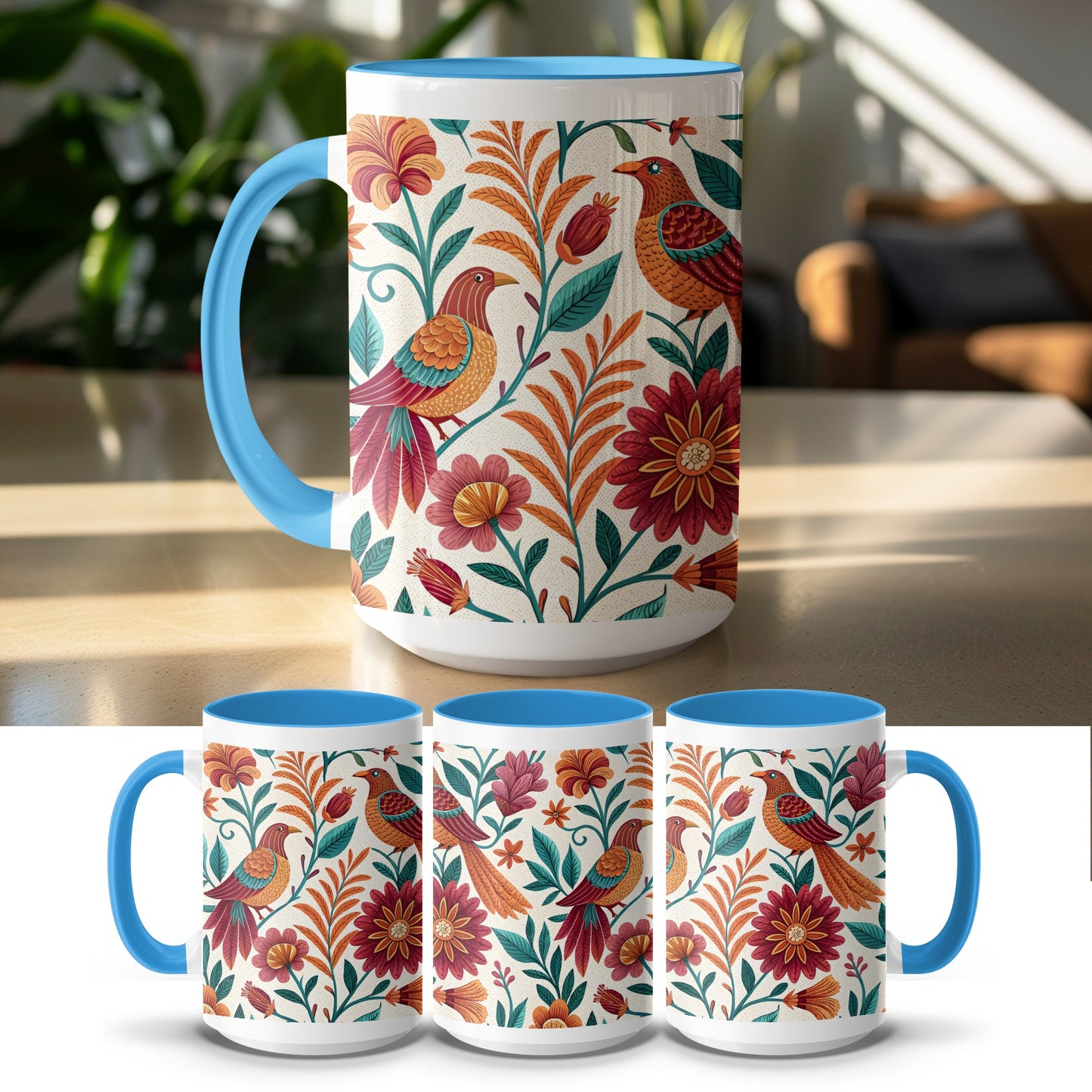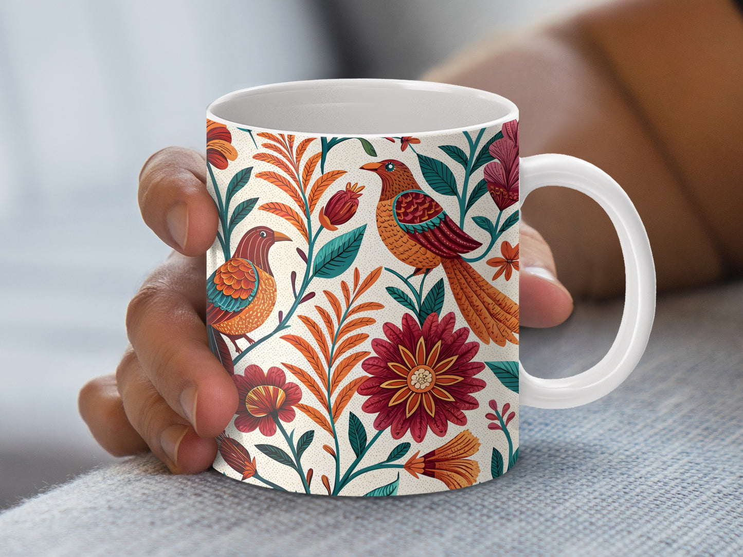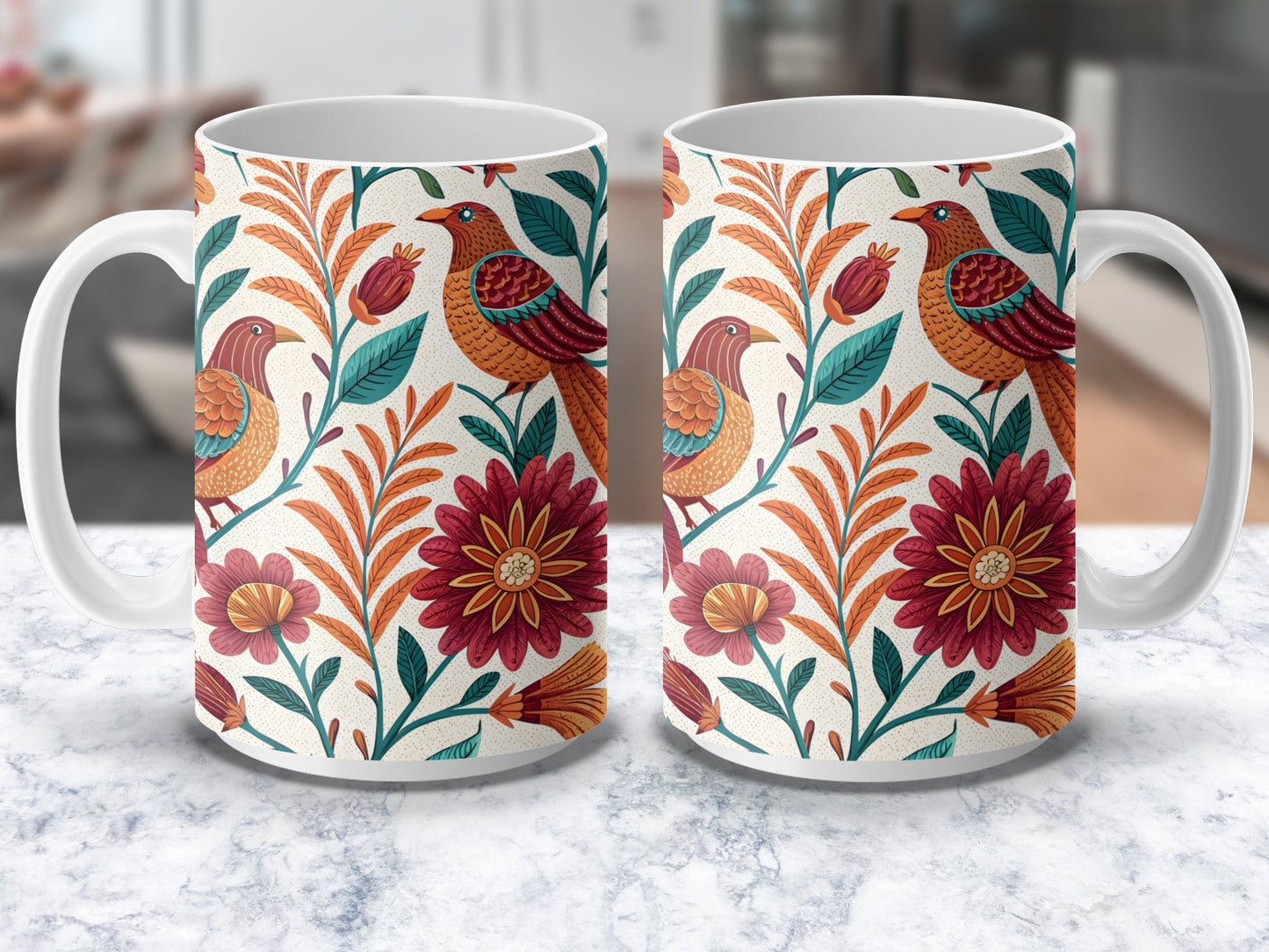 Ornate Birds on Floral Branches Otomi Embroidery Digital