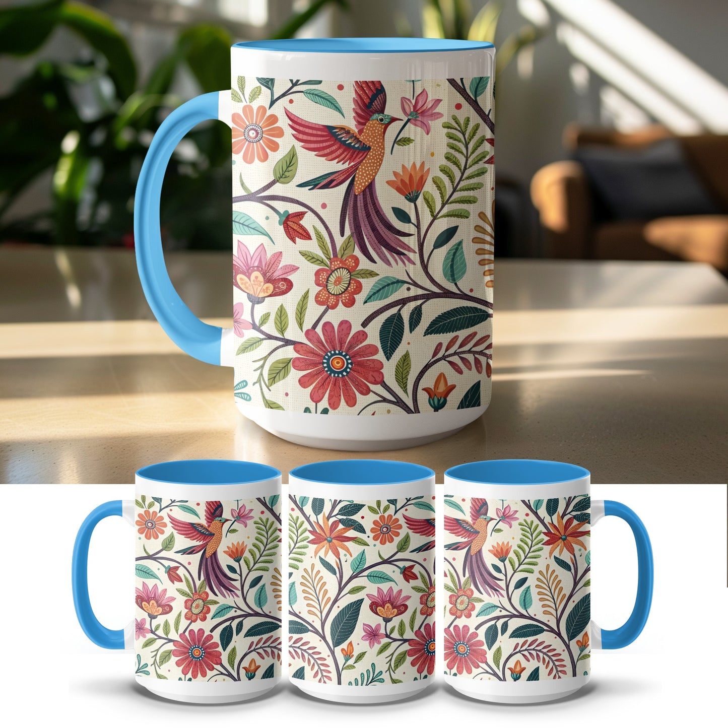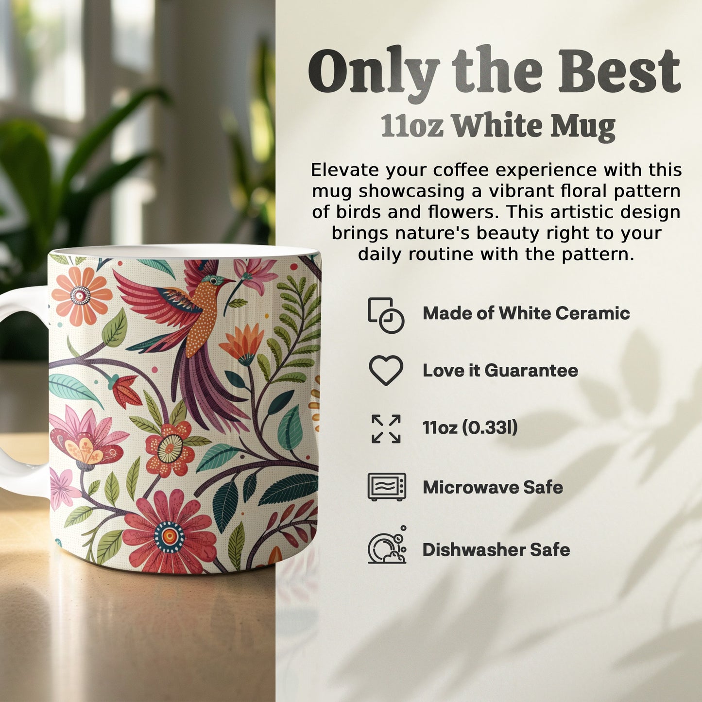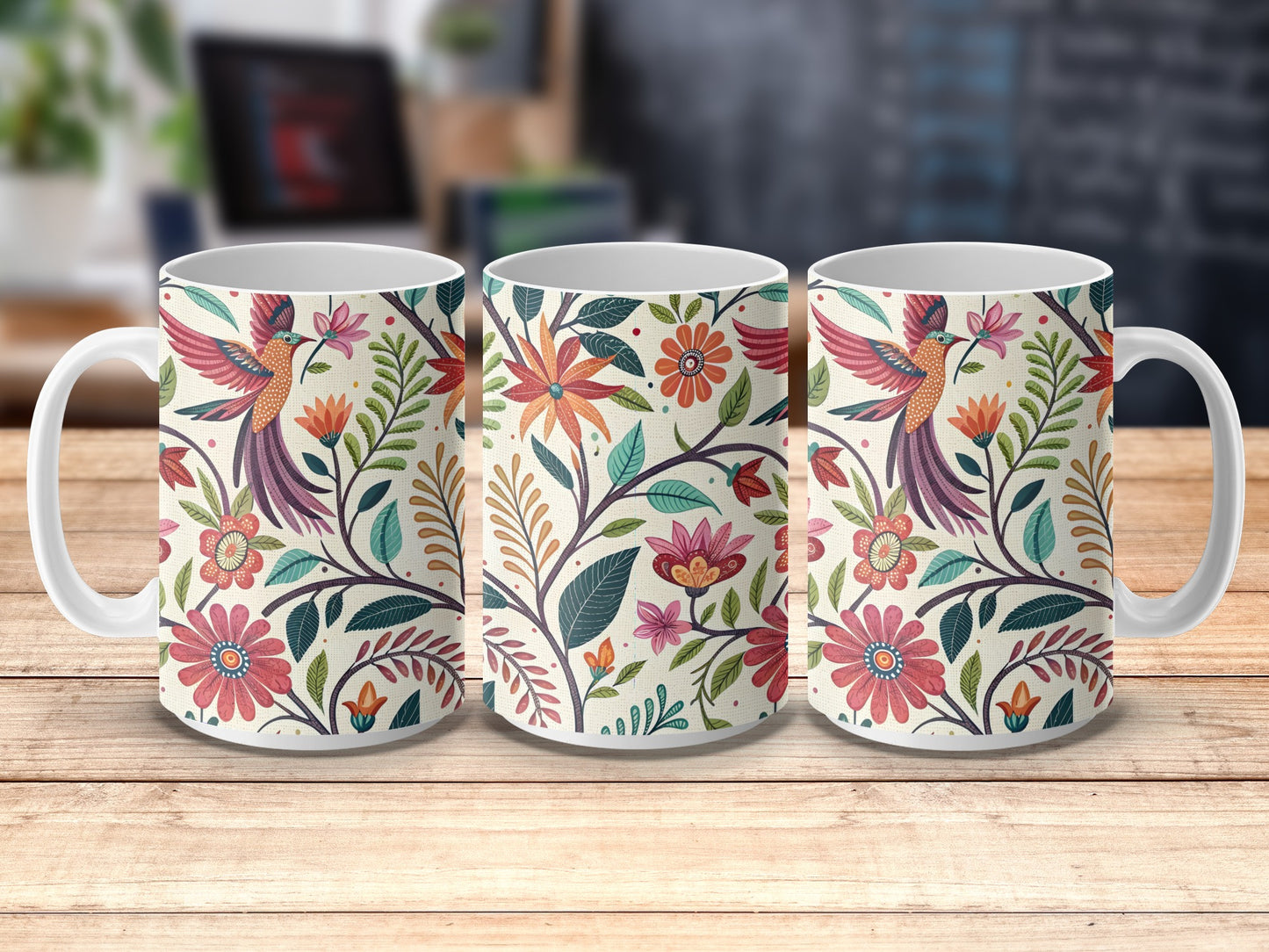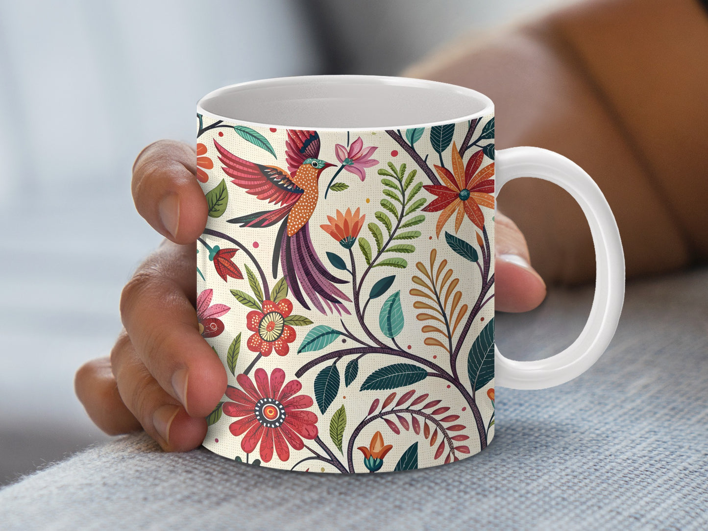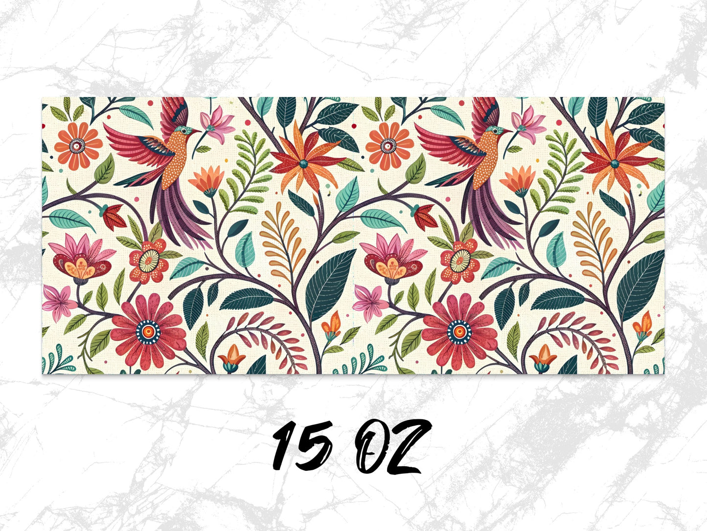 Download this beautiful Otomi embroidery style design pattern featuring colorful flowers and birds. This unique design is perfect for adding a touch of elegance to any project.
