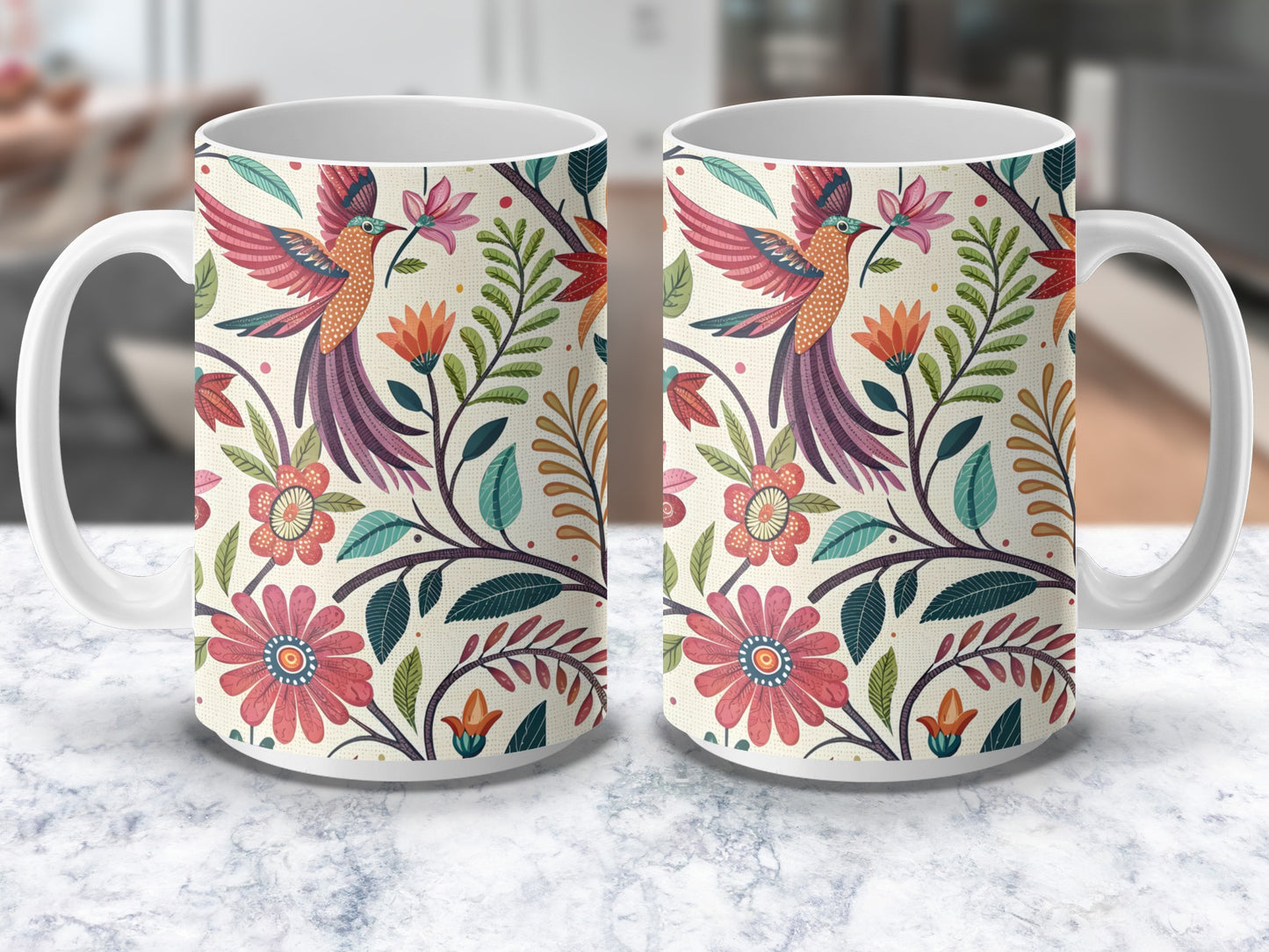 Otomi Embroidery Birds Flowers Design Pattern Digital