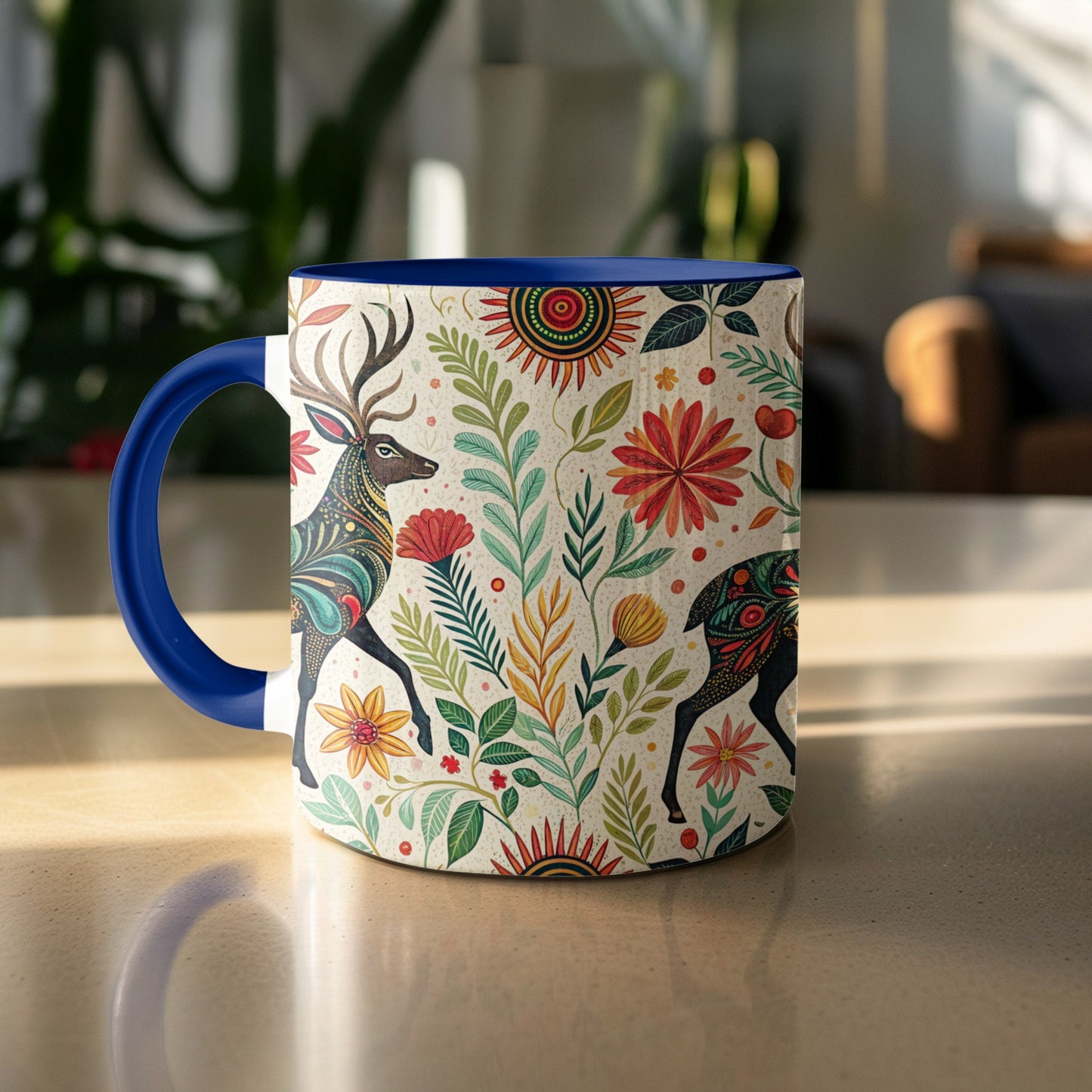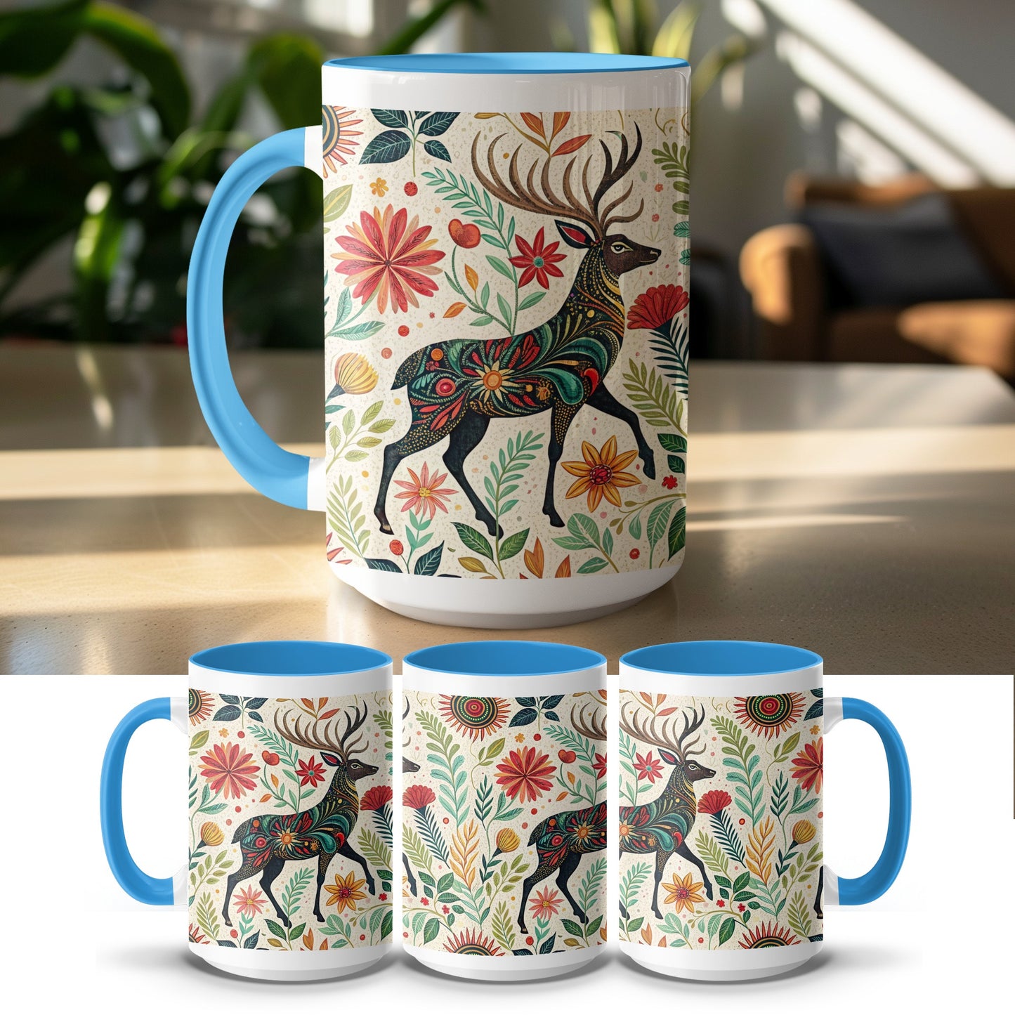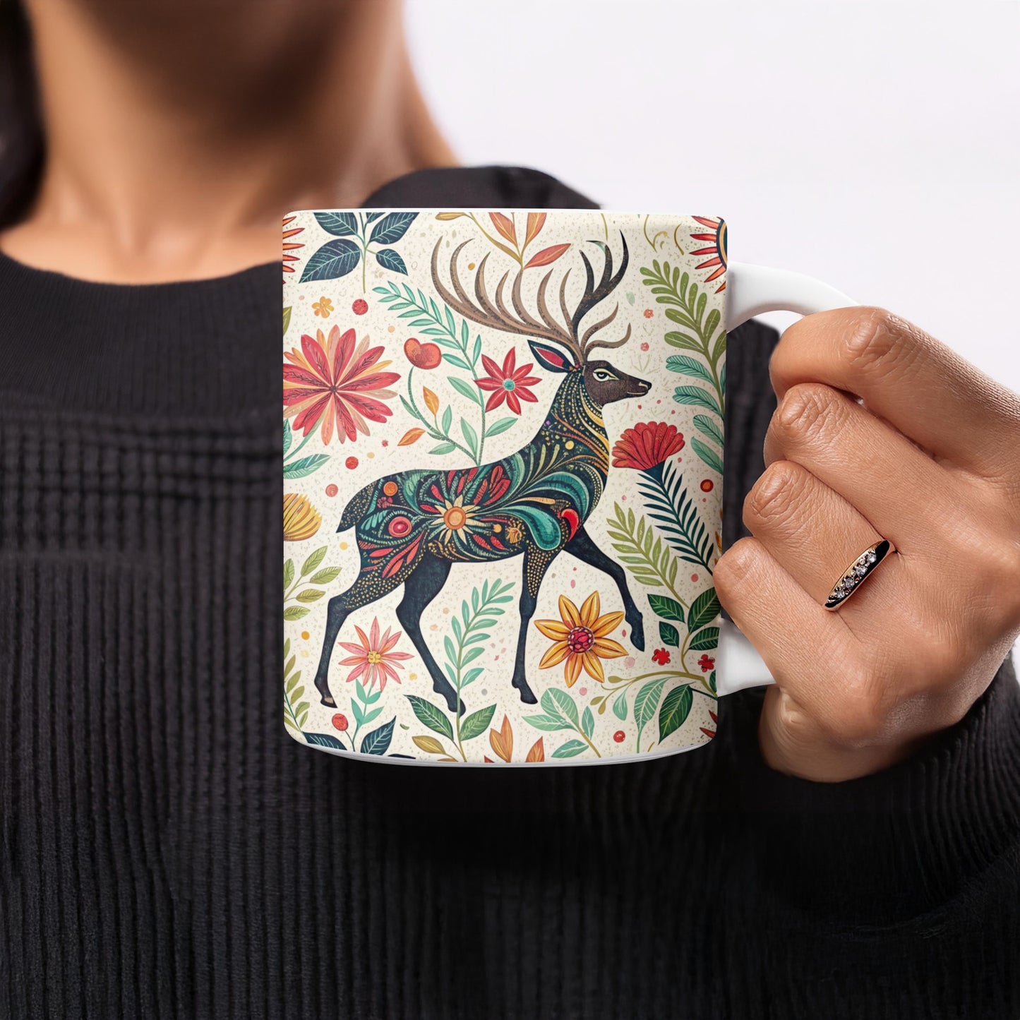 Otomi Embroidery Floral Deer Art Unique Drinkware Mug