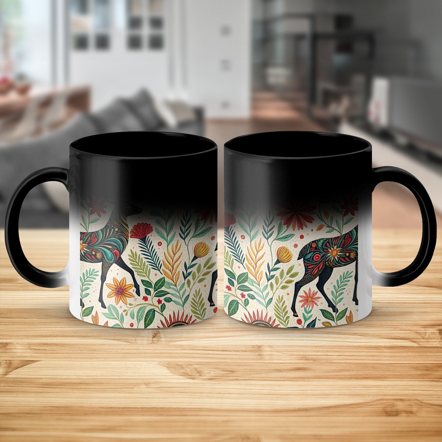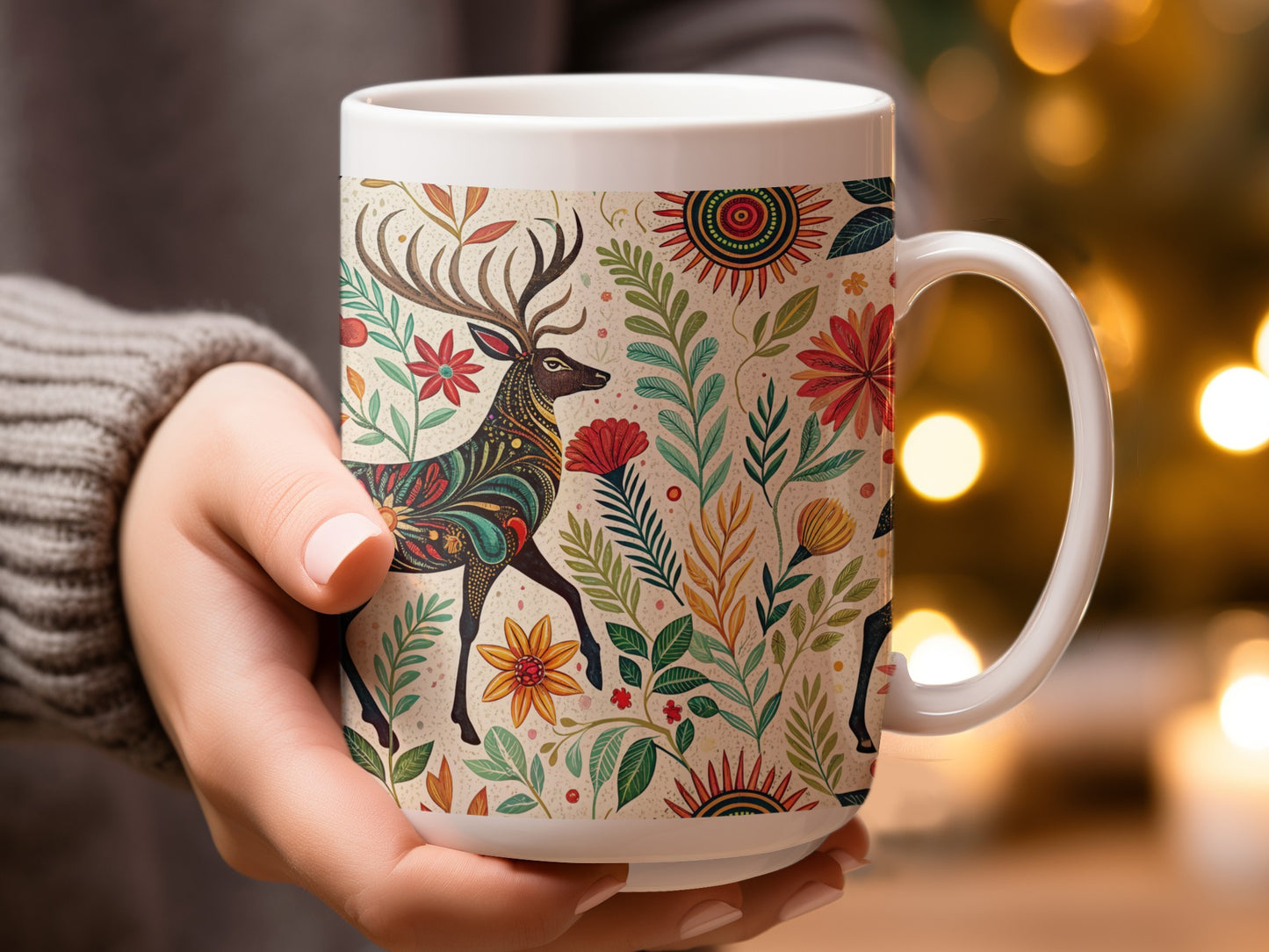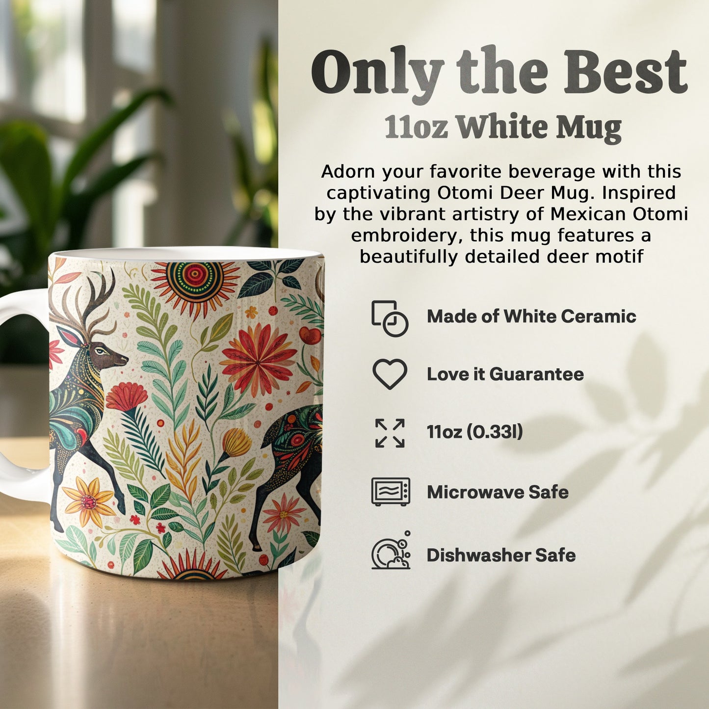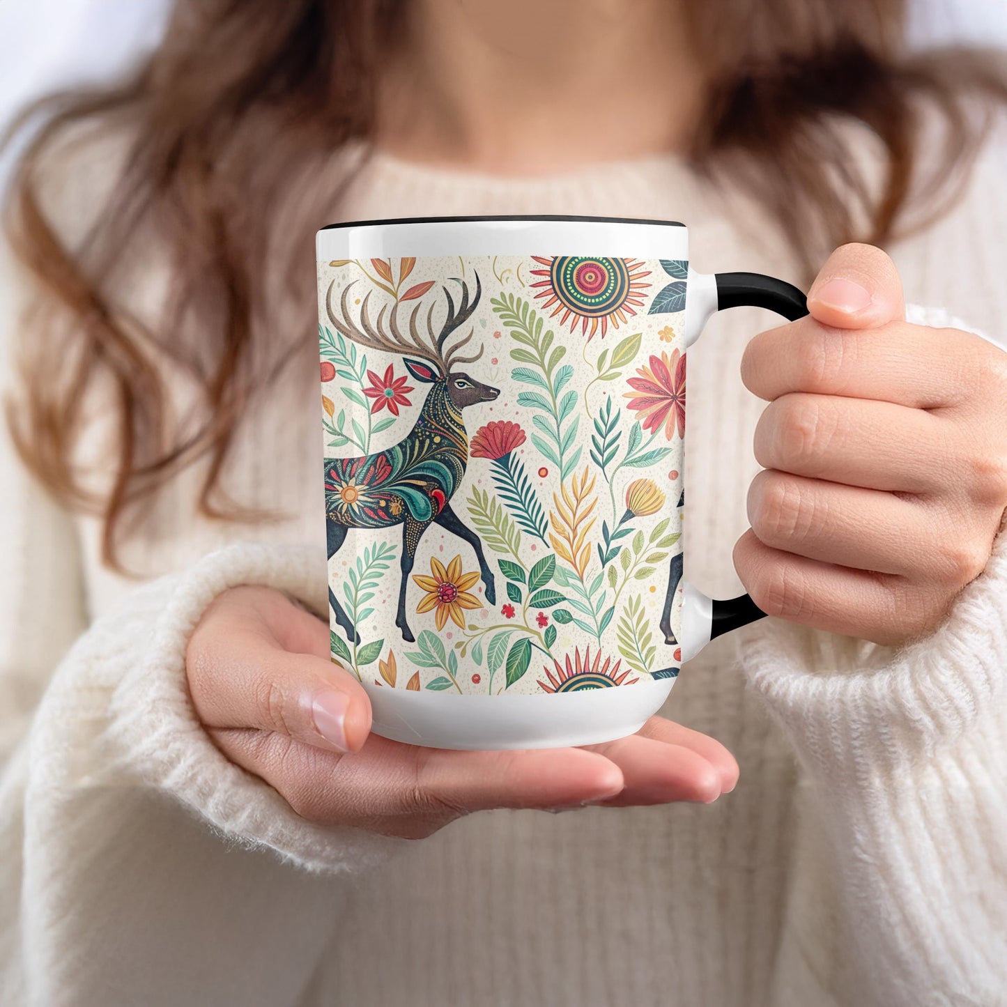 Otomi Embroidery Floral Deer Art Unique Drinkware Mug