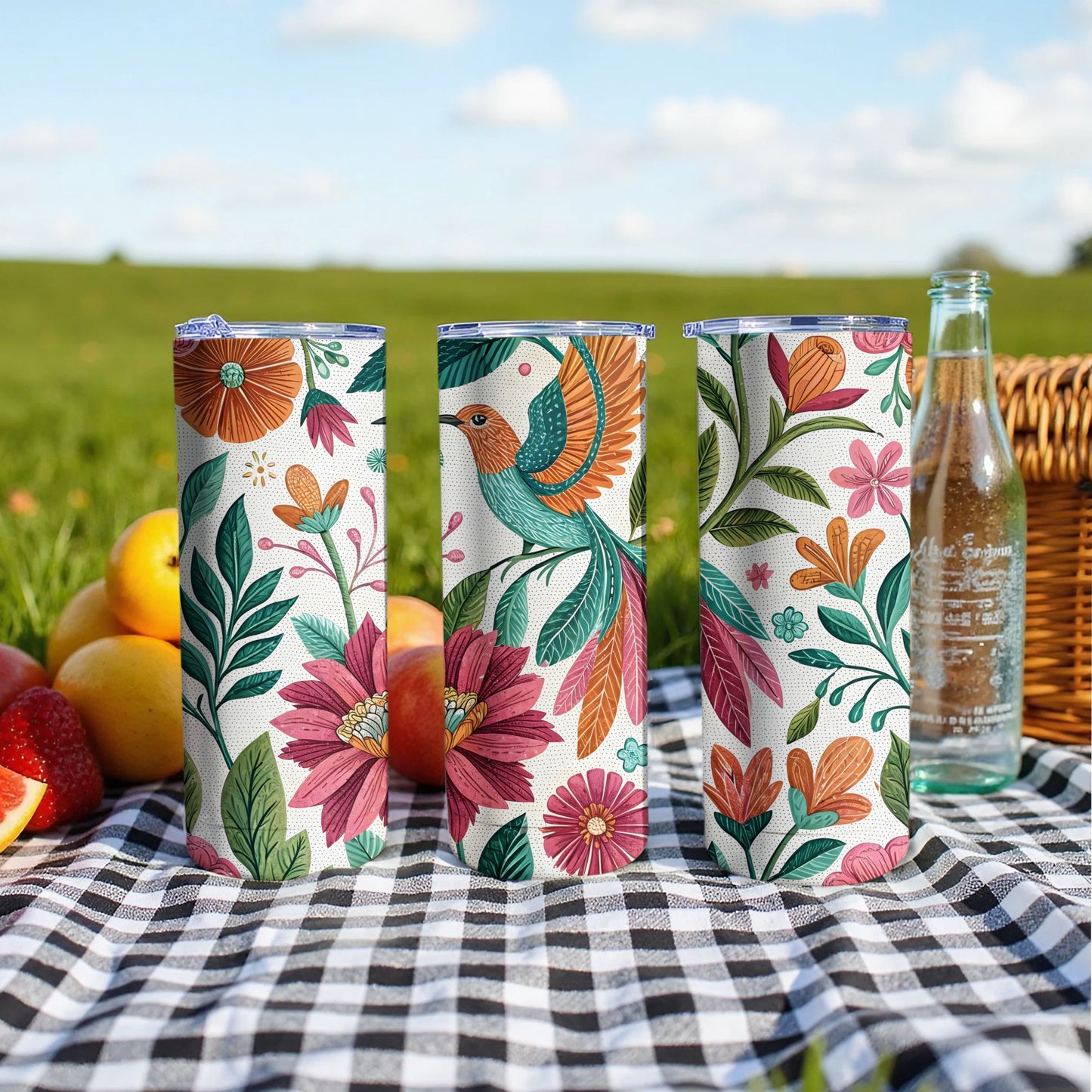 Otomi Embroidery Floral Design Unique Bird Art Tumbler