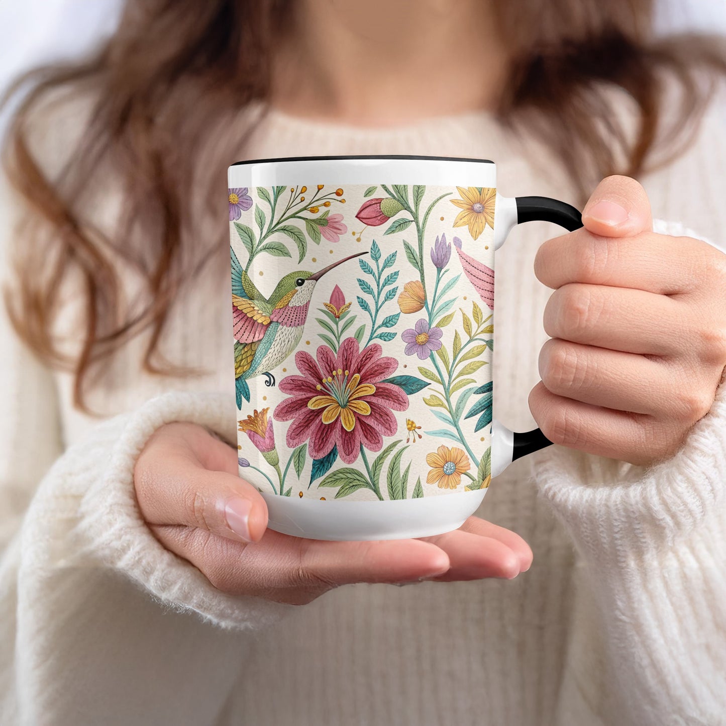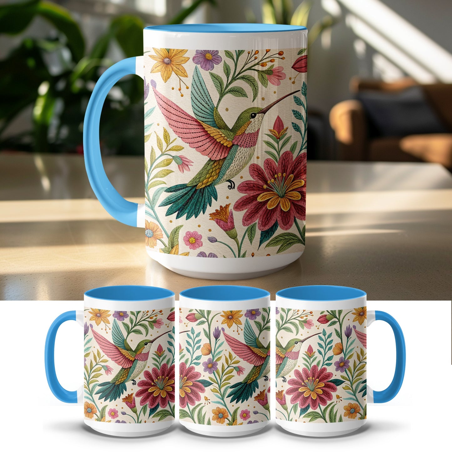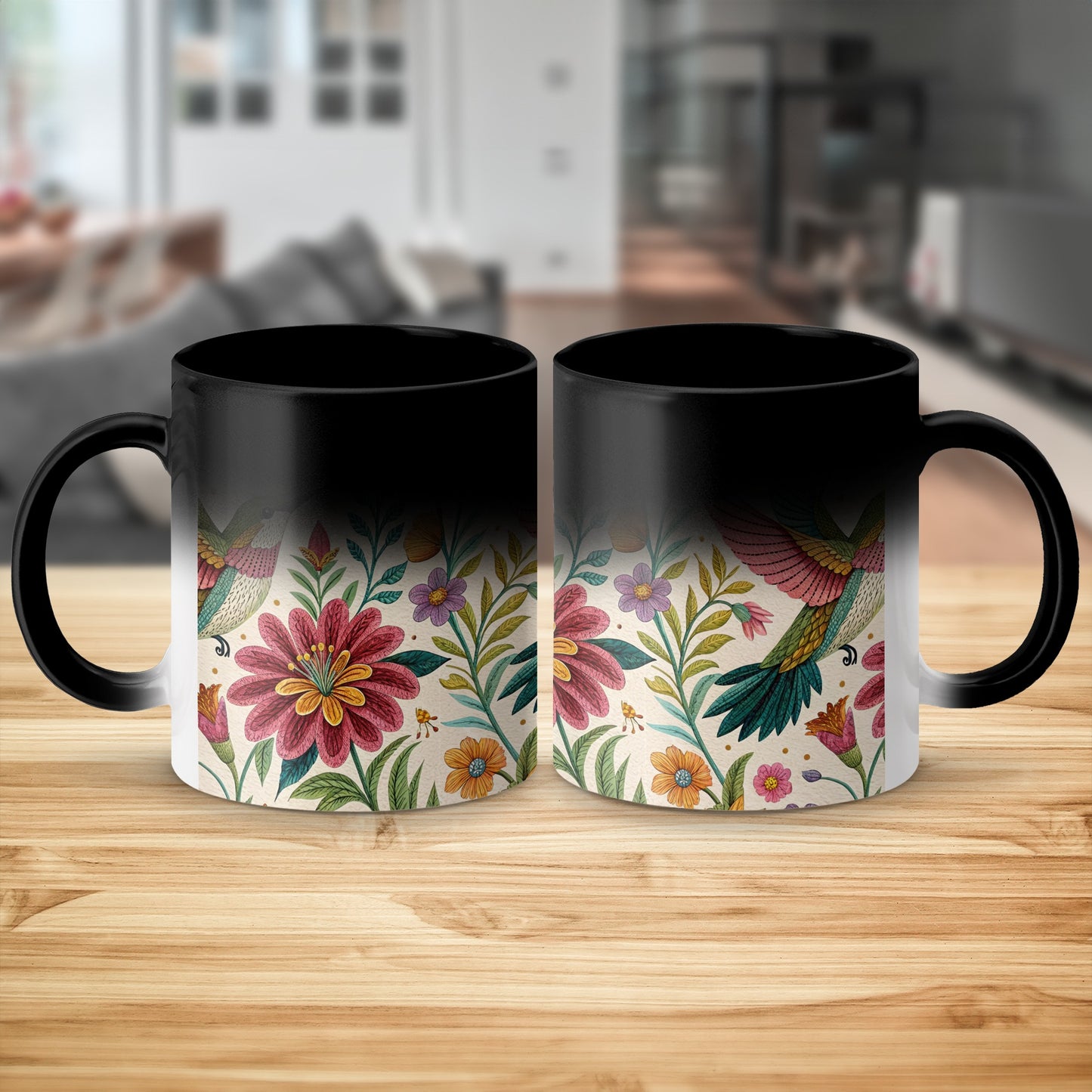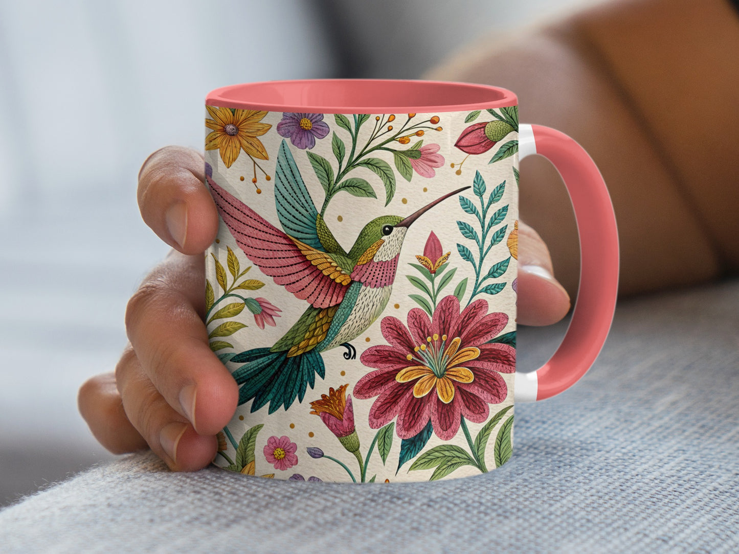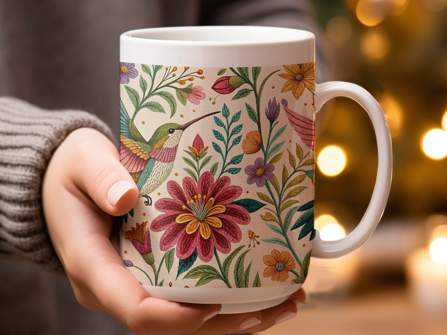 Otomi Embroidery Hummingbird and Flowers Design Mug