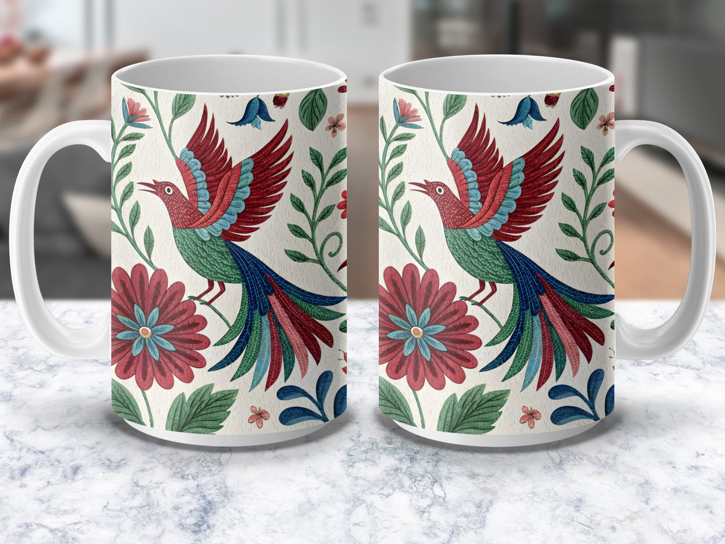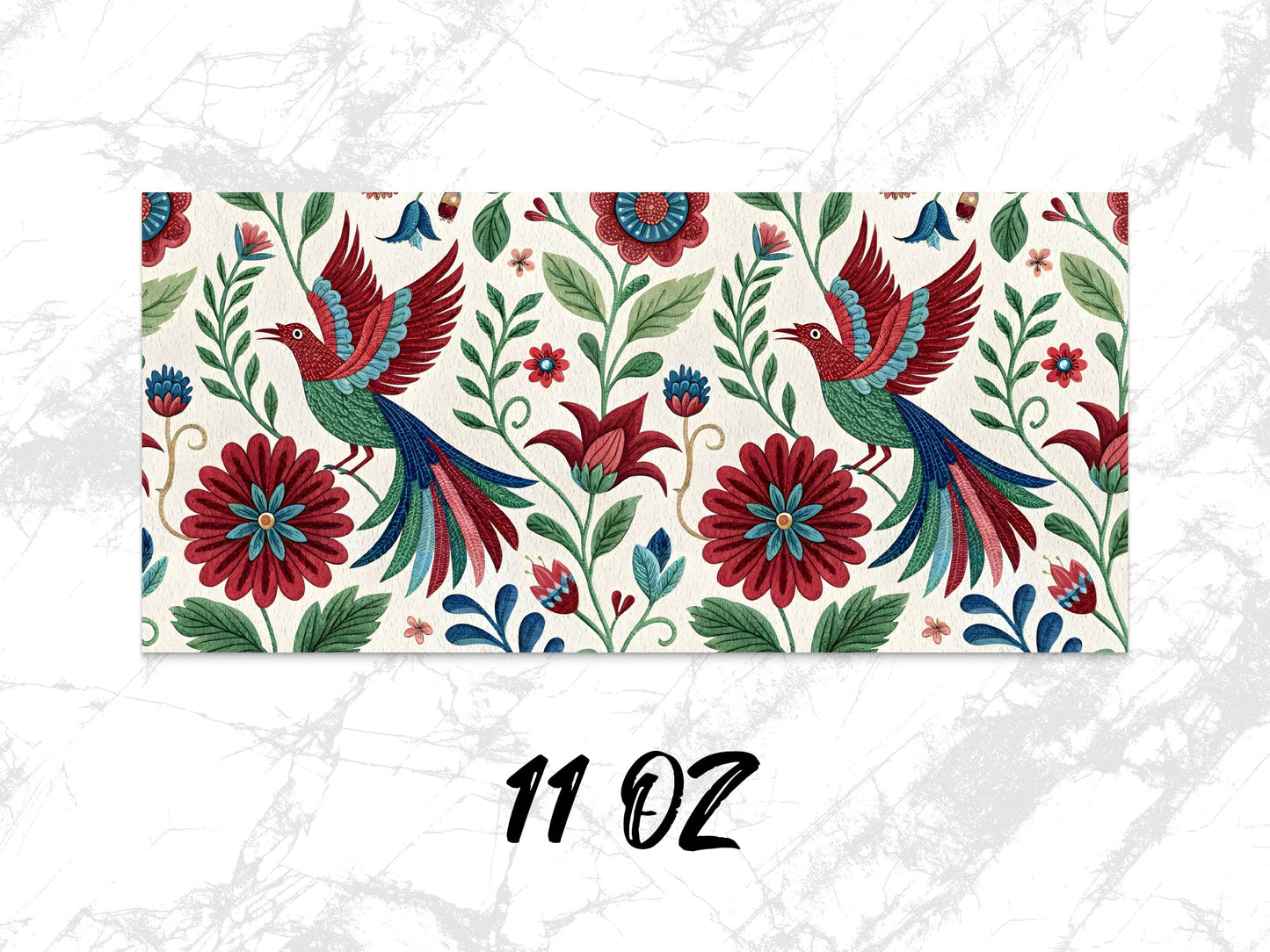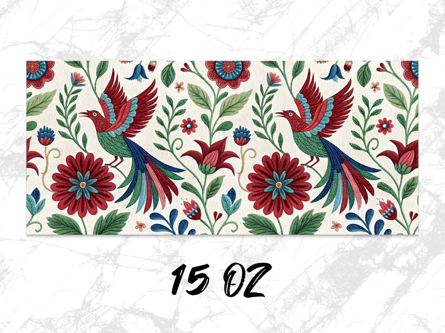 Otomi Embroidery Style Bird and Floral Pattern Digital