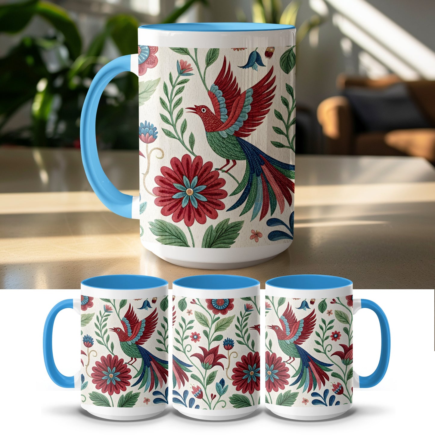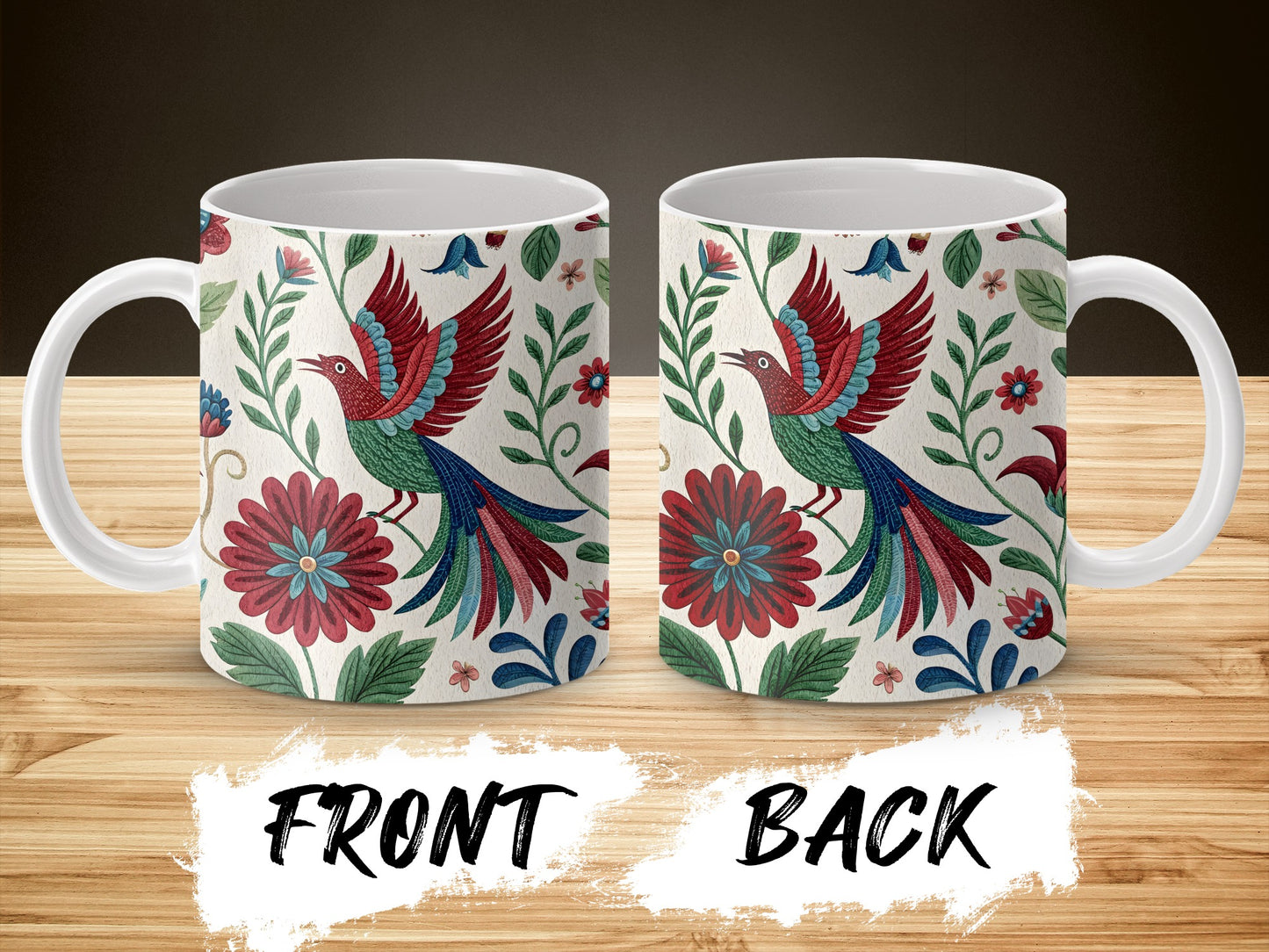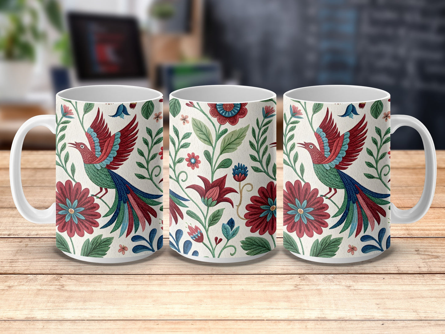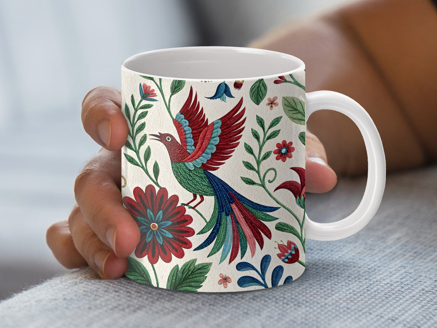 Otomi Embroidery Style Bird and Floral Pattern Digital