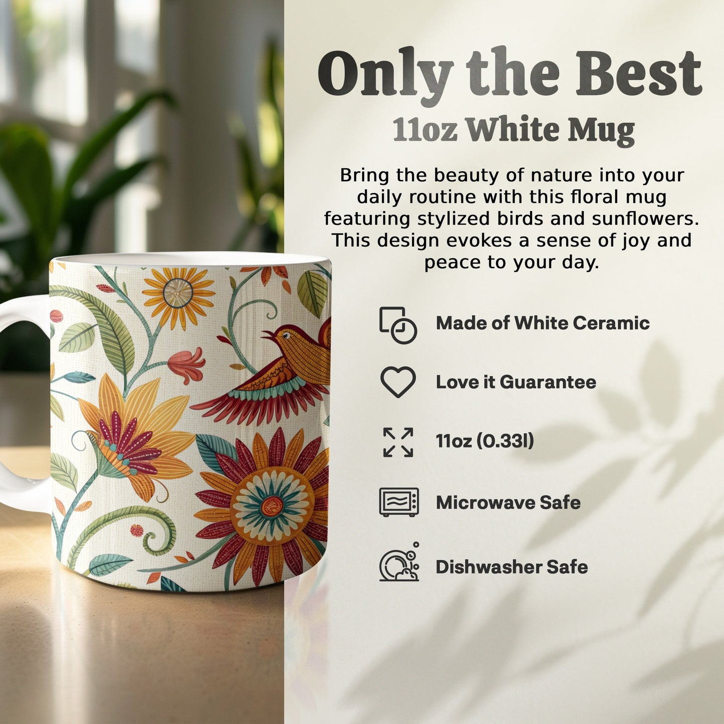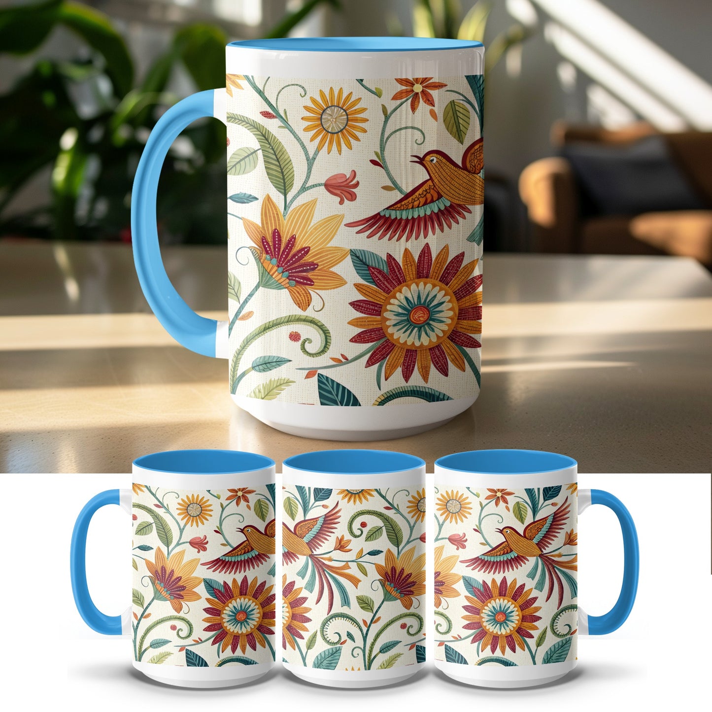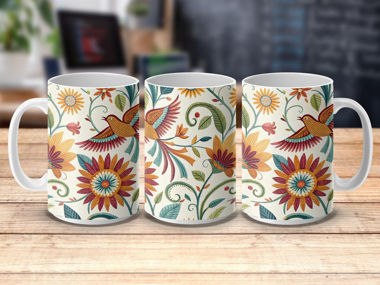 Add a vibrant touch of Mexican folk art to any project using this Otomi embroidery inspired digital design featuring birds and flowers. Perfect print asset with unique style.