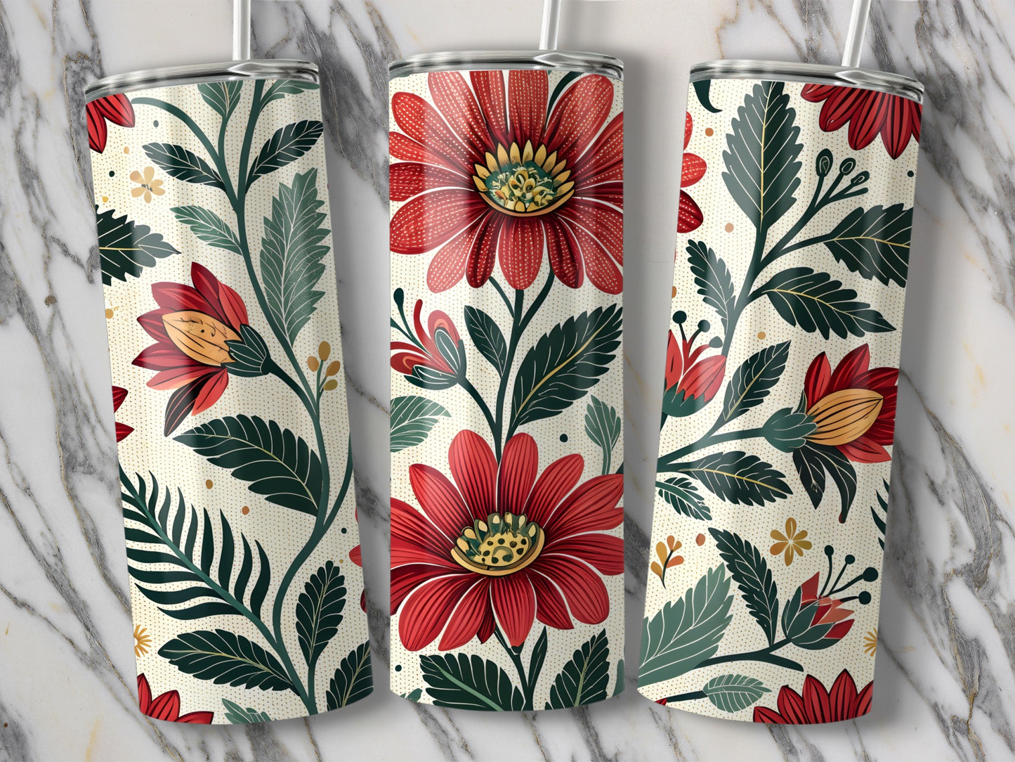 Otomi Embroidery Style Floral Design Great for Gifts Tumbler