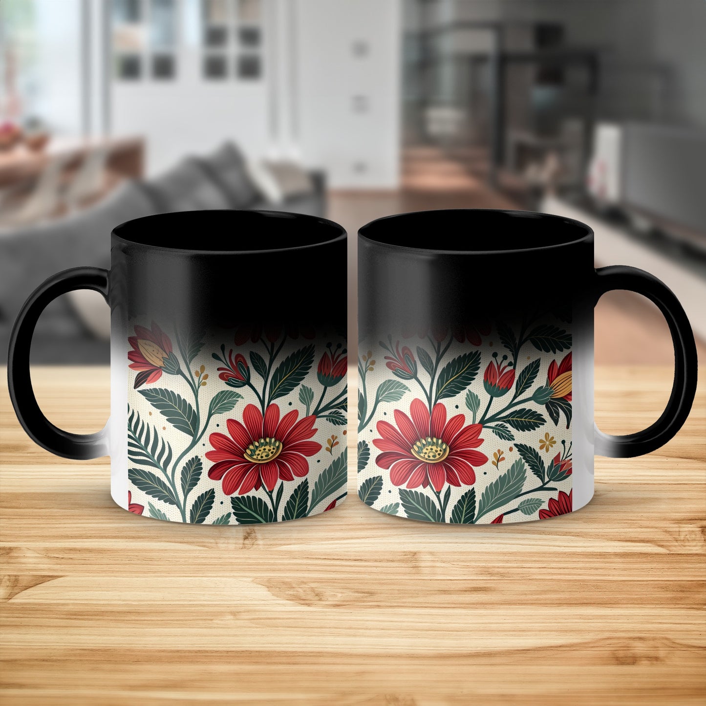 Otomi Red Flowers And Green Leaves Pattern Design Mug