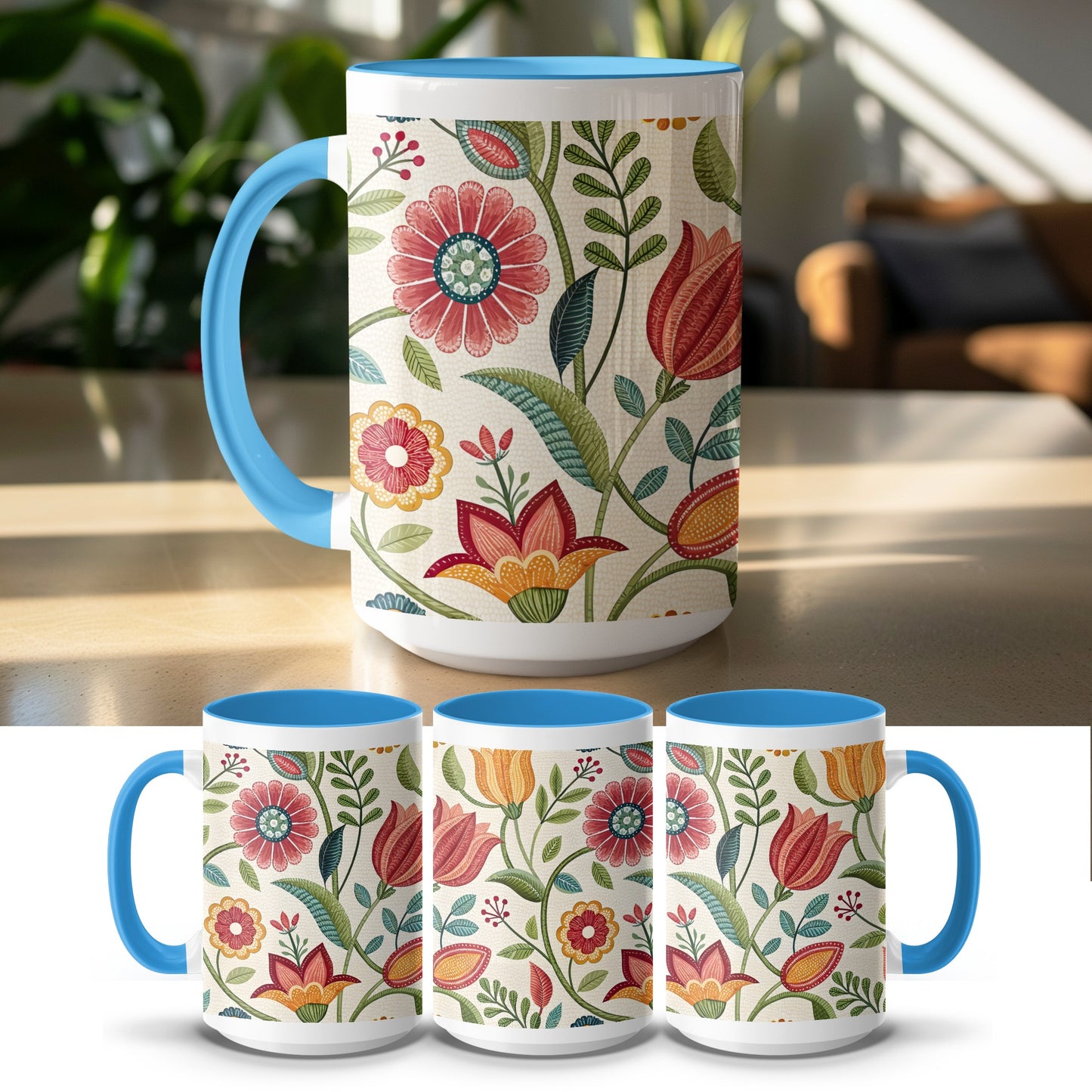 Otomi Flowers in Full Bloom Pattern Intricate Design Digital