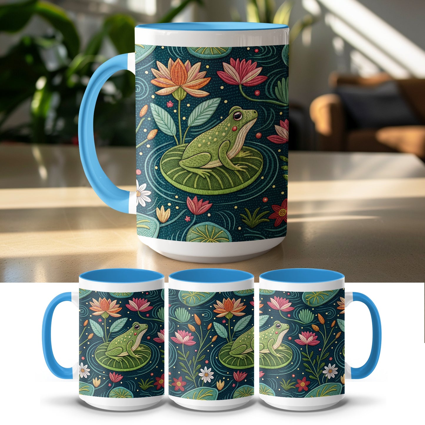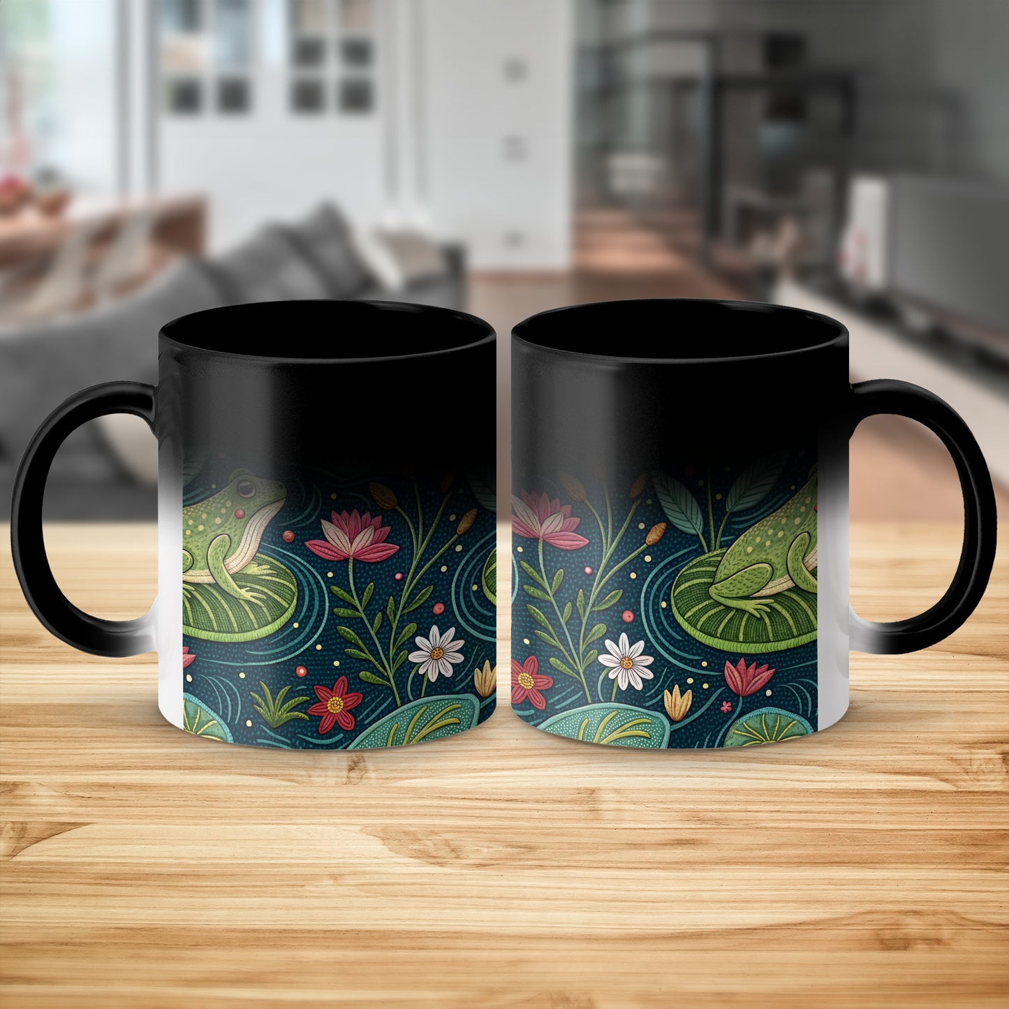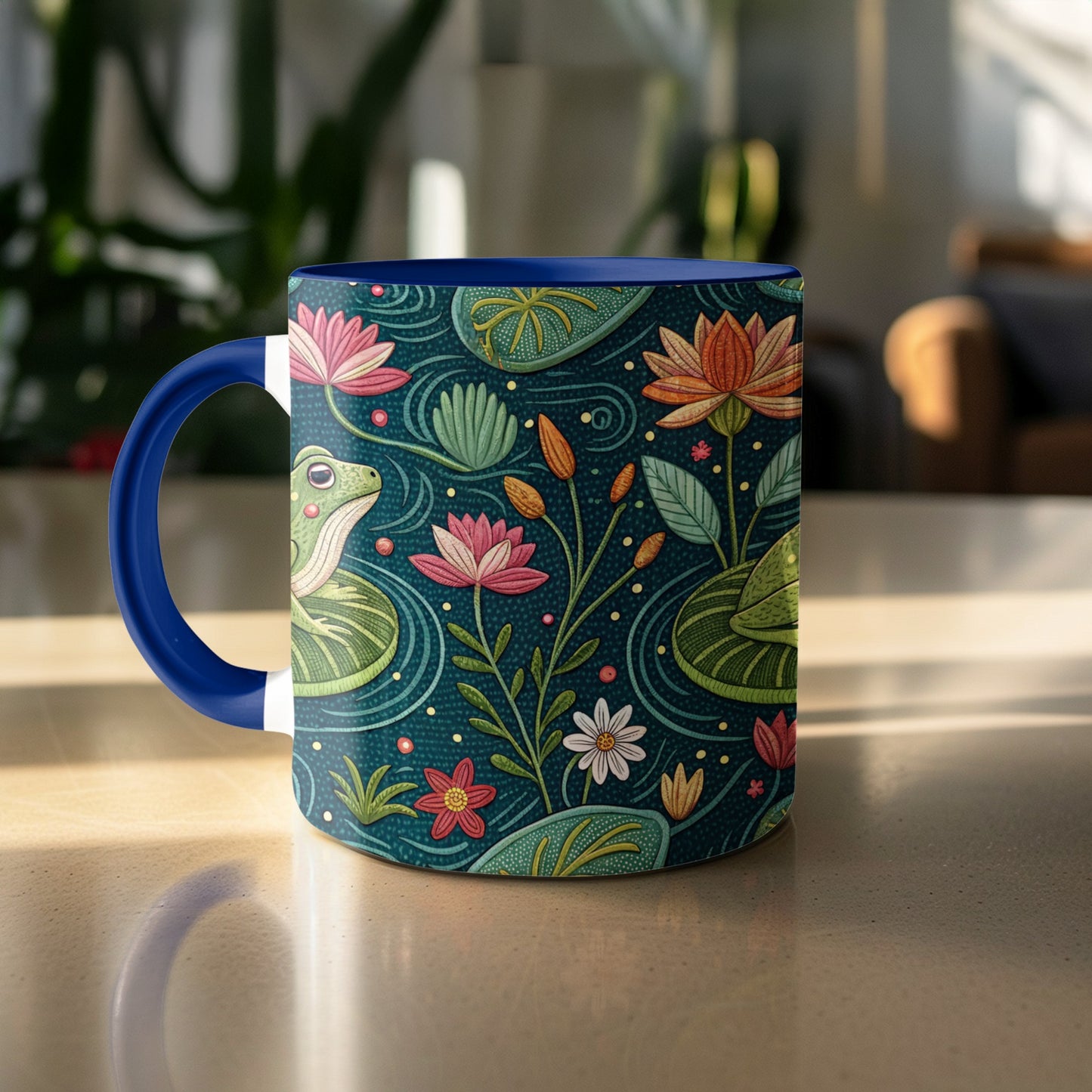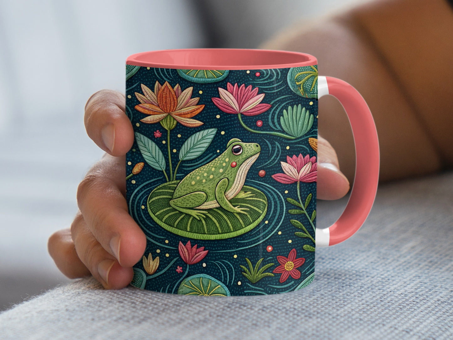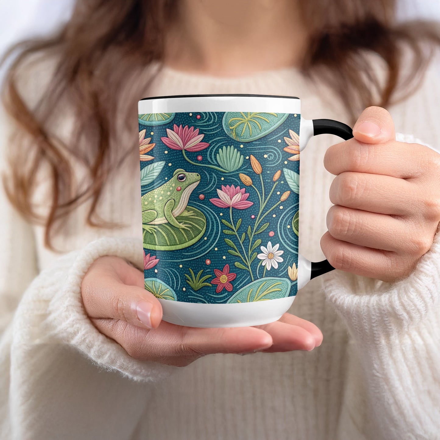 Otomi Frog with Floral Water Lilies Decorative Design Mug