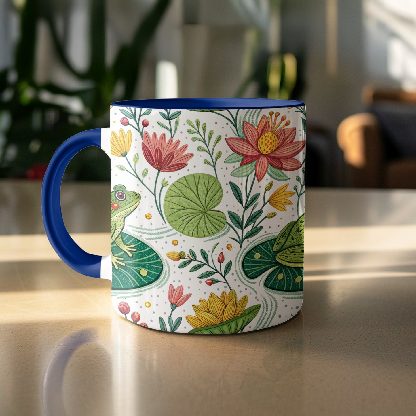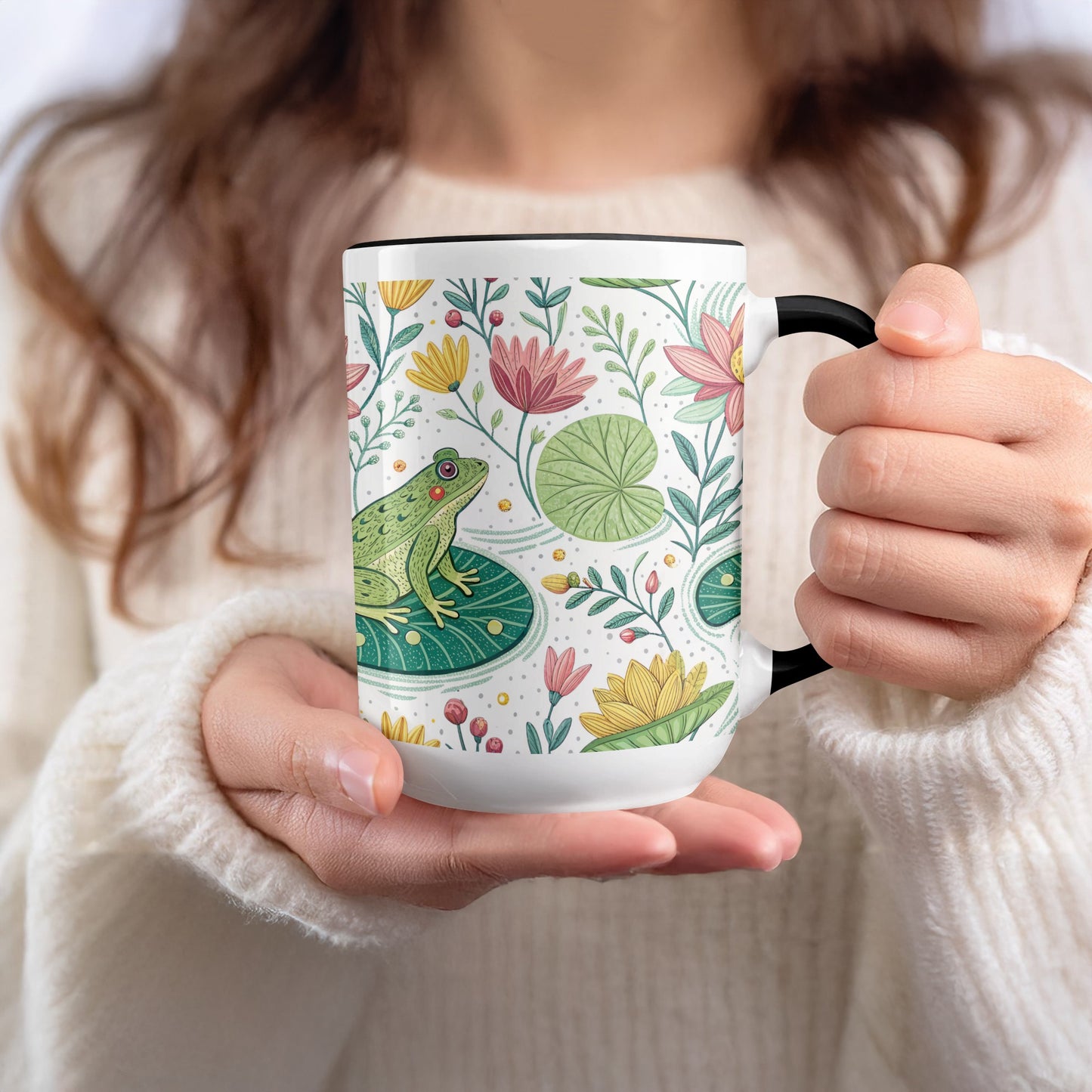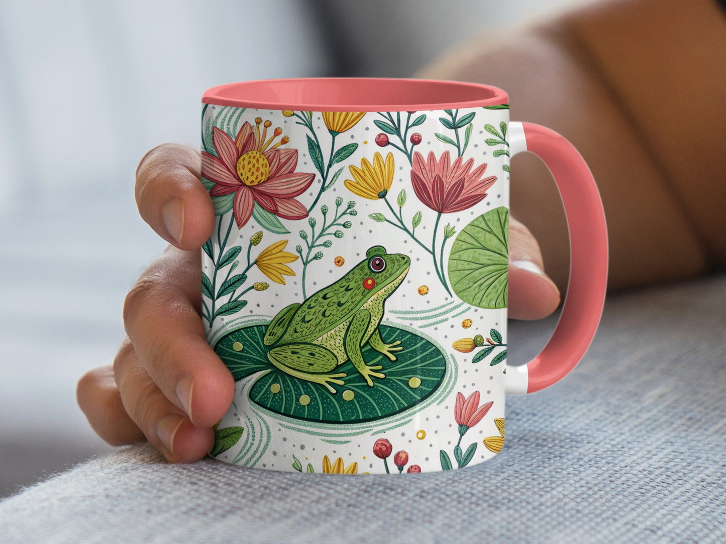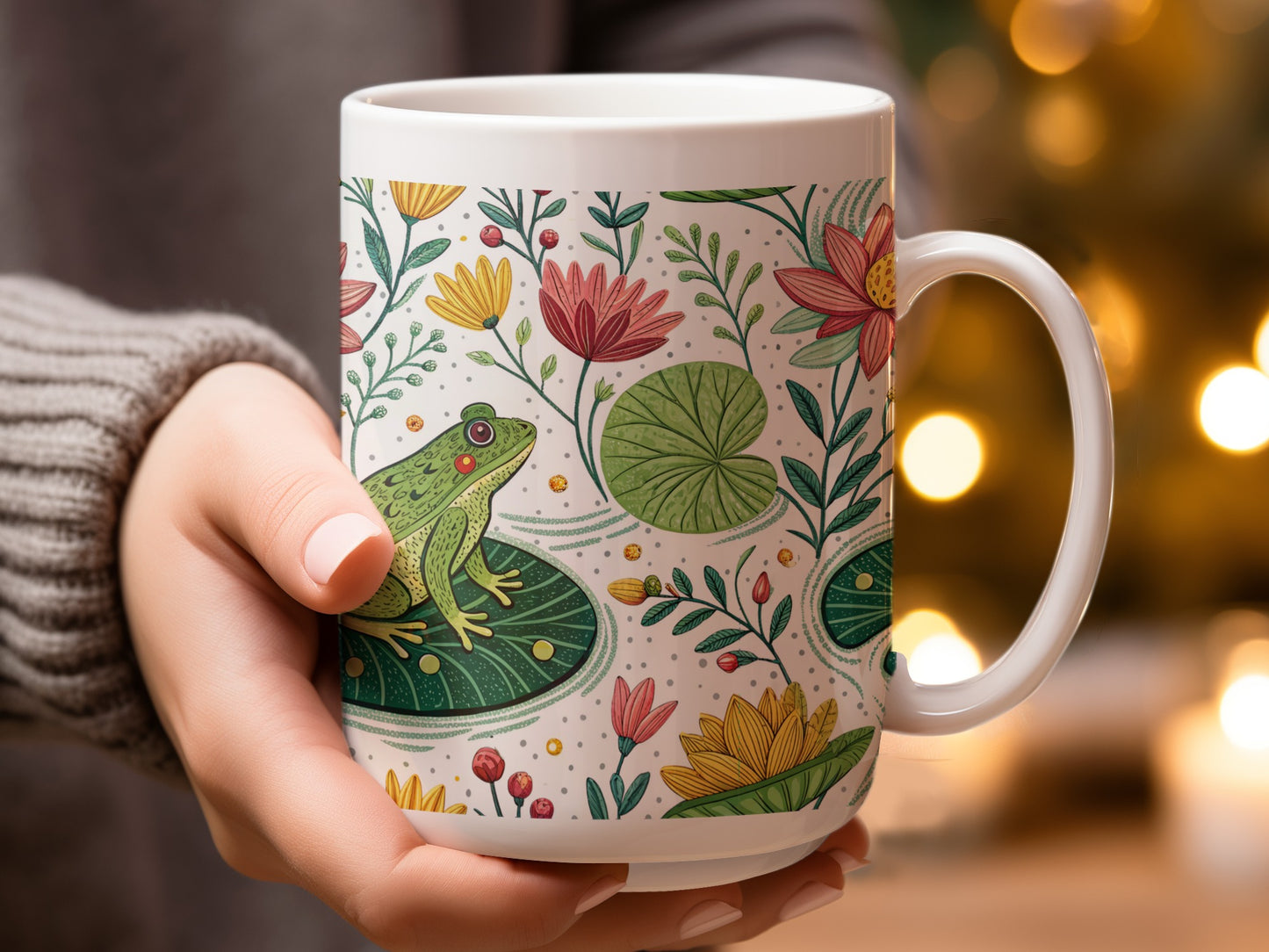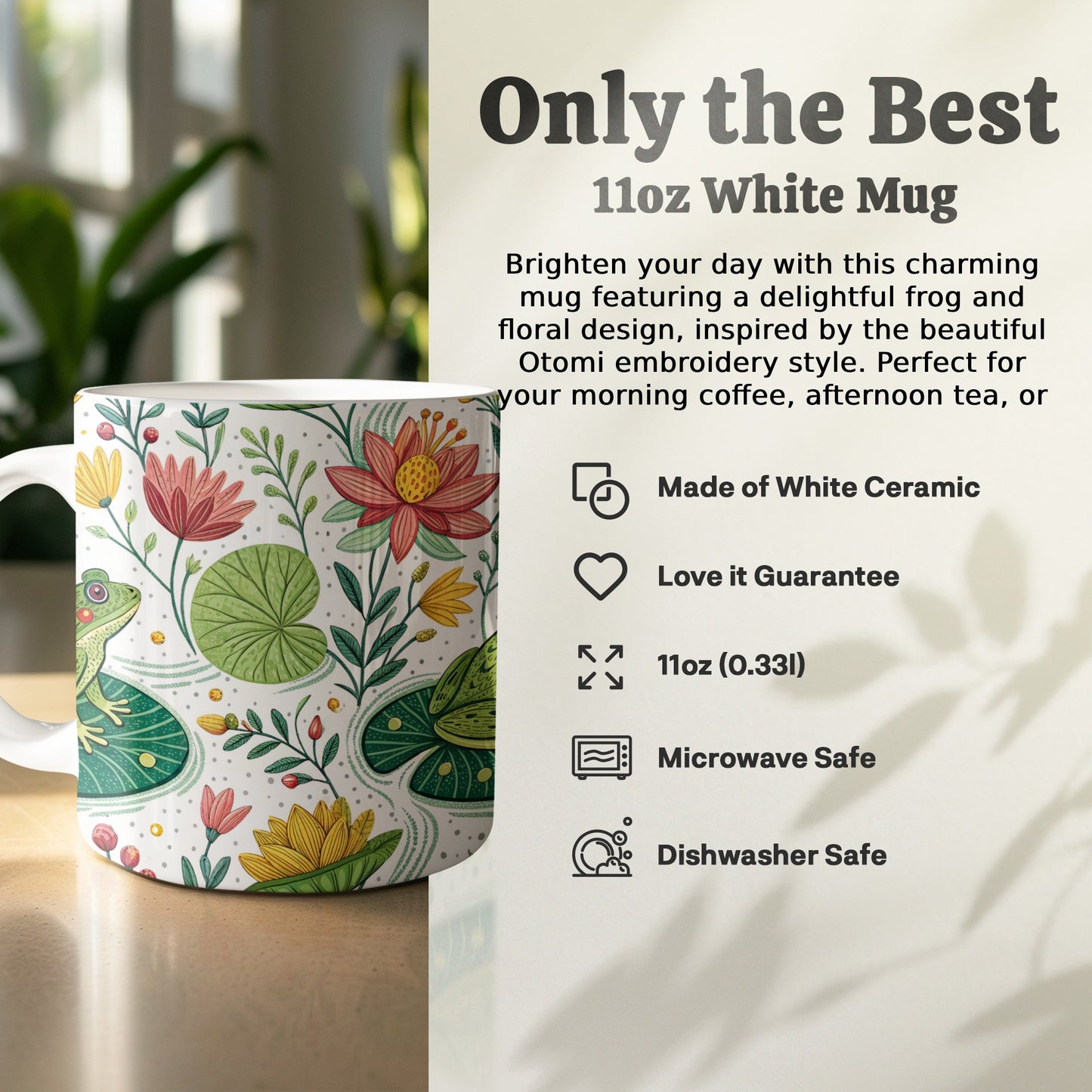 Otomi Style Frog And Floral Design Decorative Coffee Mug