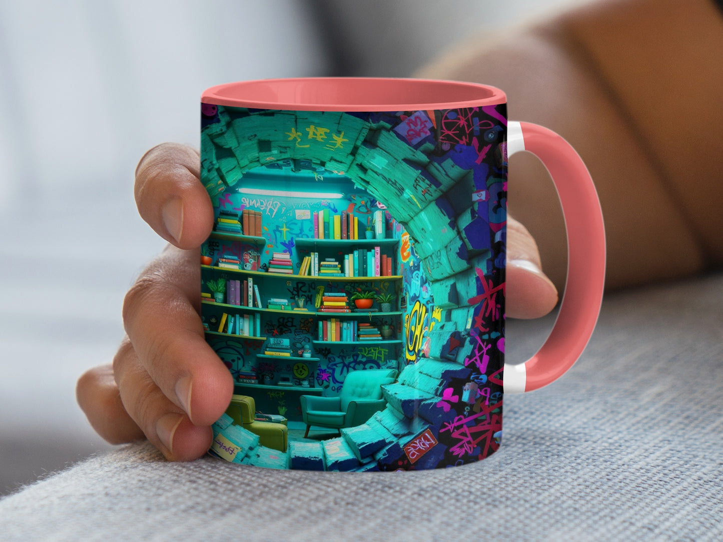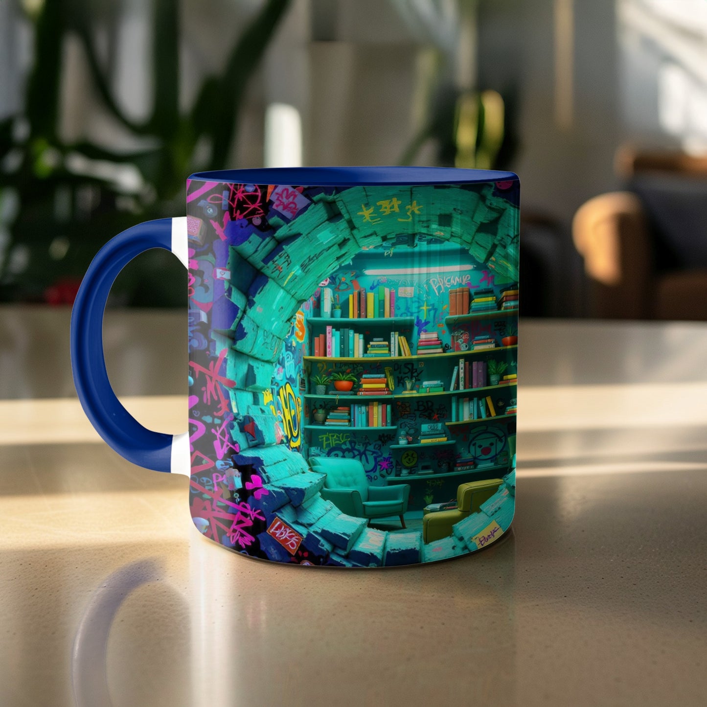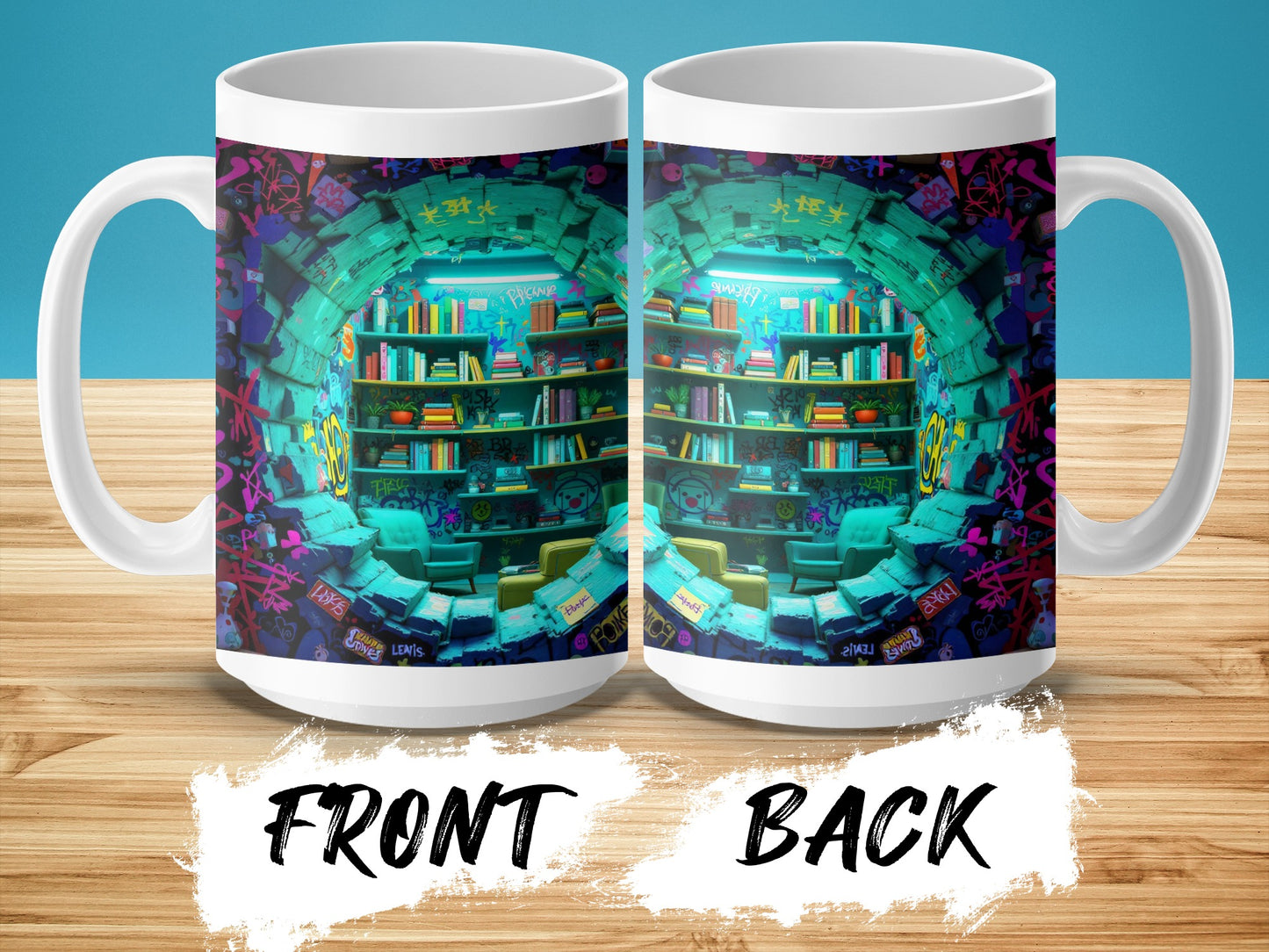 Graffiti Covered Bookshelf Interior Design Unique Mug