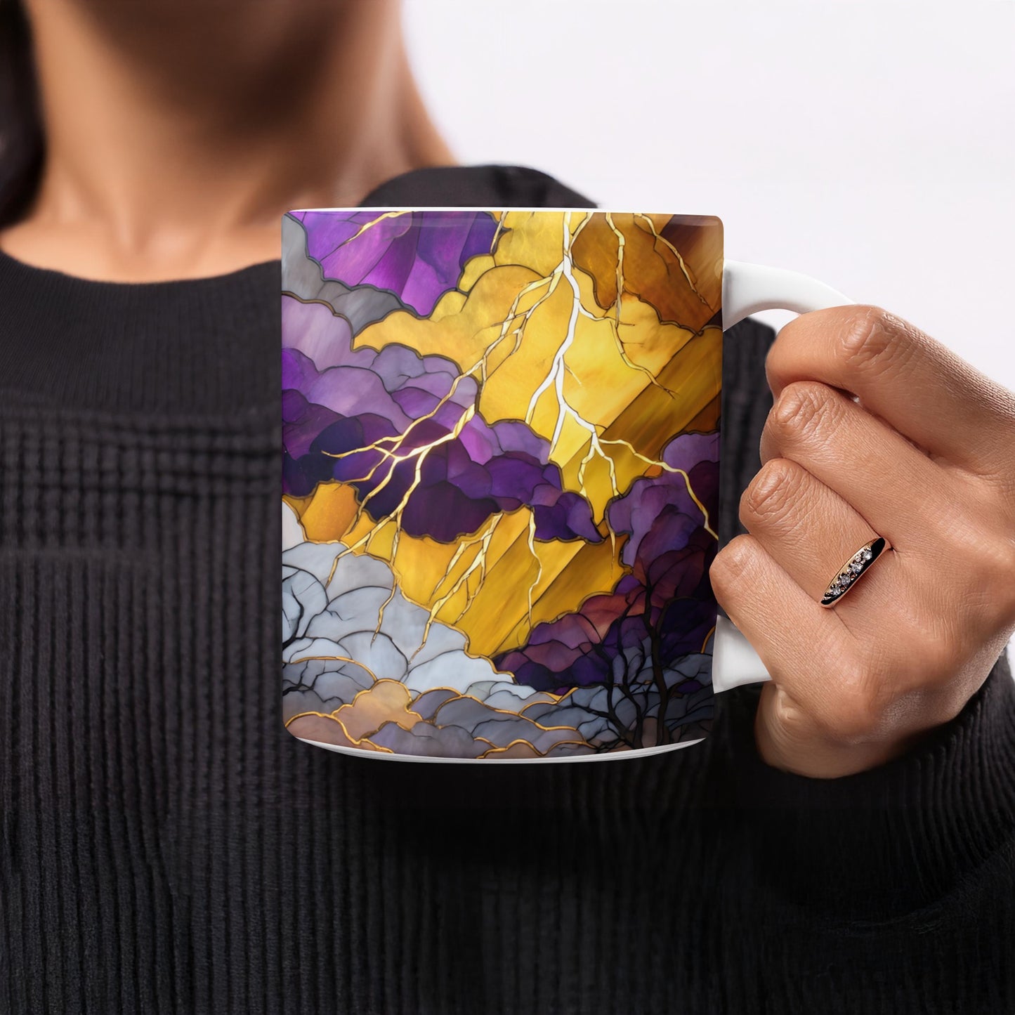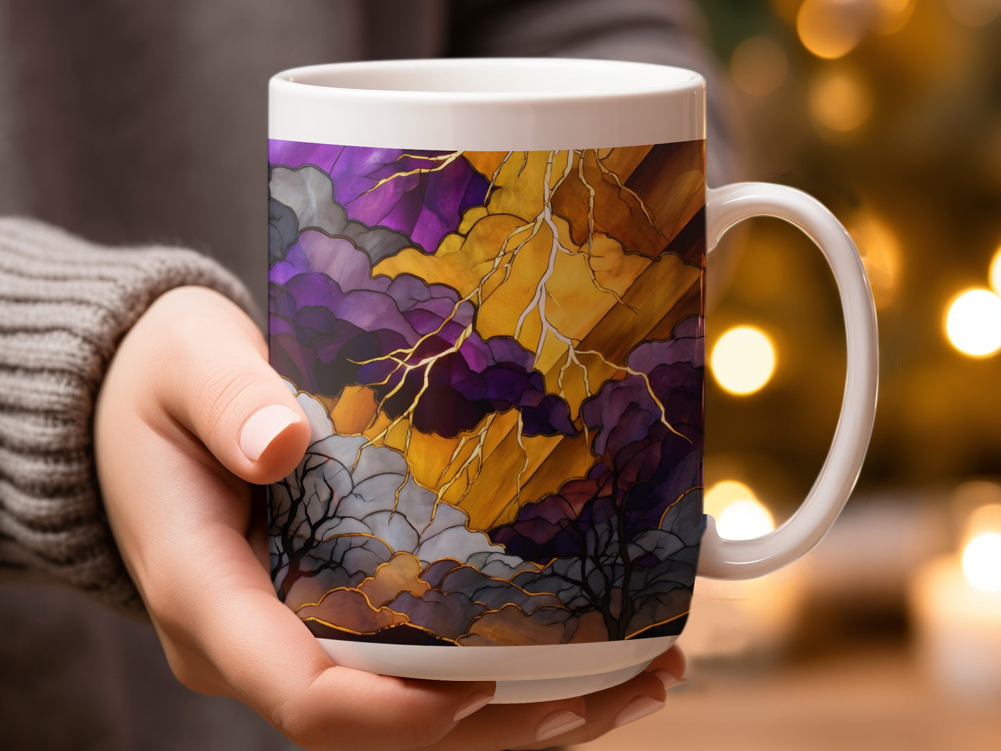 This stained glass themed design shows the golden lighting and purple abstract stained design, perfect for elevating design projects or personal digital creations. Grab yours today.