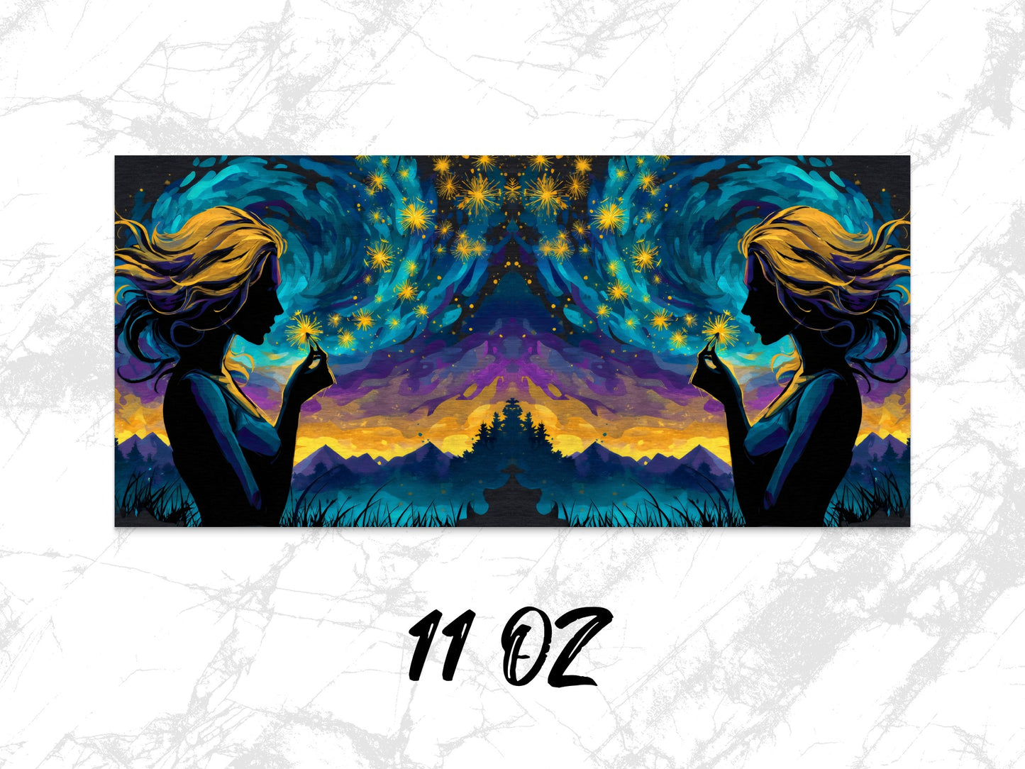 The Silhouette In Starry Night Watercolor Digital Mug Wraps 11oz & 15oz is a beautiful design that will look great on any mug. Perfect present idea for her gift.