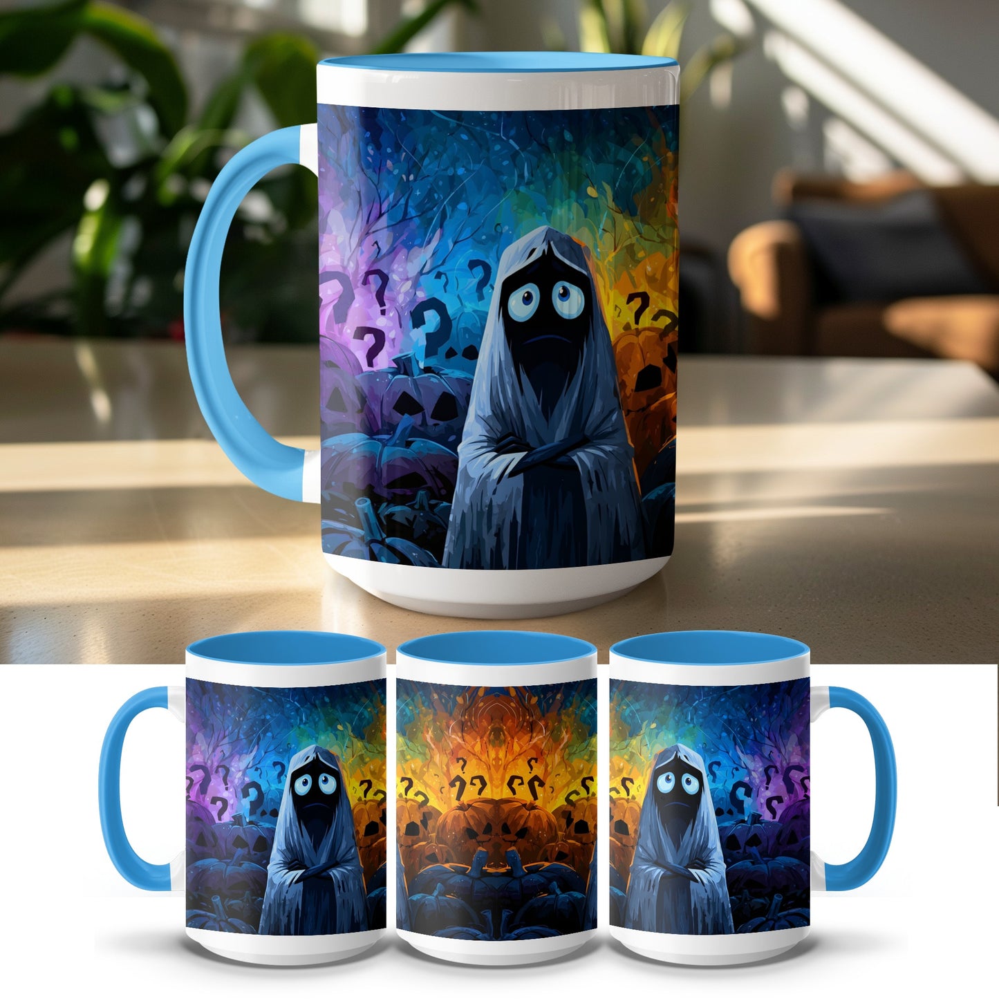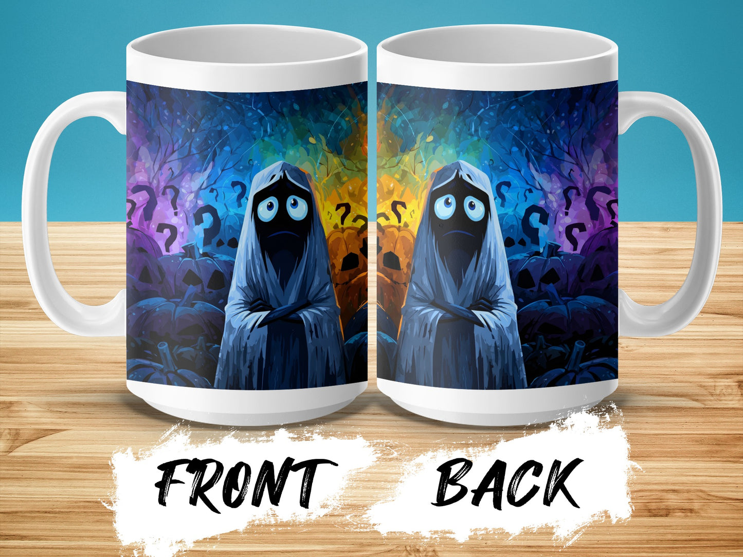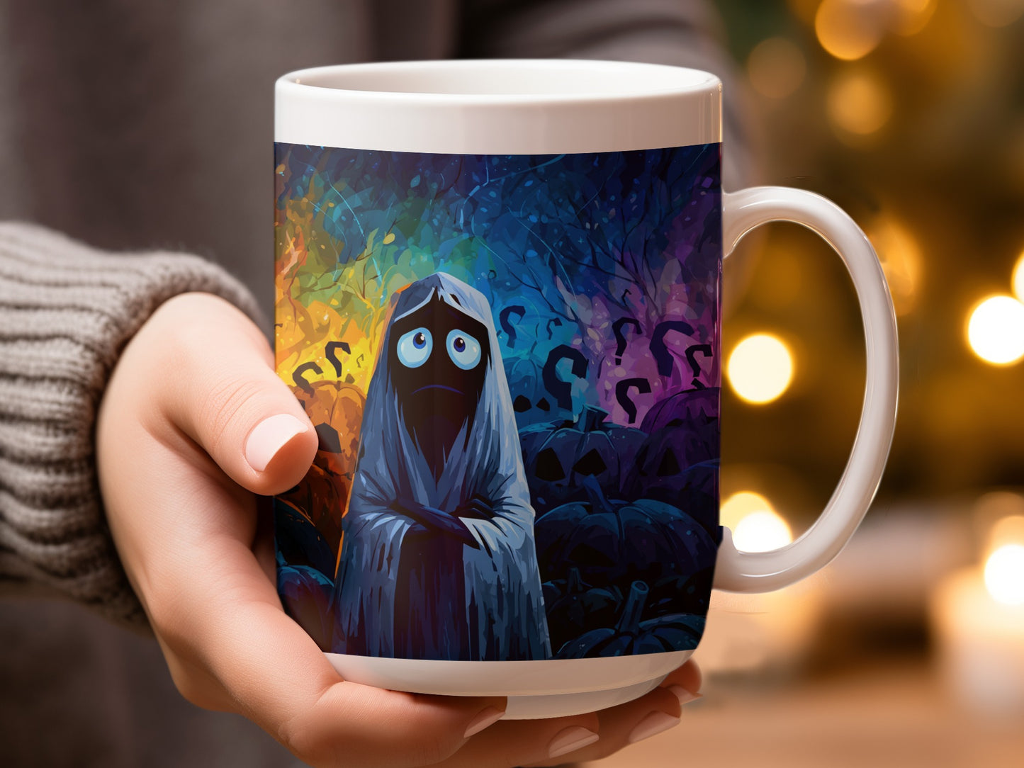 Halloween Ghosts Pumpkins Question Marks Pattern Design Mug
