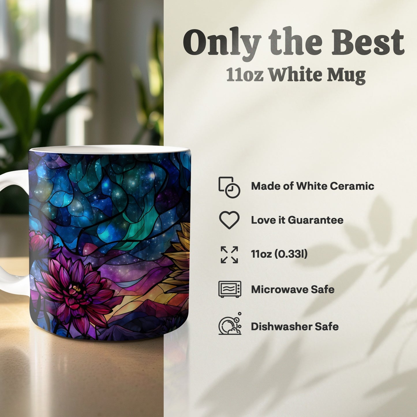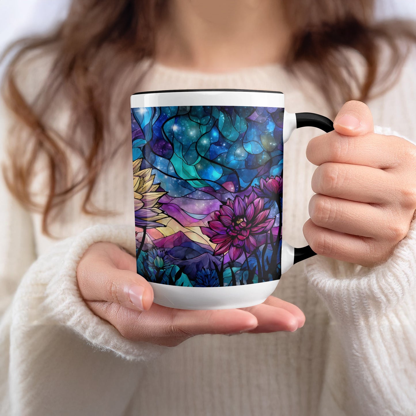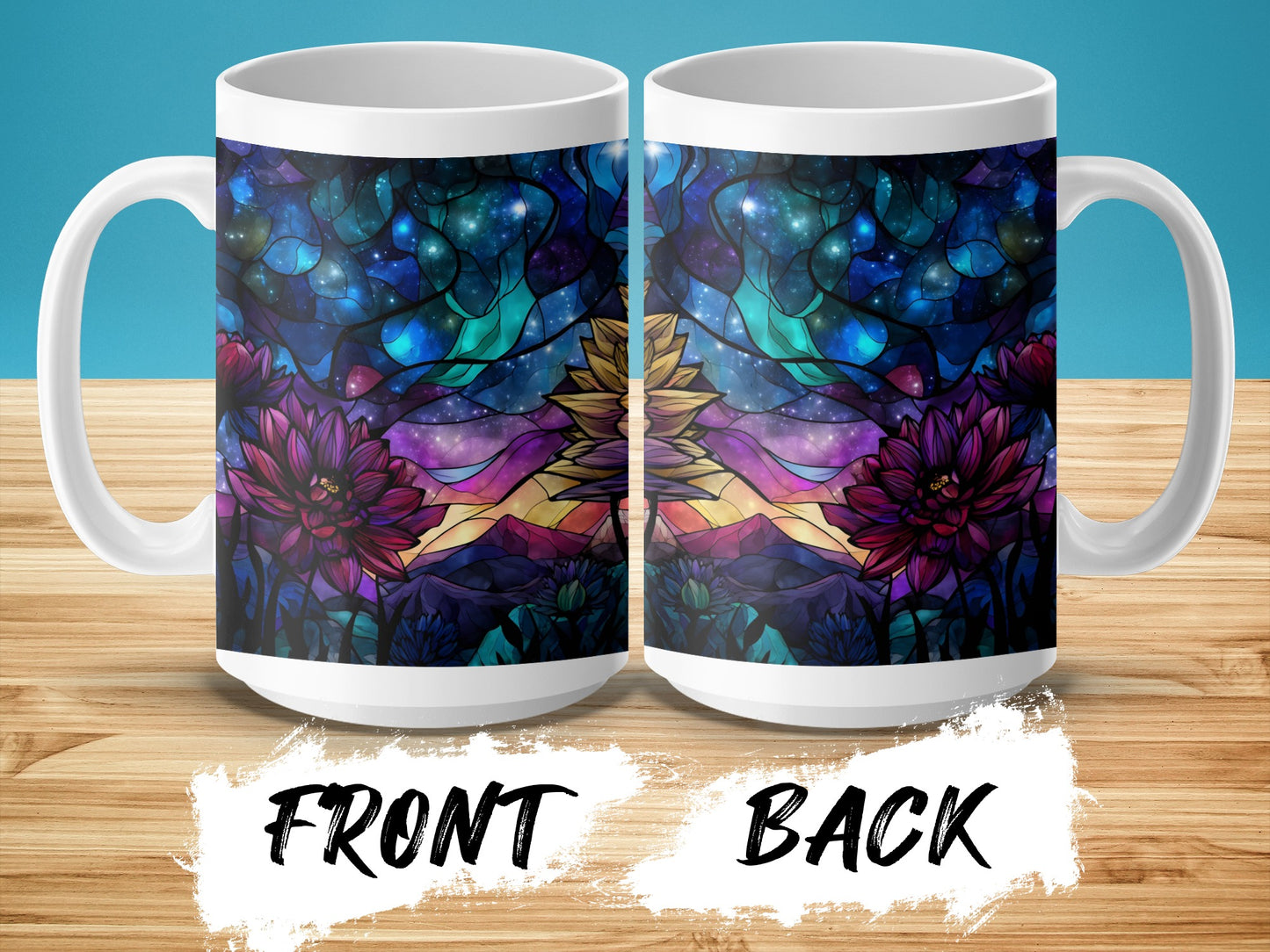 Dive into a world of beauty with our stained glass floral cosmic landscape digital design. Perfect for adding a touch of magic and color to any project or space now.