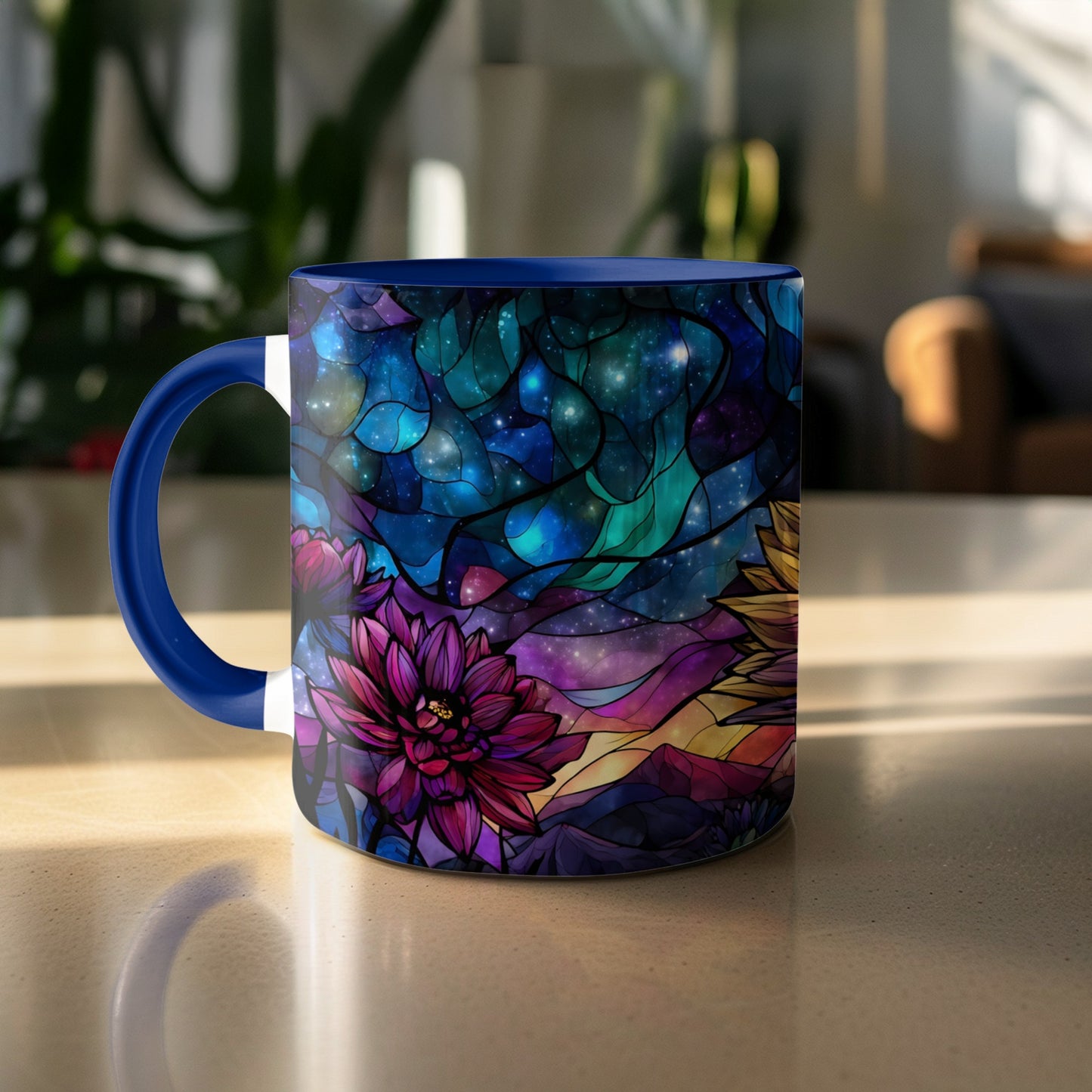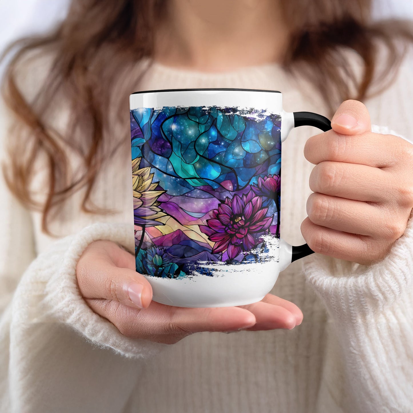 Stained Glass Galaxy Flower Landscape Front Back Mug
