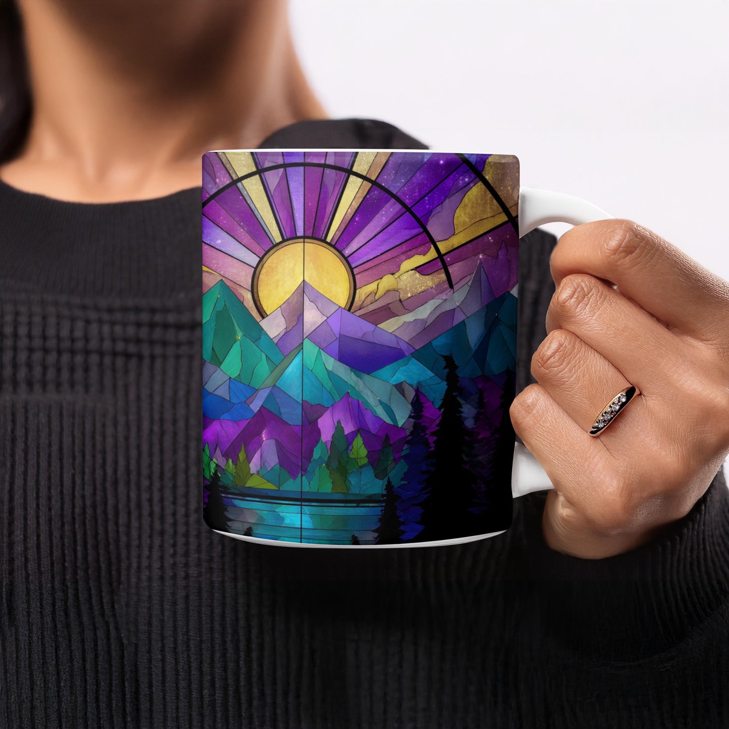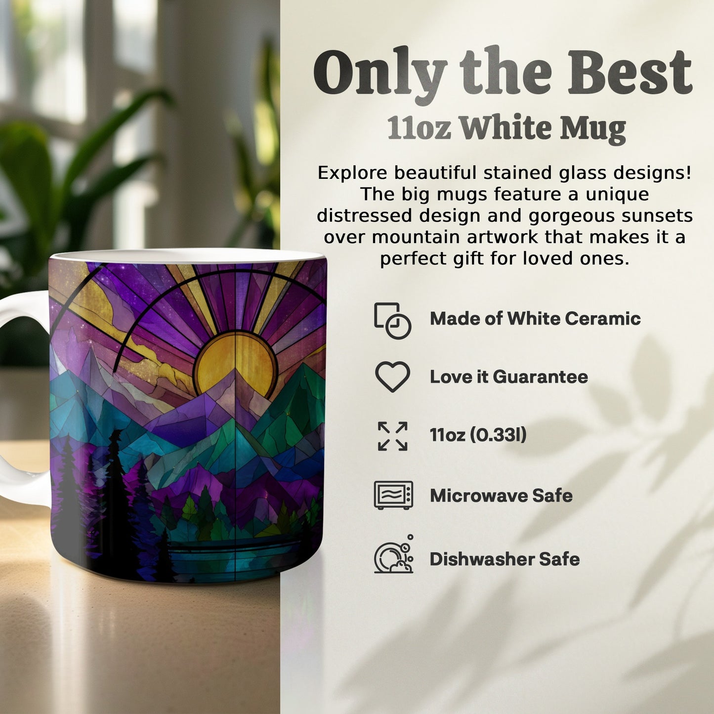 Mountain at Sunset Stained Glass Graphic Big Mugs Mug