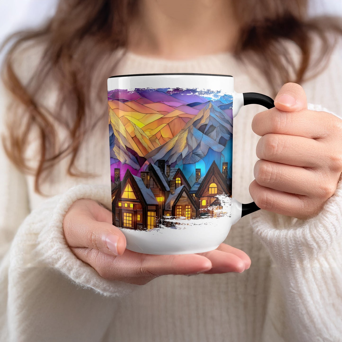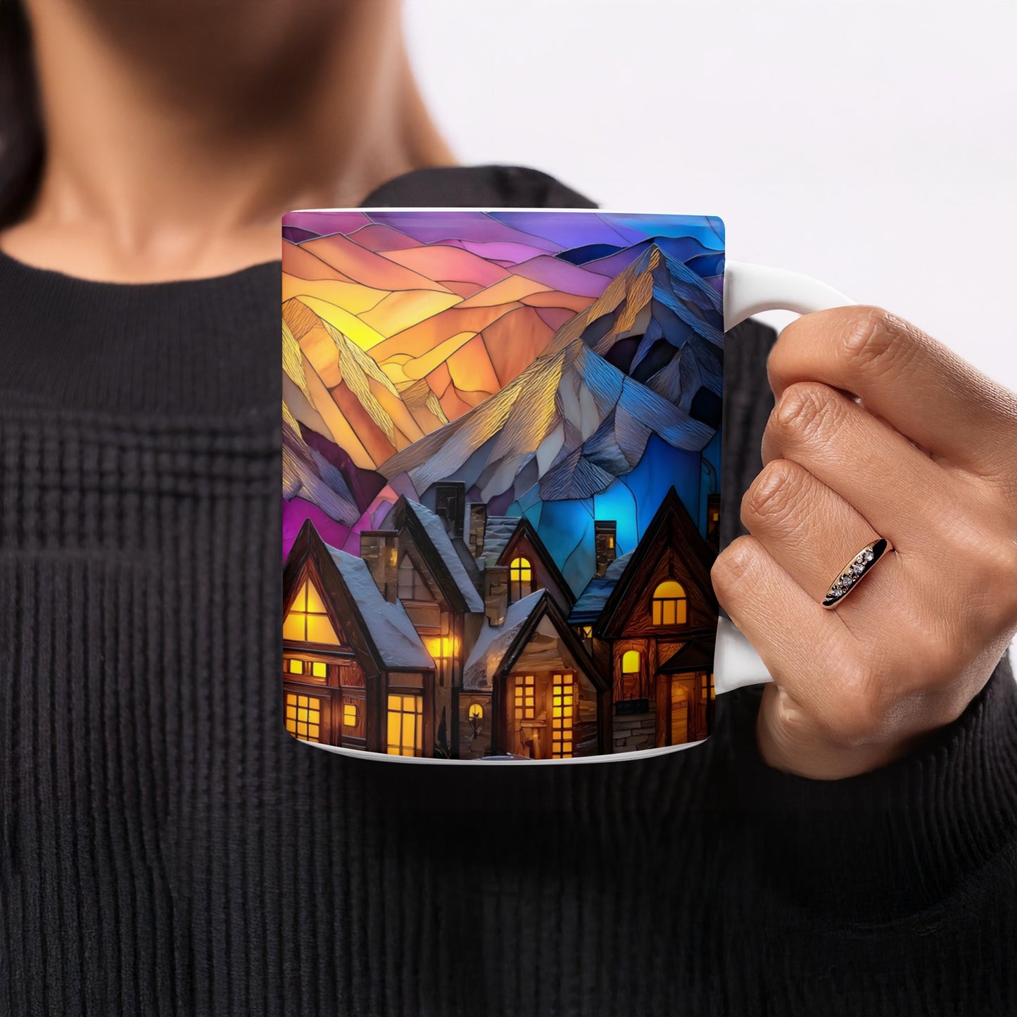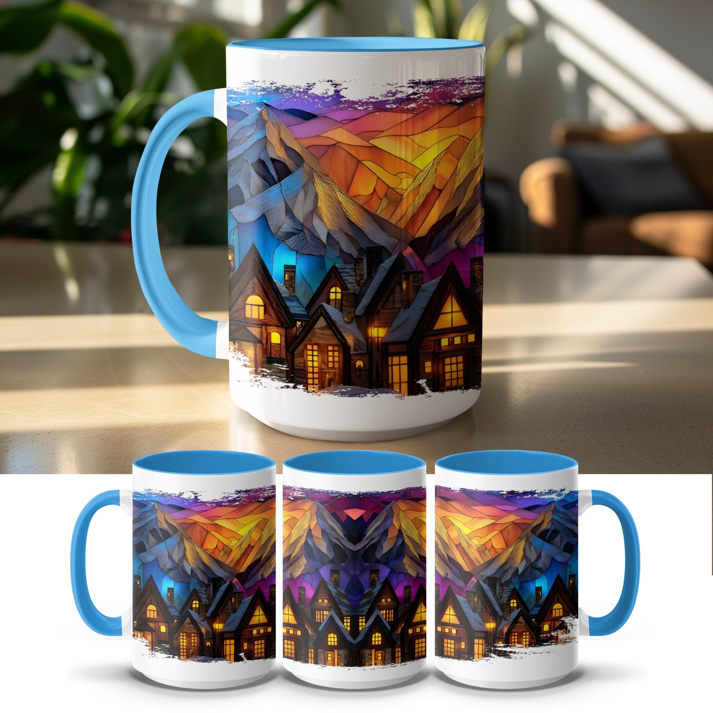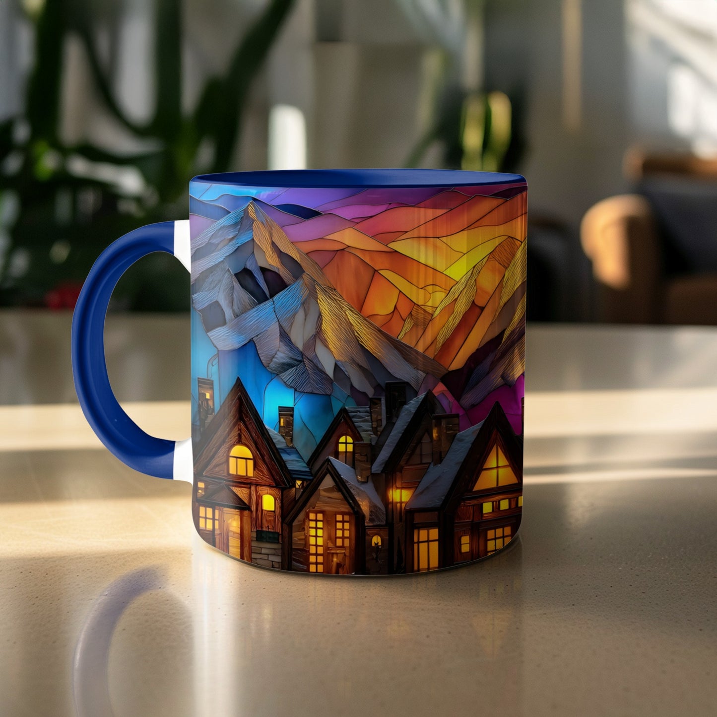 Stained Glass Design Mountain Landscape Scene Novelty Mug