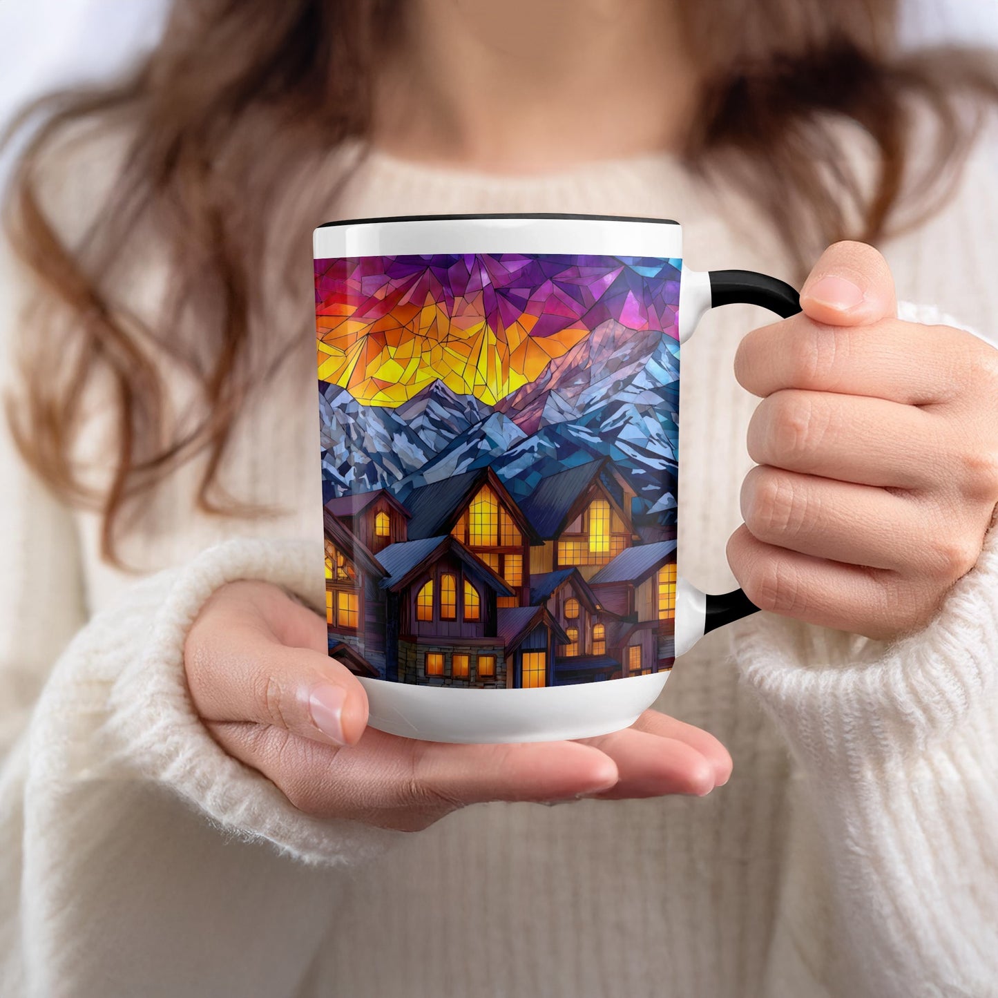 Stained Glass Themed Mountain Town Sunset Glow Digital