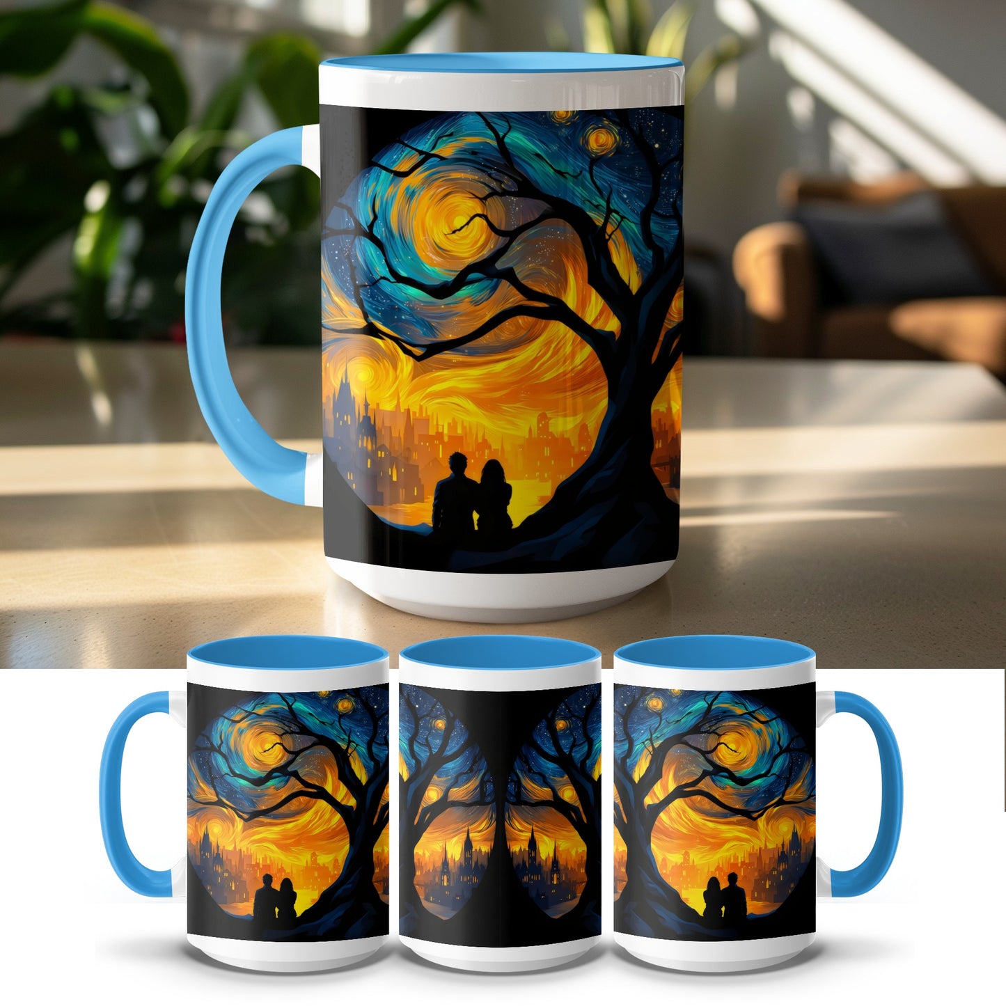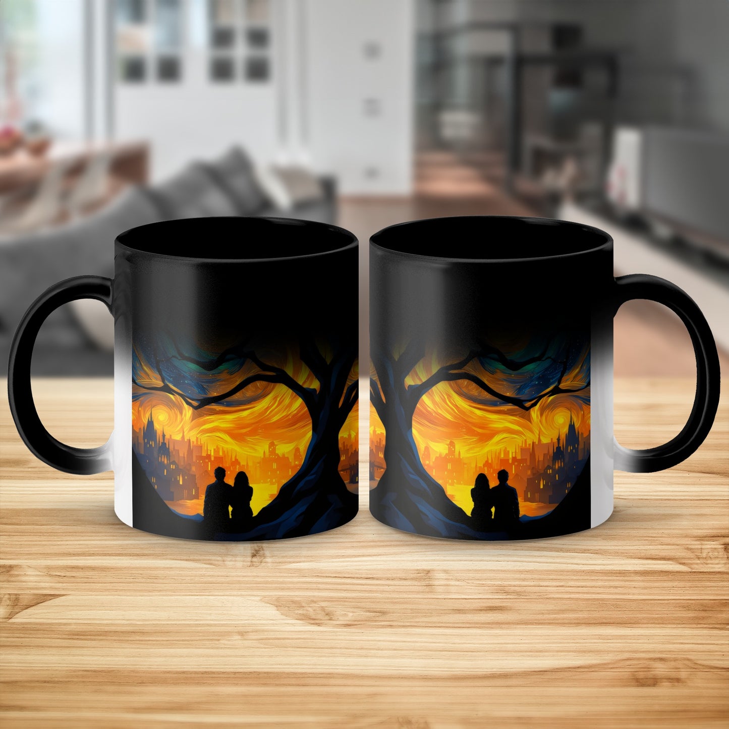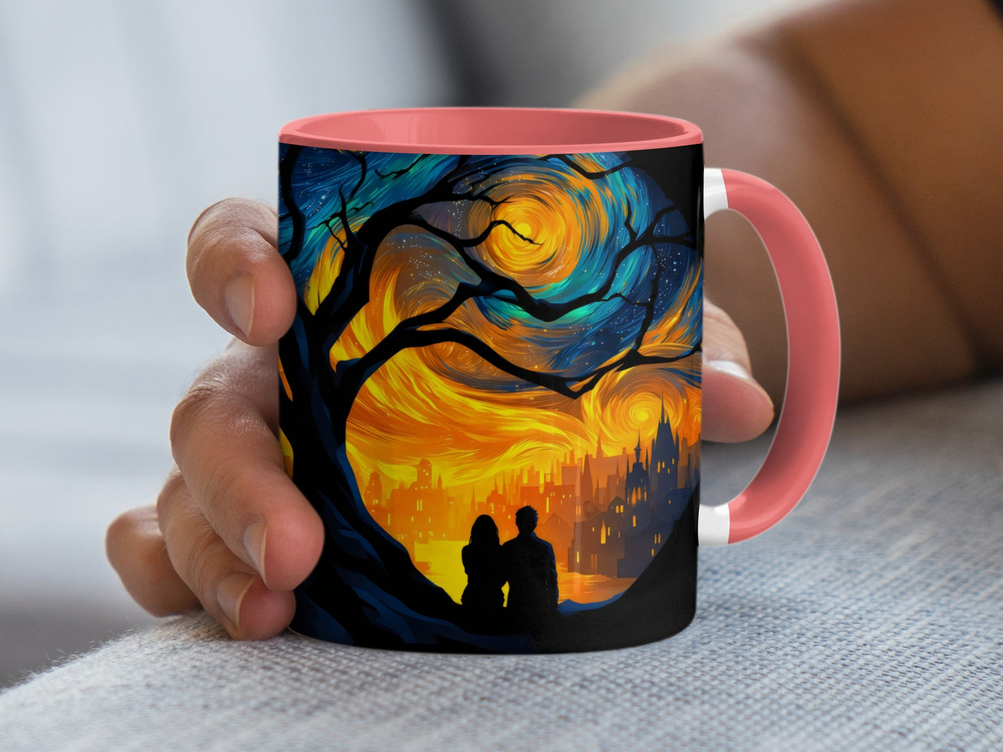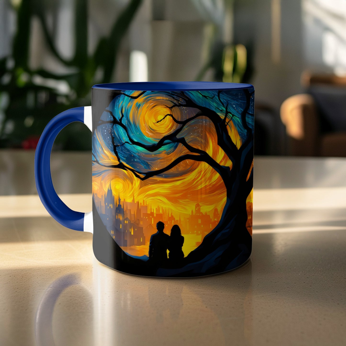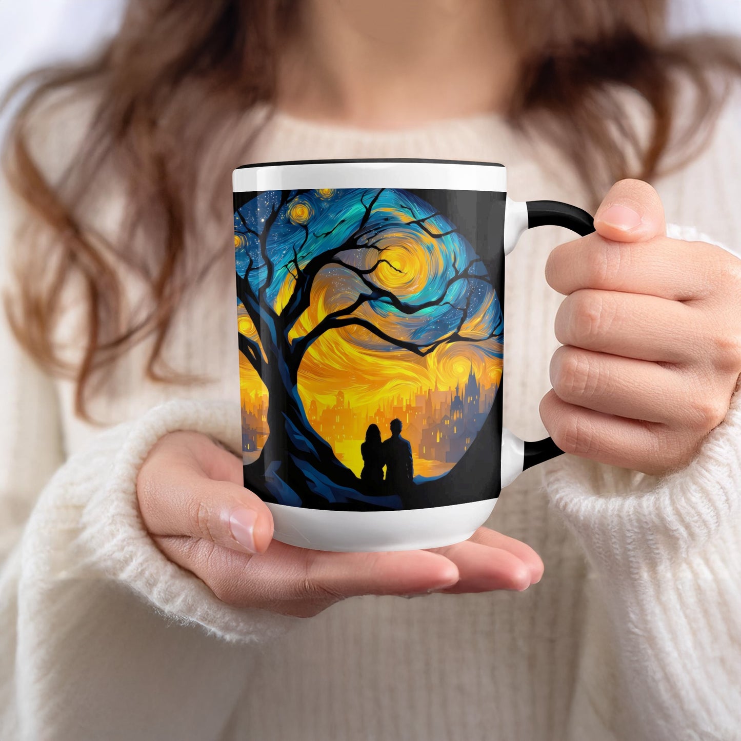 Starry Night Scene with Loving Couple Art Inspired Mug