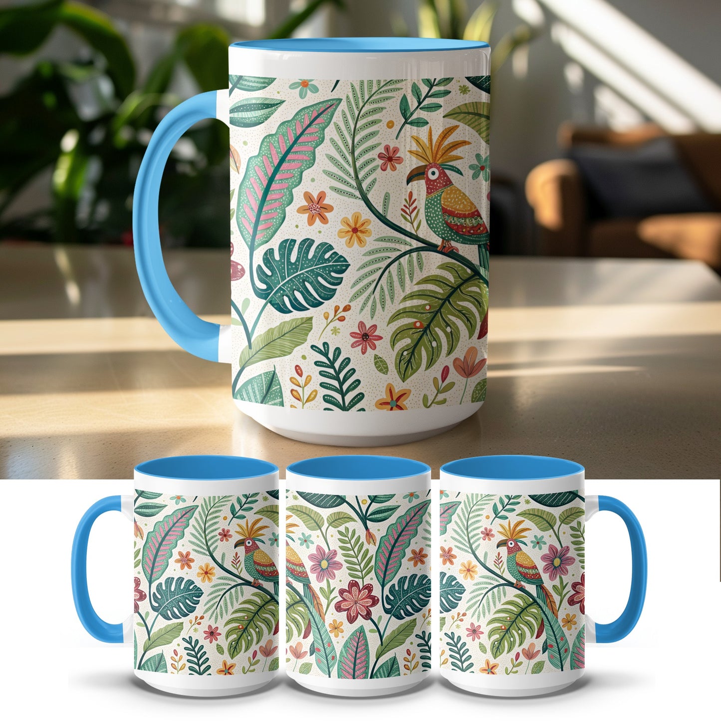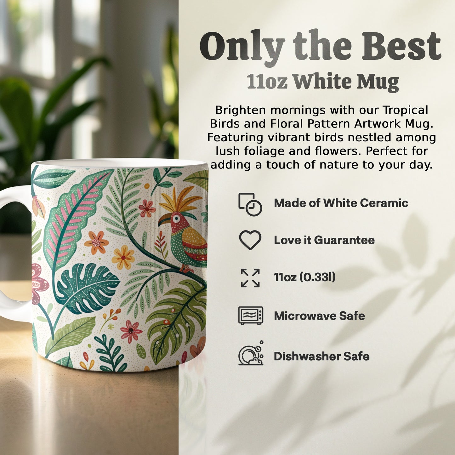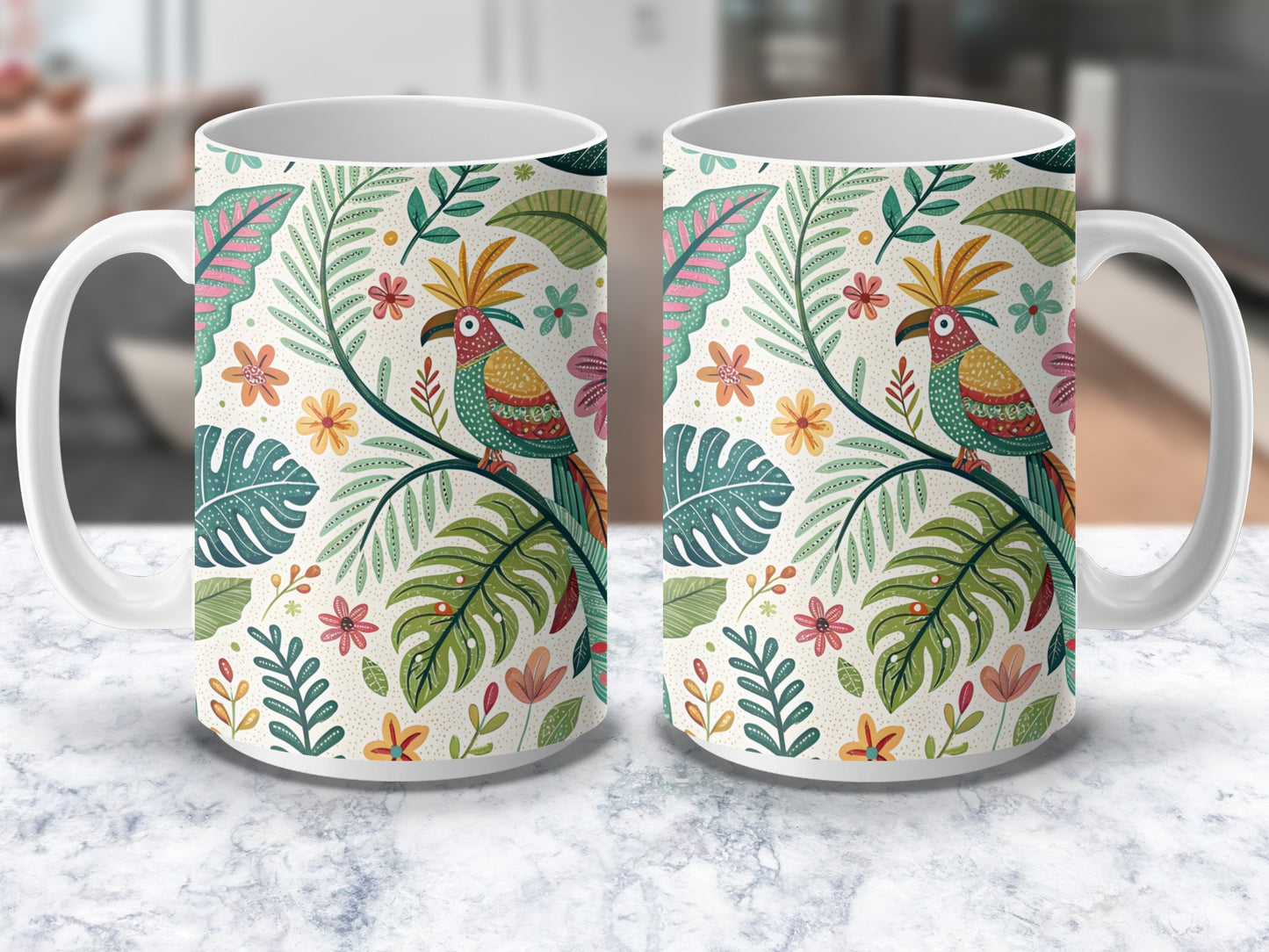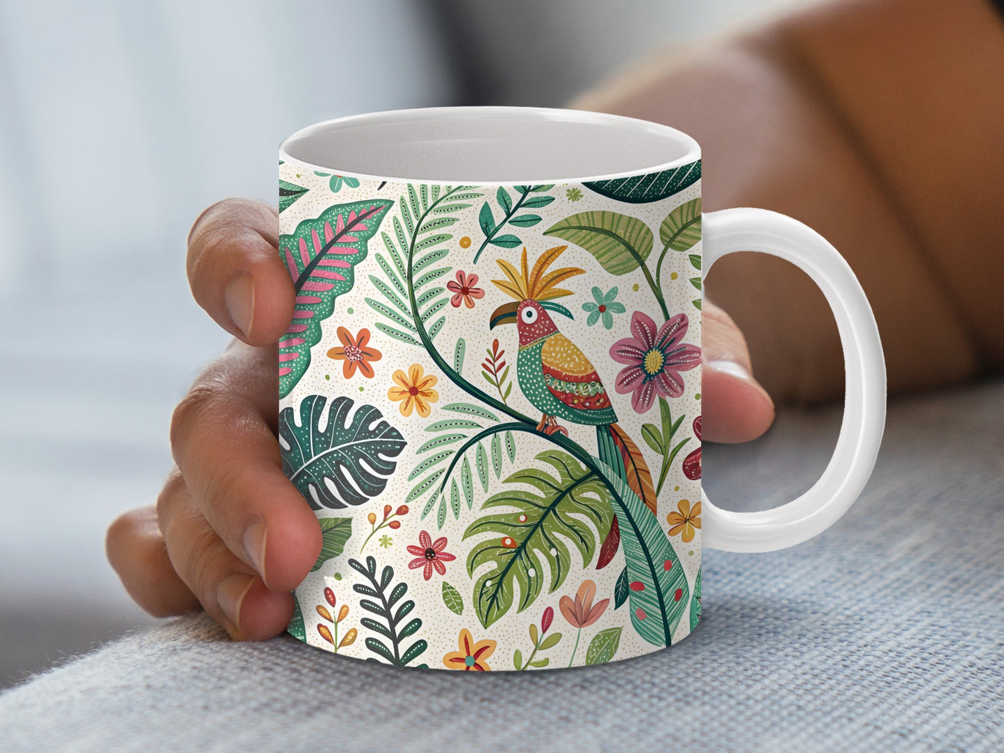 Tropical Paradise Otomi Style Birds Flowers Leaves Digital