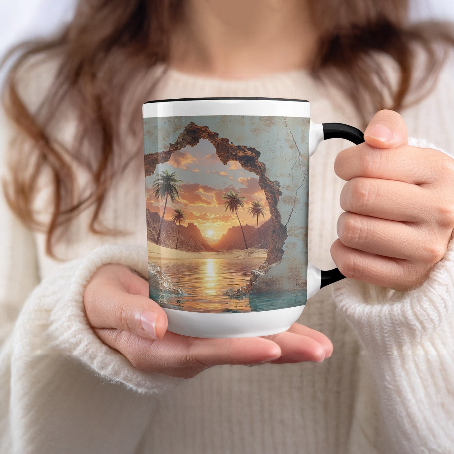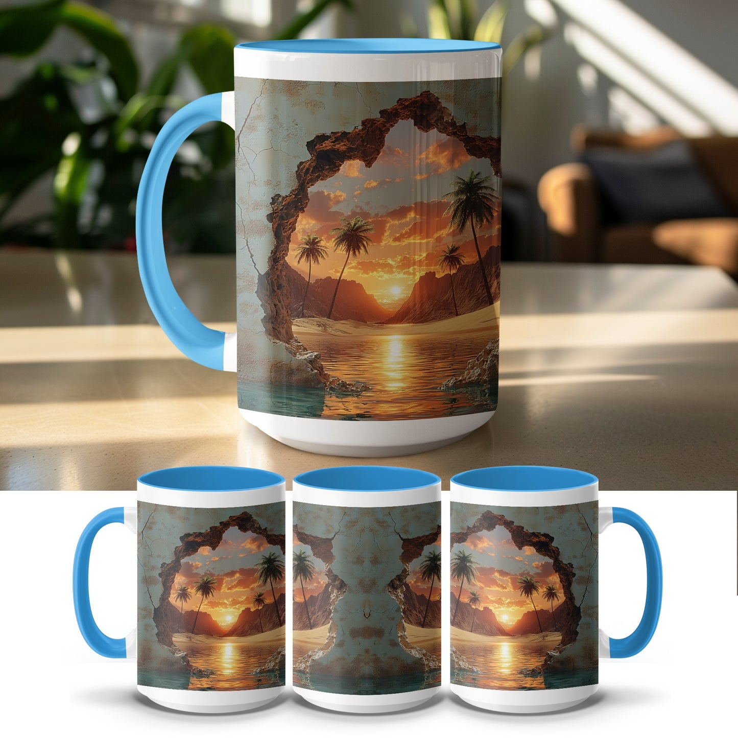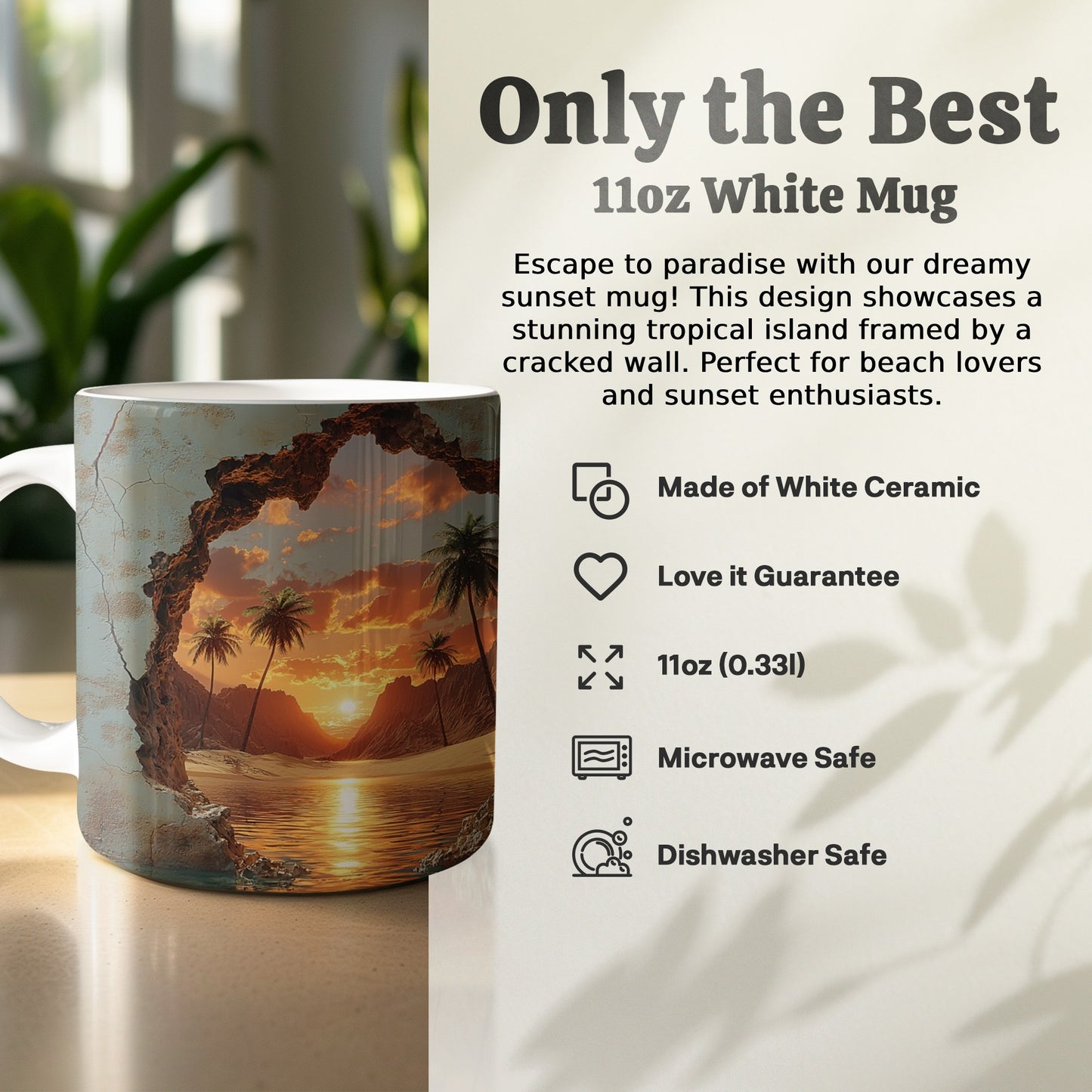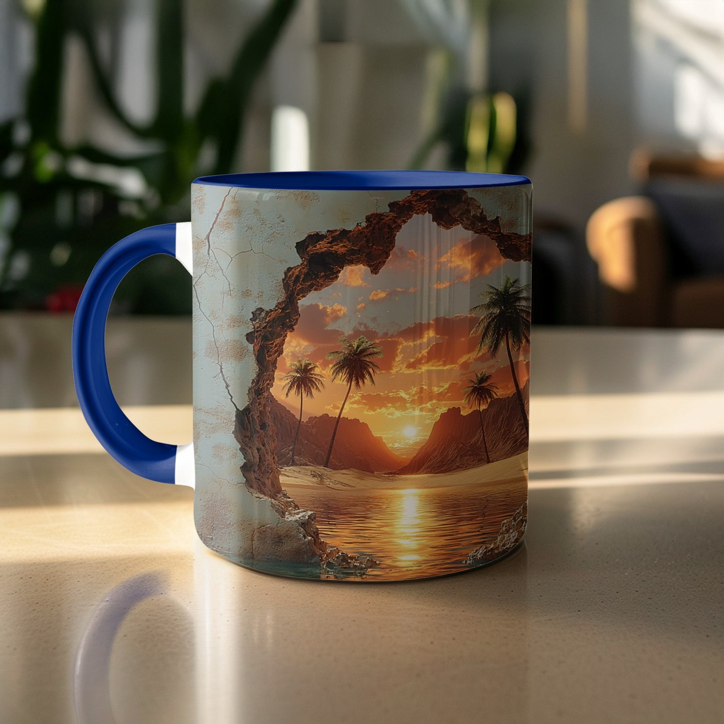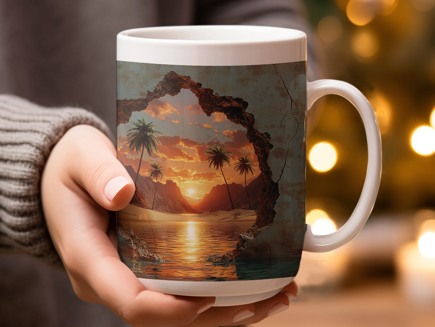 Tropical Sunset Mug: Palm Trees, Beach View, Coastal Design