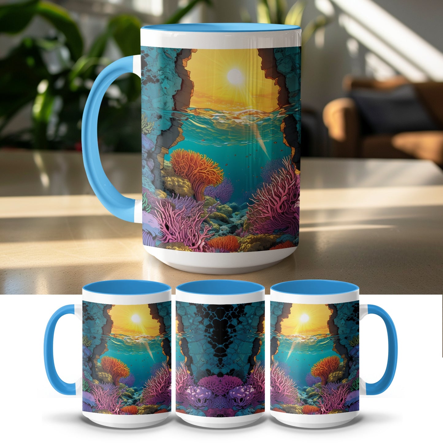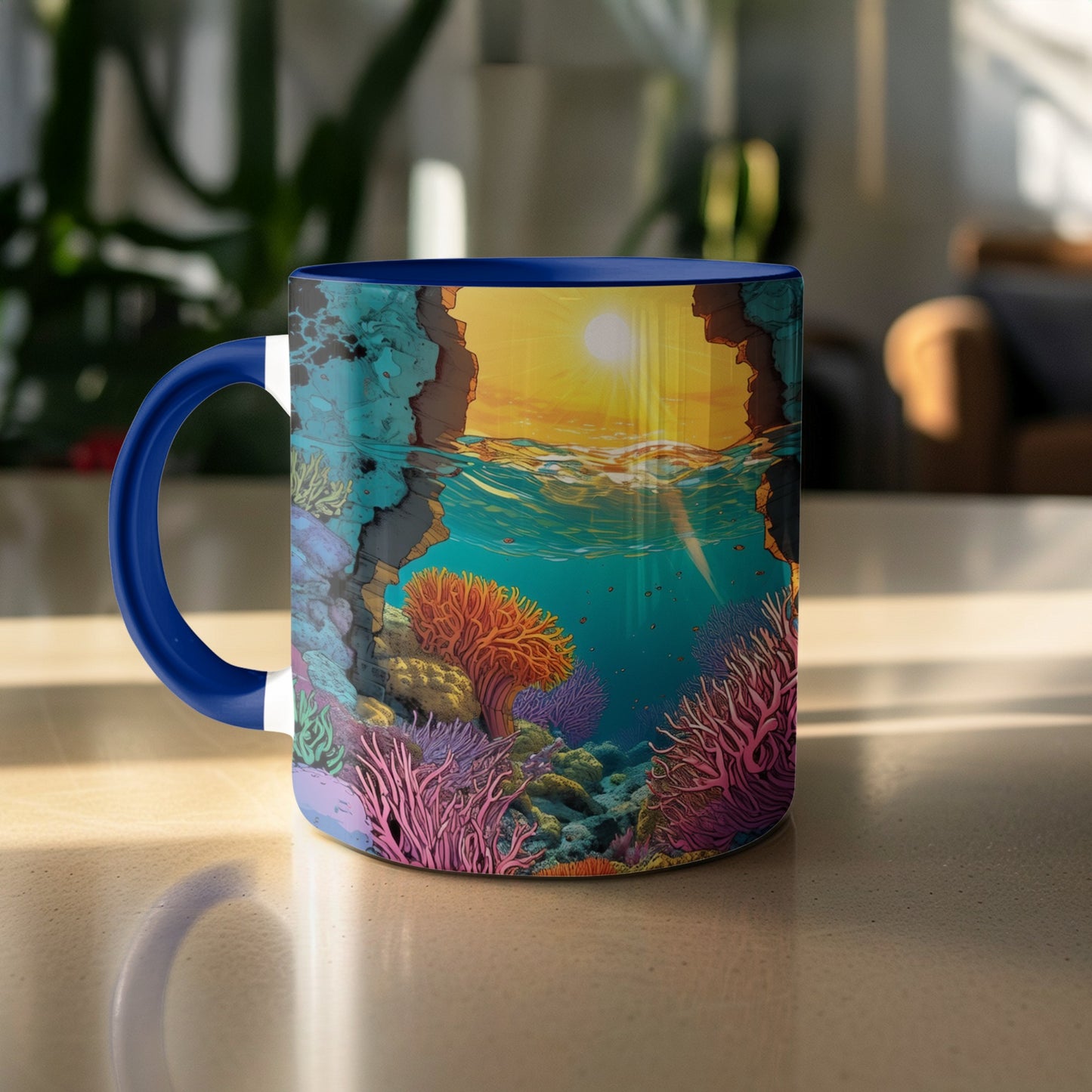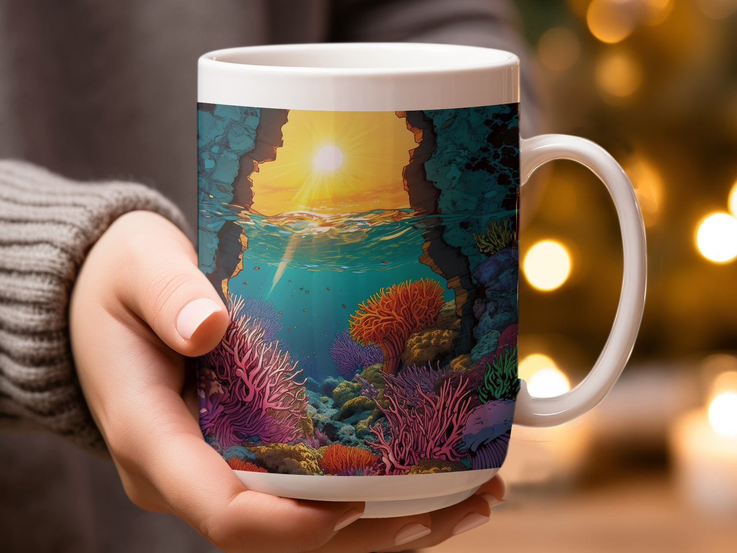 Underwater World With Coral And Sunlight Above The Sea Mug