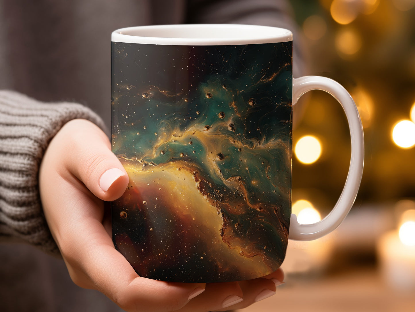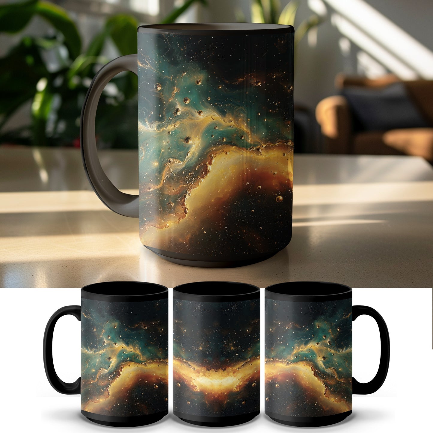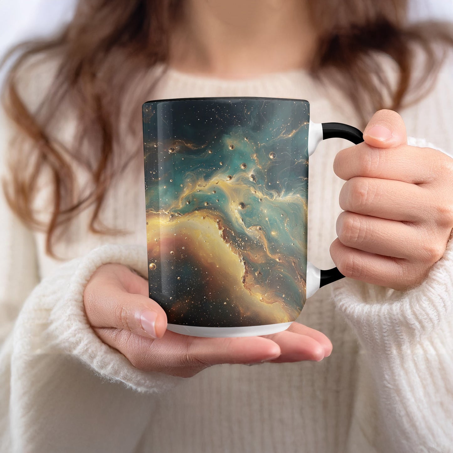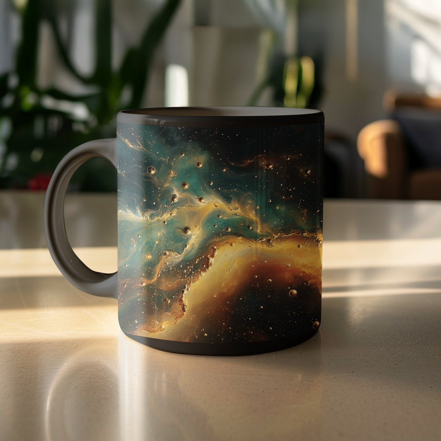 Universe In Abstract Golden Blue Tones Artwork Design Mug