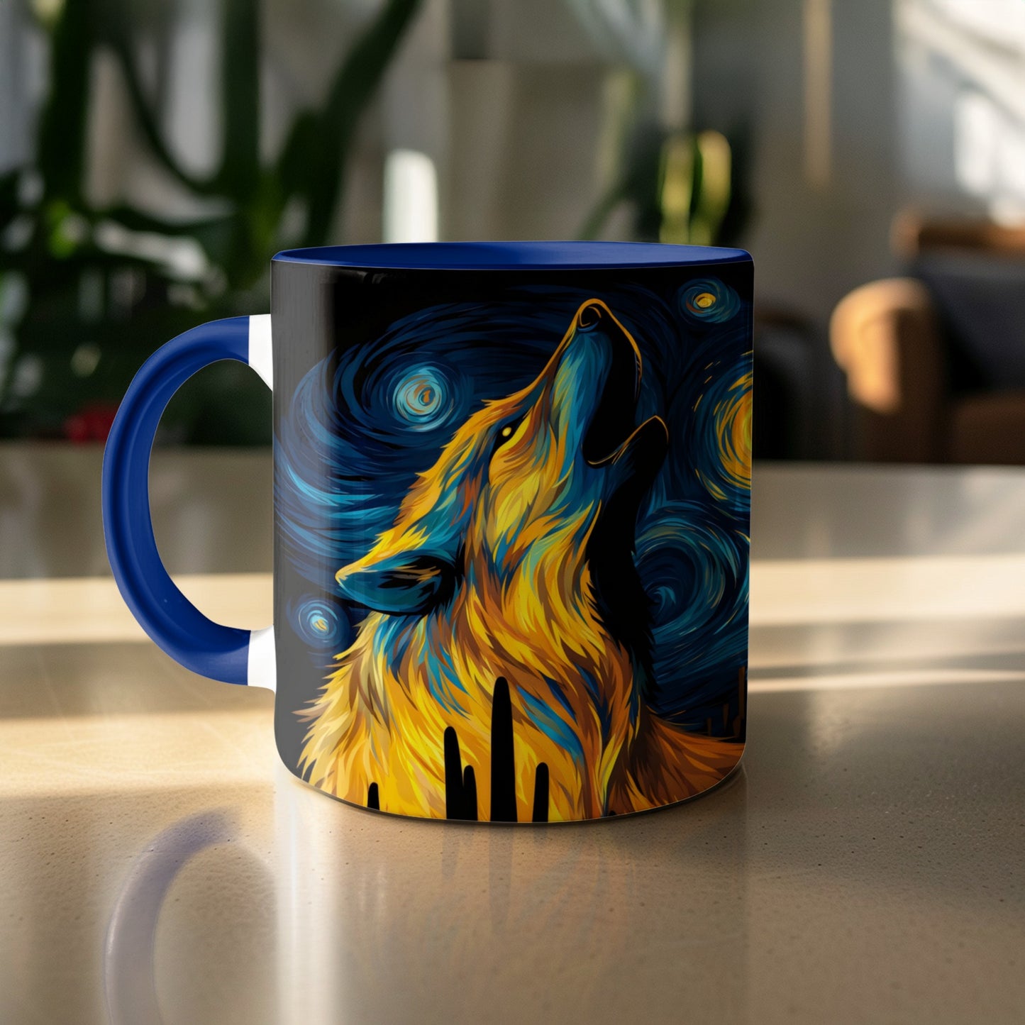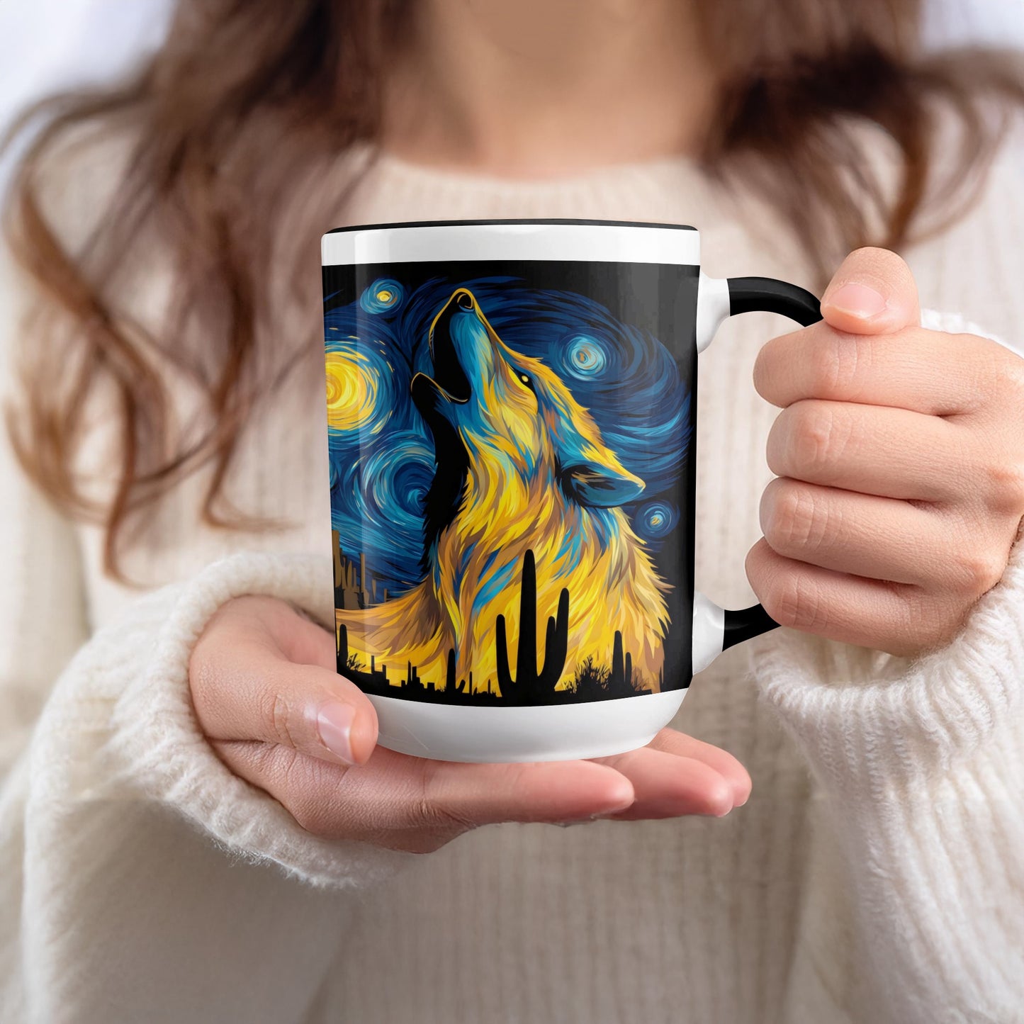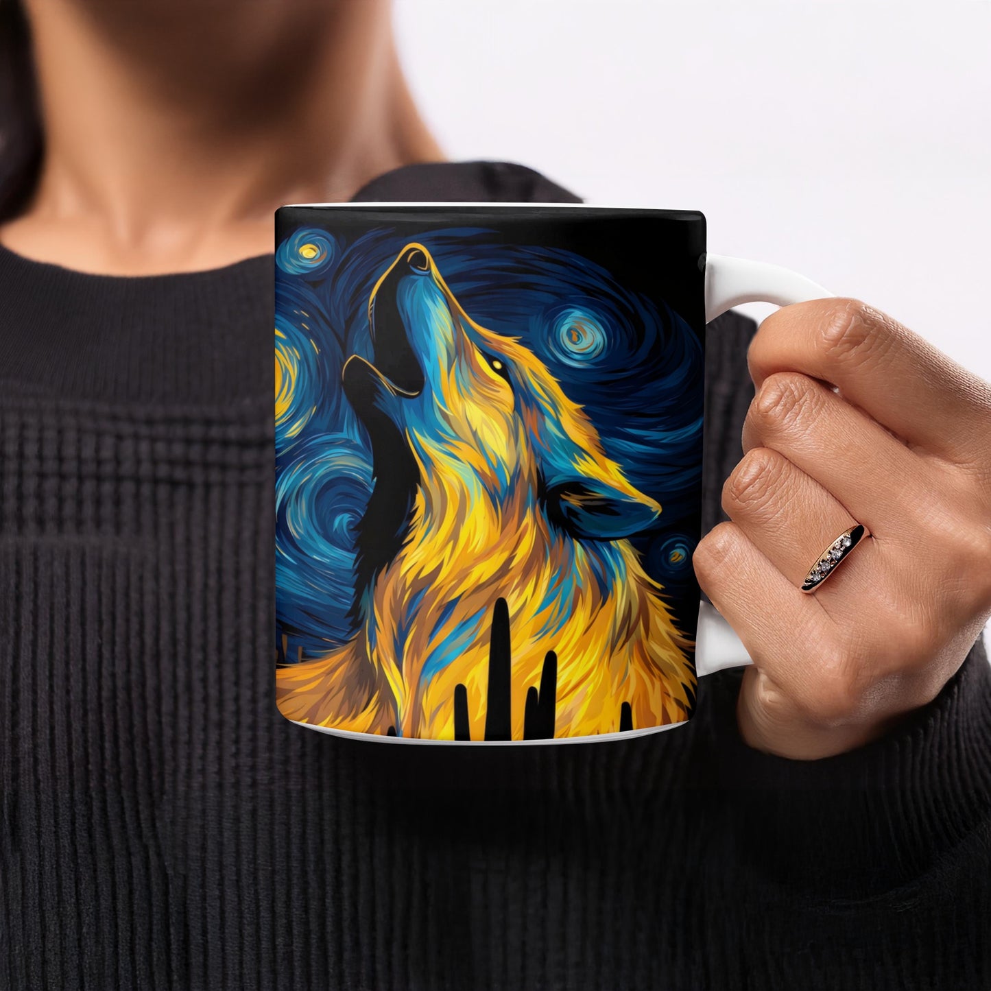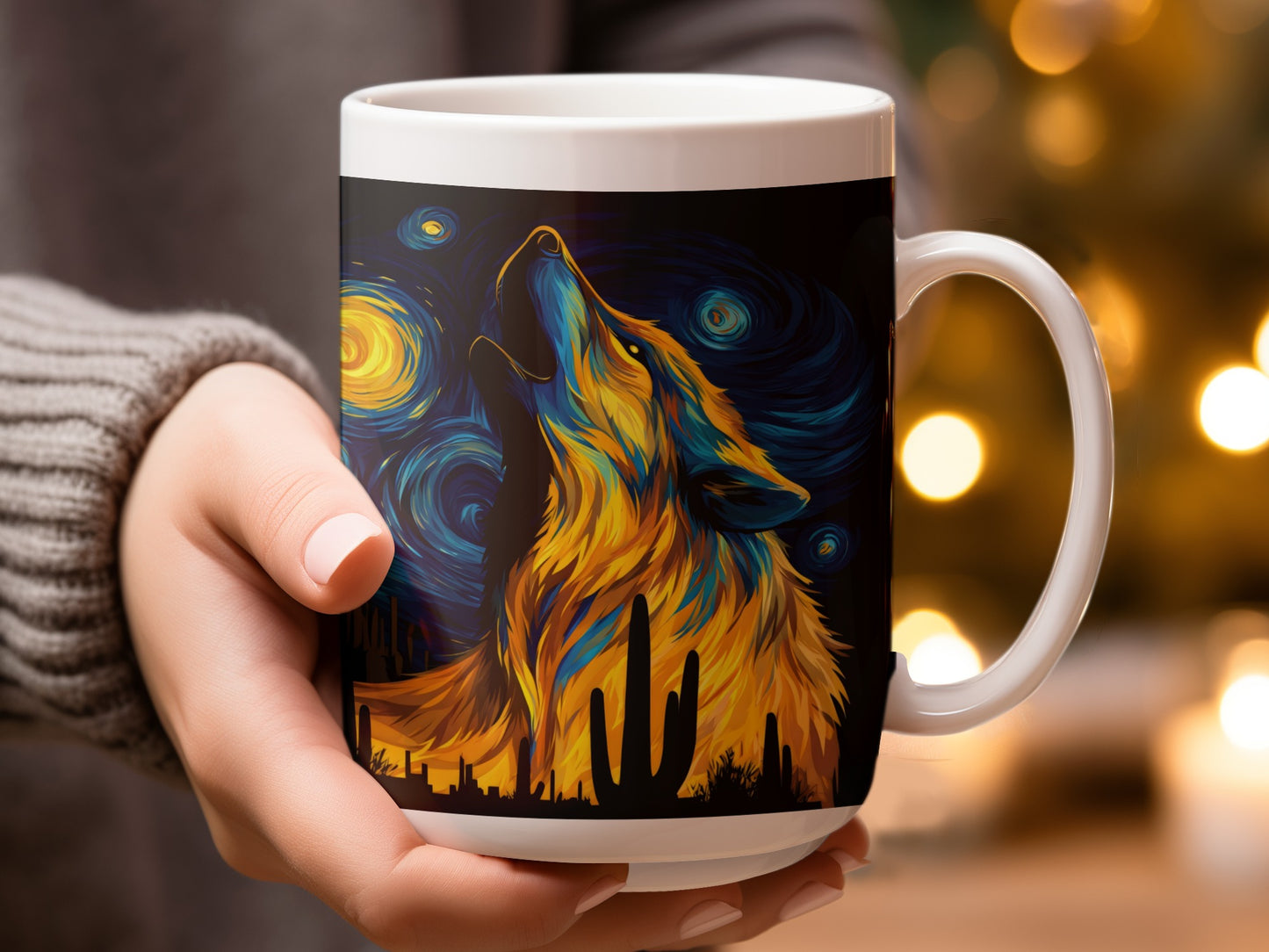 Van Gogh Style Howling Wolf in Desert Landscape Mug