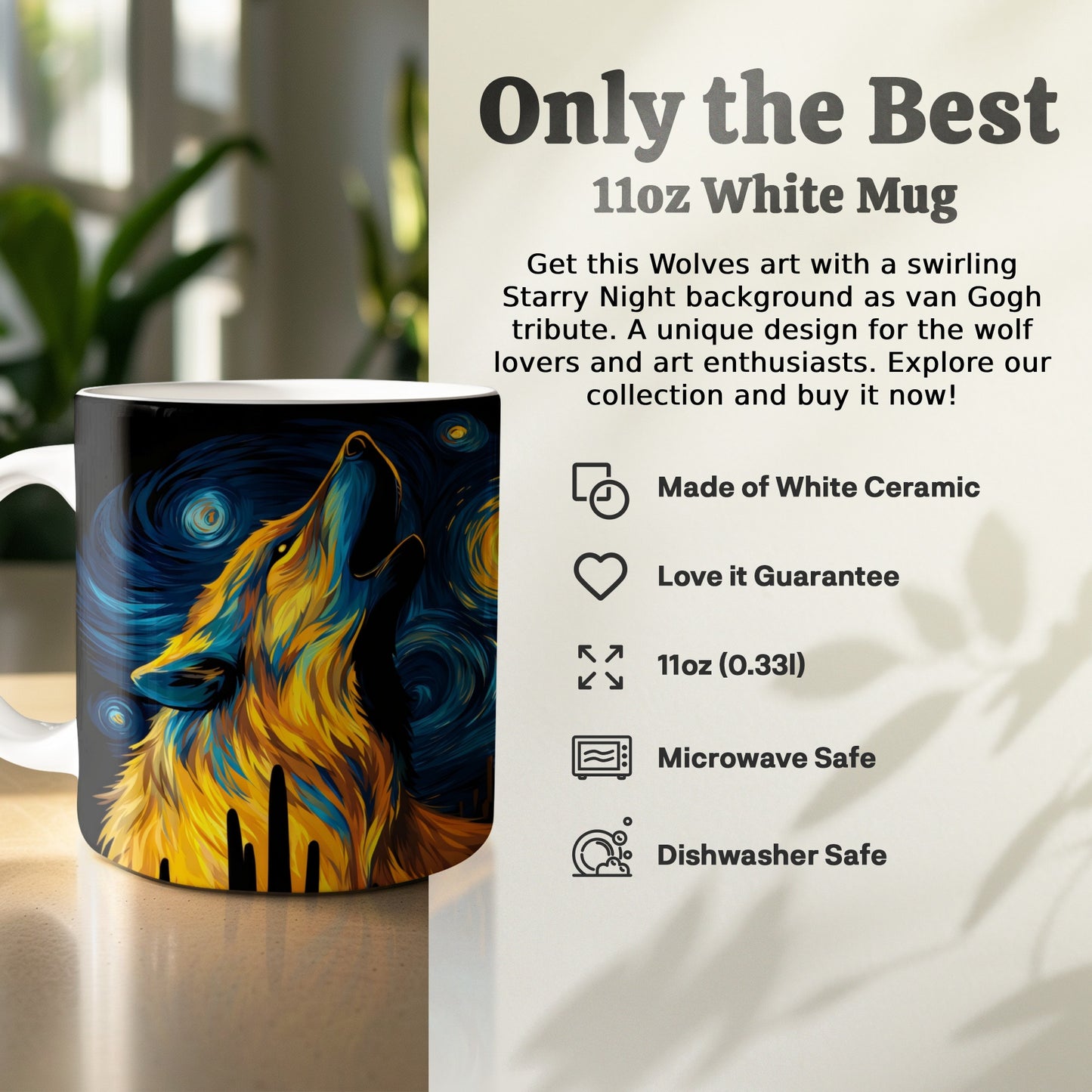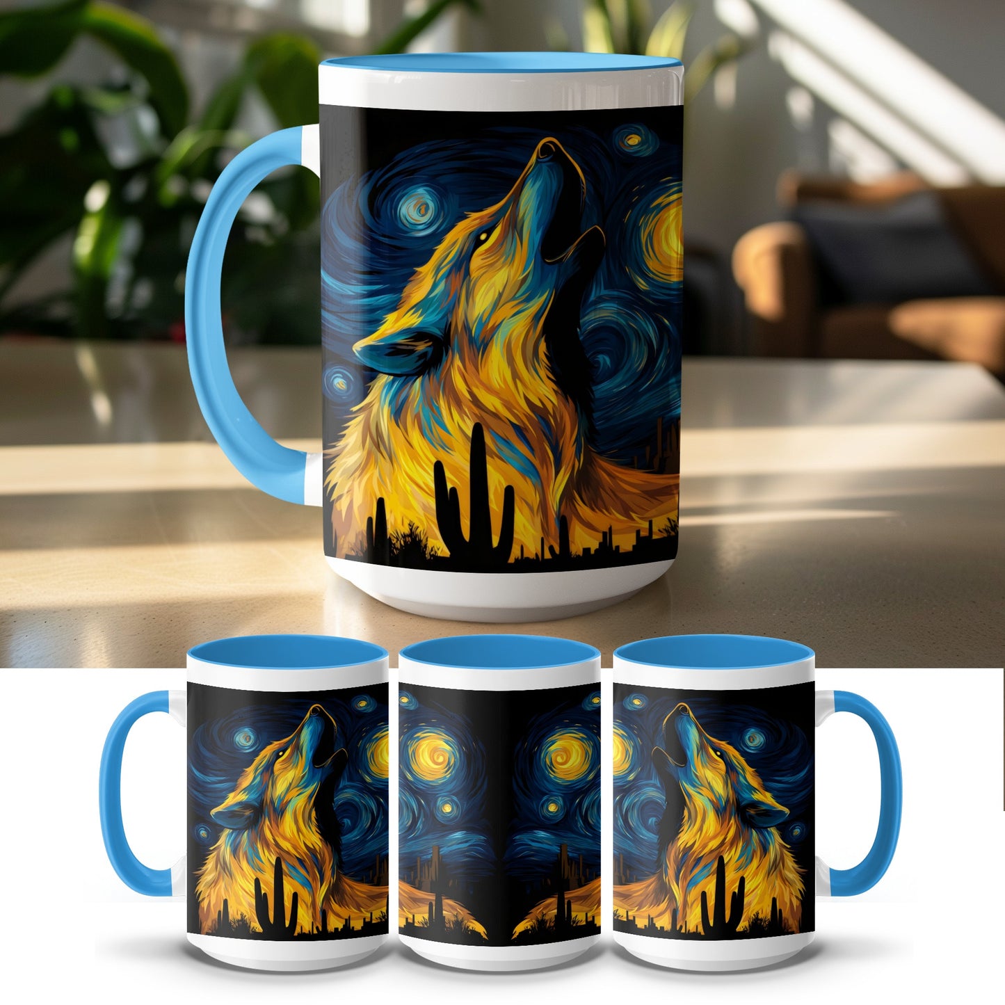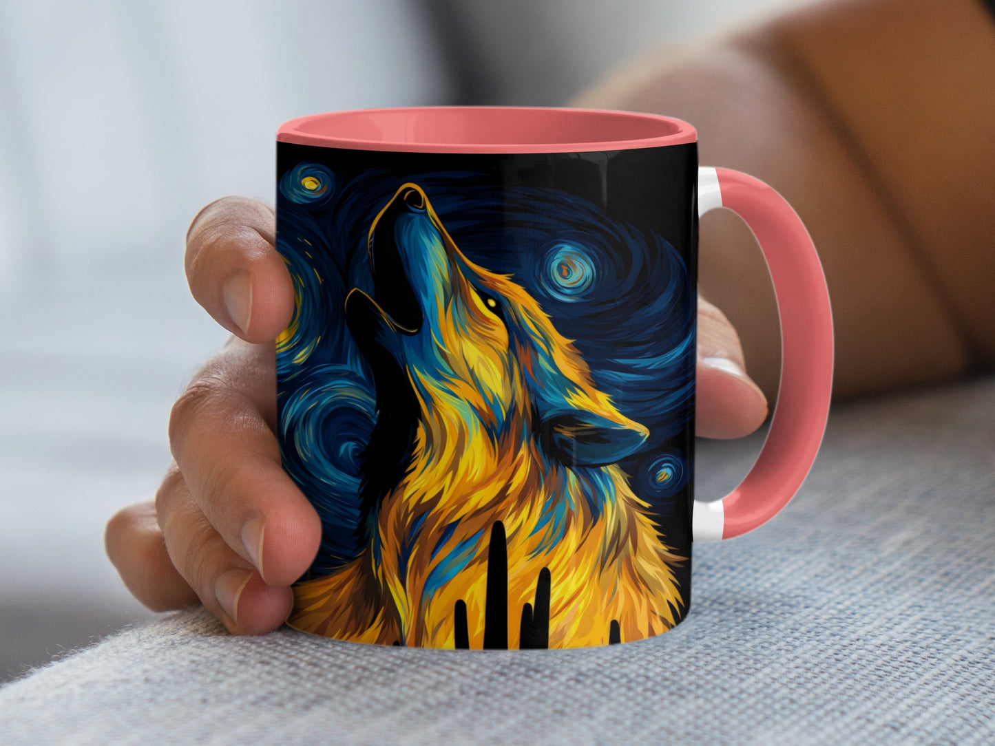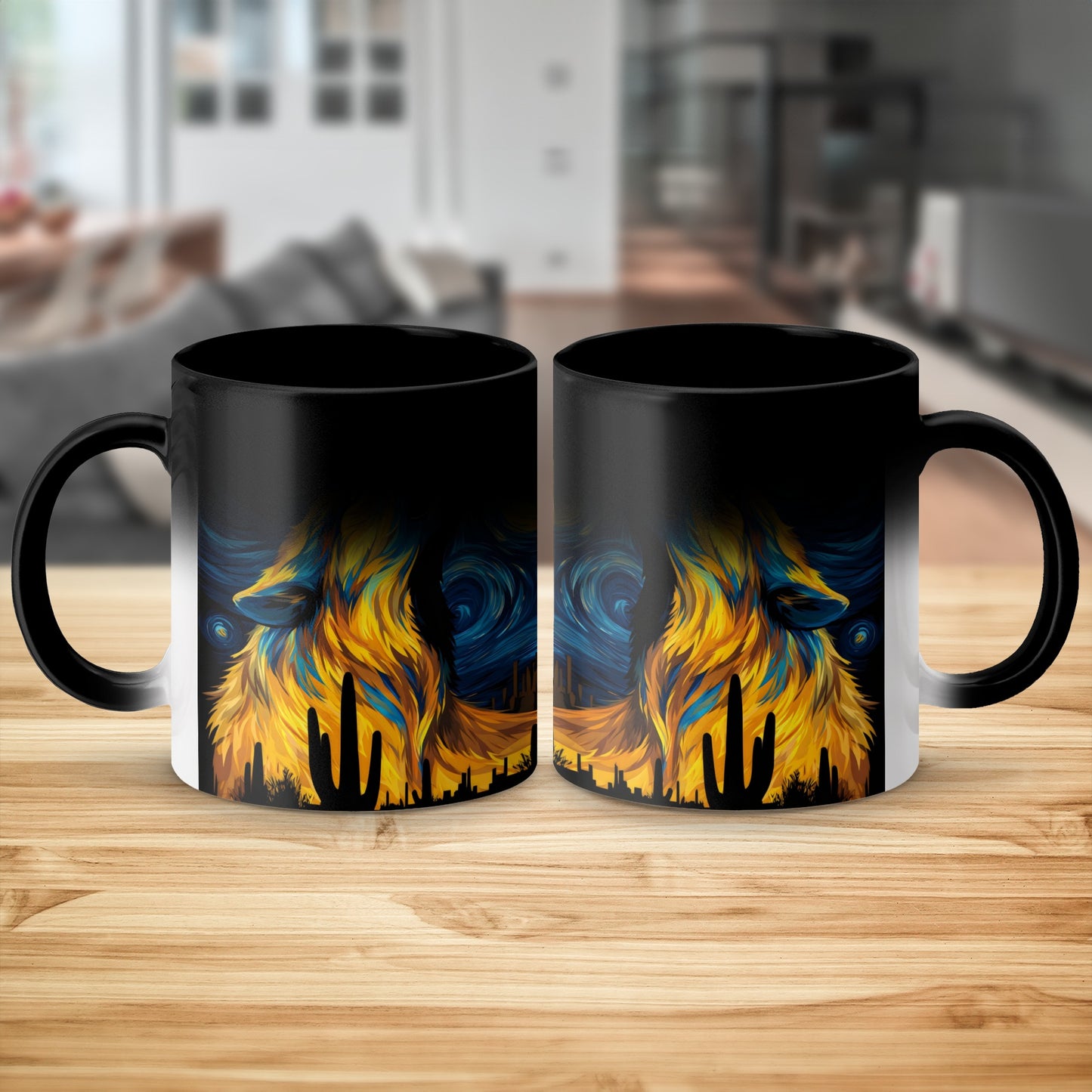 Van Gogh Style Howling Wolf in Desert Landscape Mug