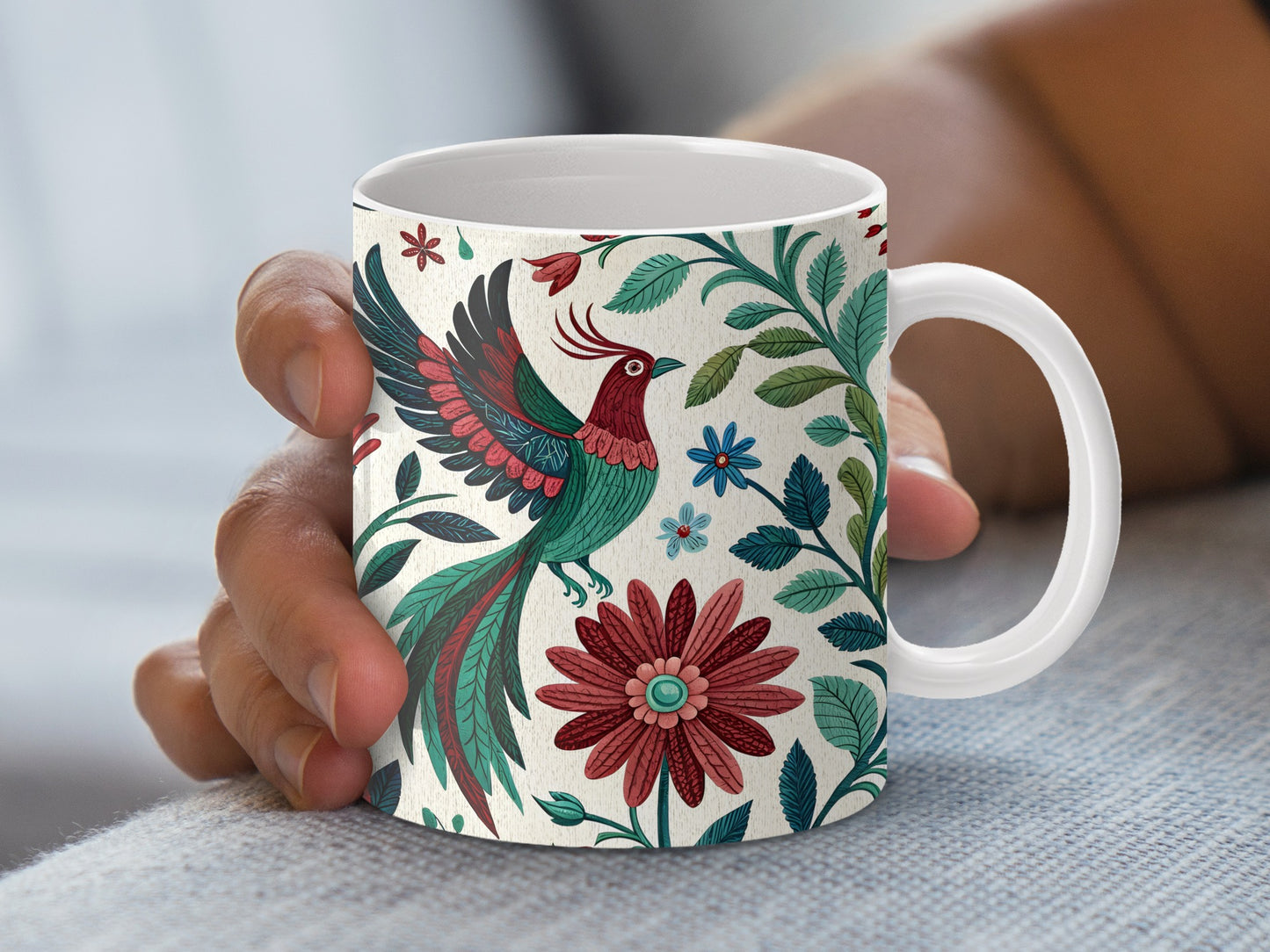 A vibrant otomi embroidery style design featuring stylized birds and flowers. Perfect for adding a touch of handcrafted beauty to any digital project. Download now!