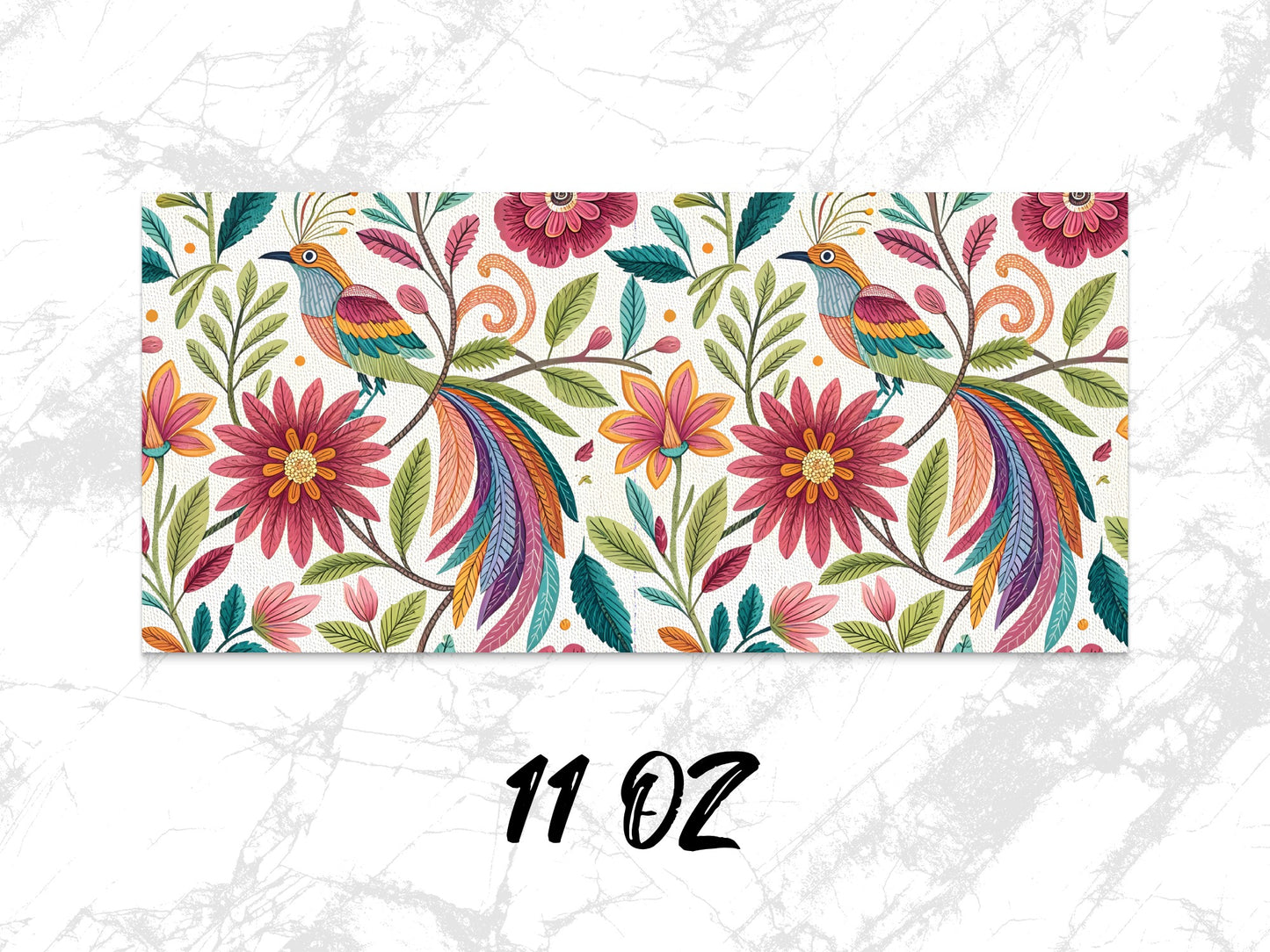 Dive into a world of vibrant beauty with this unique design featuring whimsical birds florals created with a touch of Otomi embroidery artistry. Perfect for backgrounds projects!