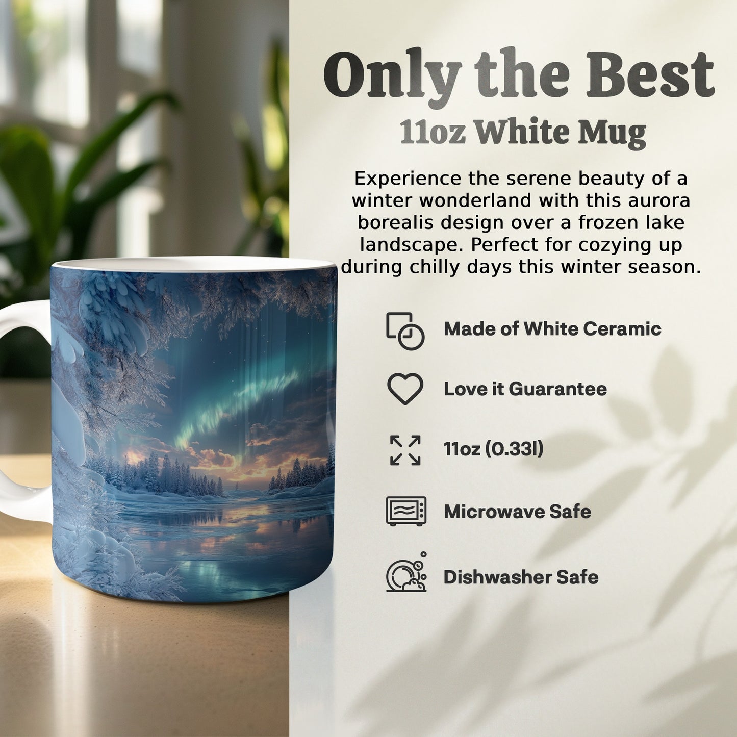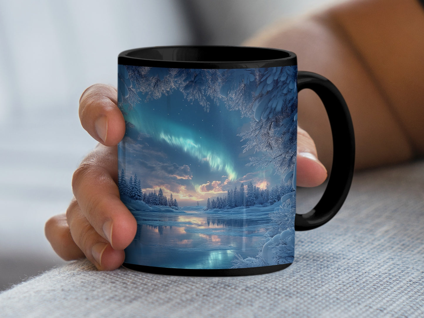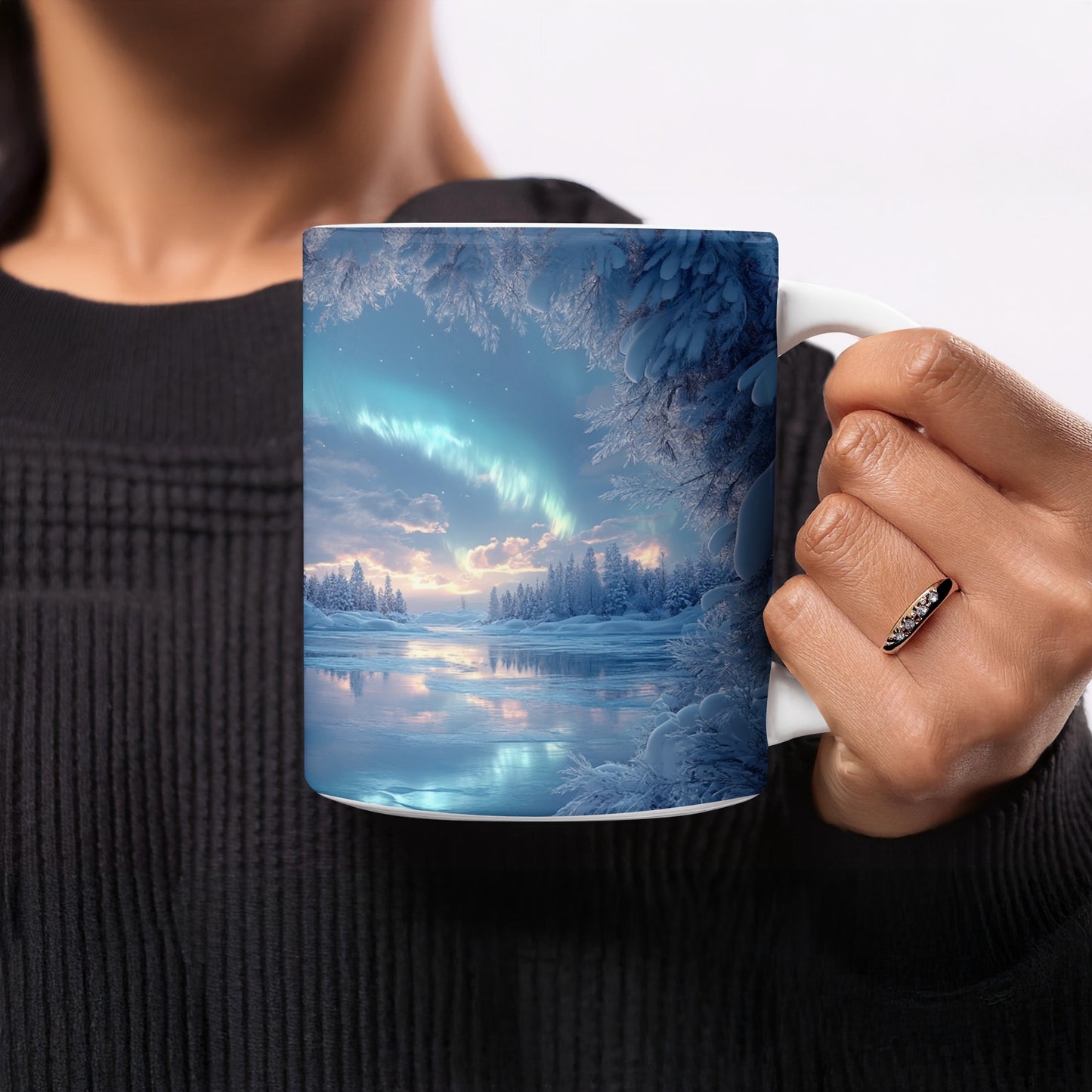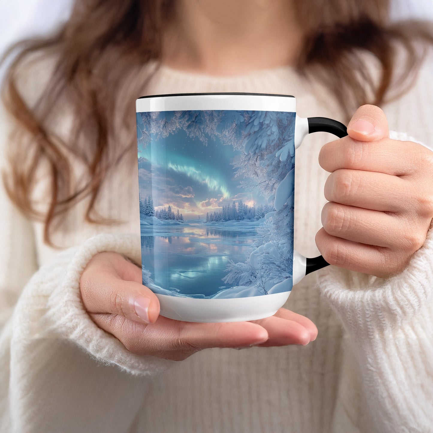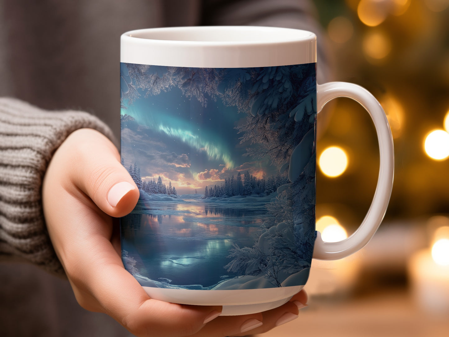 Aurora Borealis Over Frozen Lake winter Scene Mug