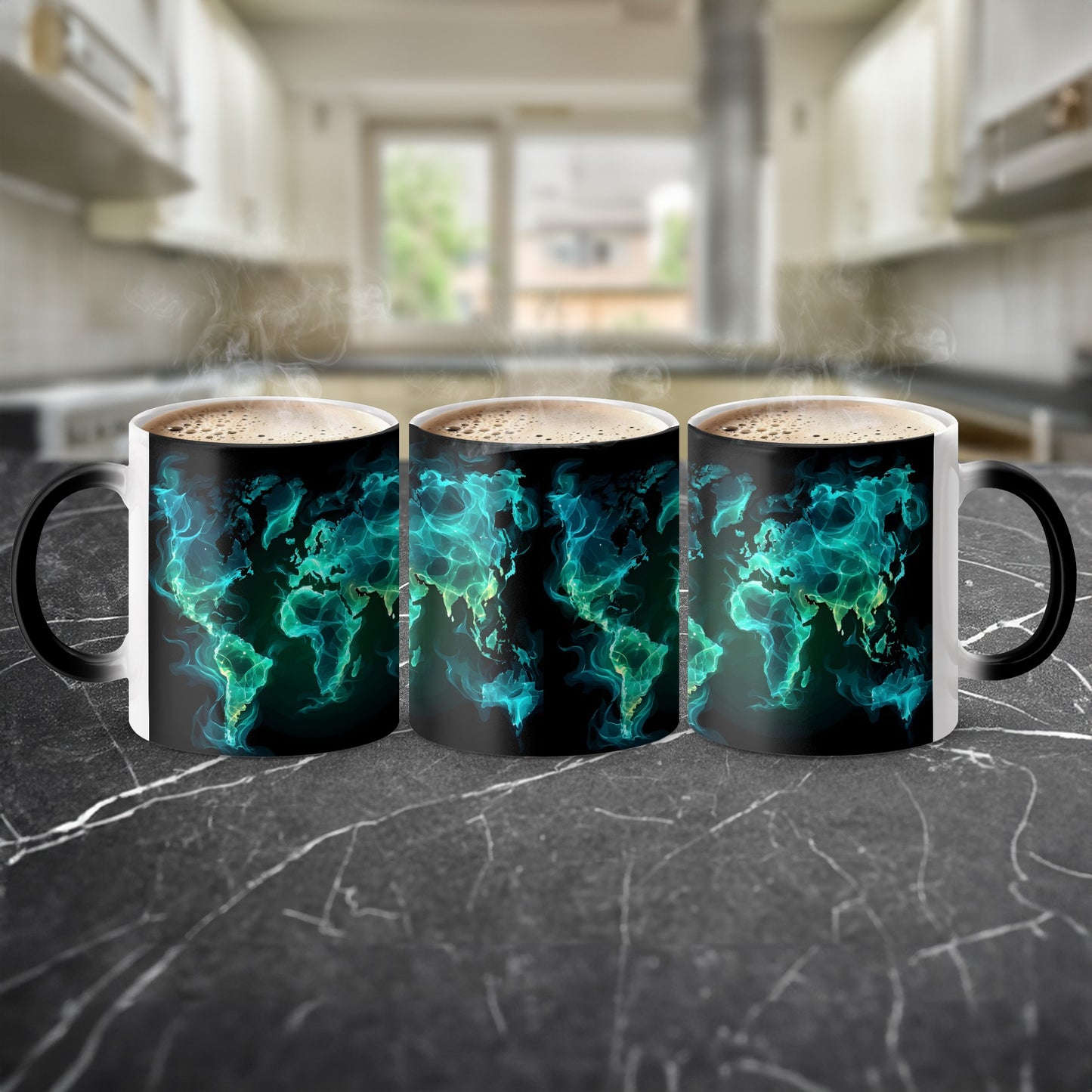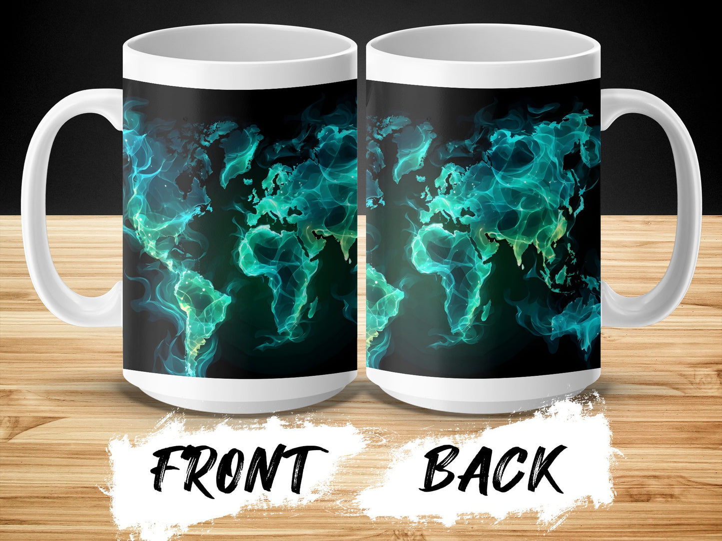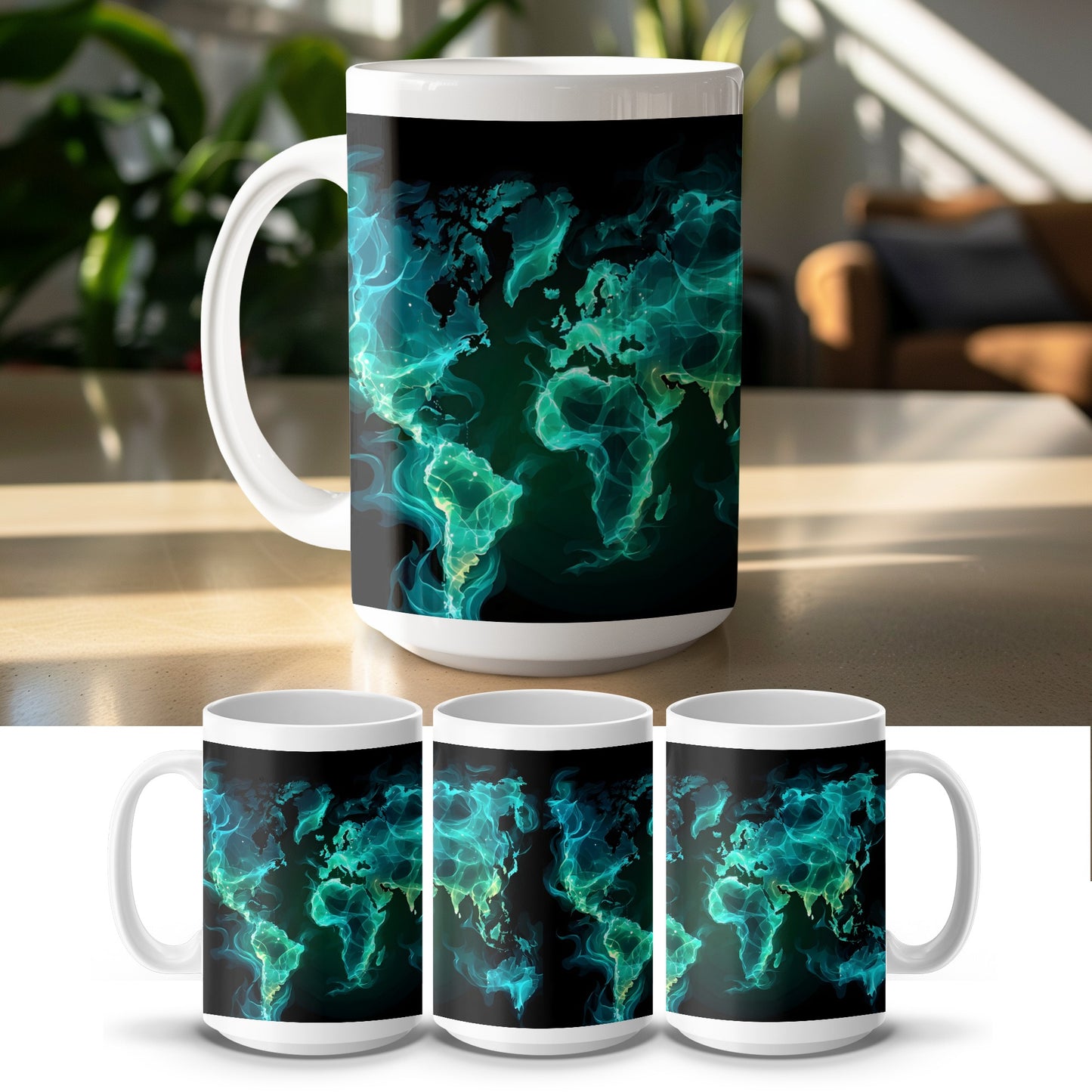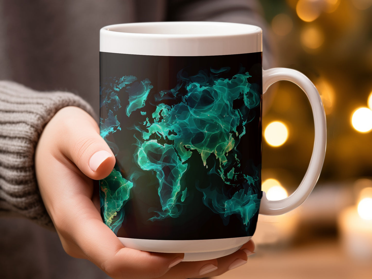 World Map In Teal Smoke Colors A Unique Gift Mug